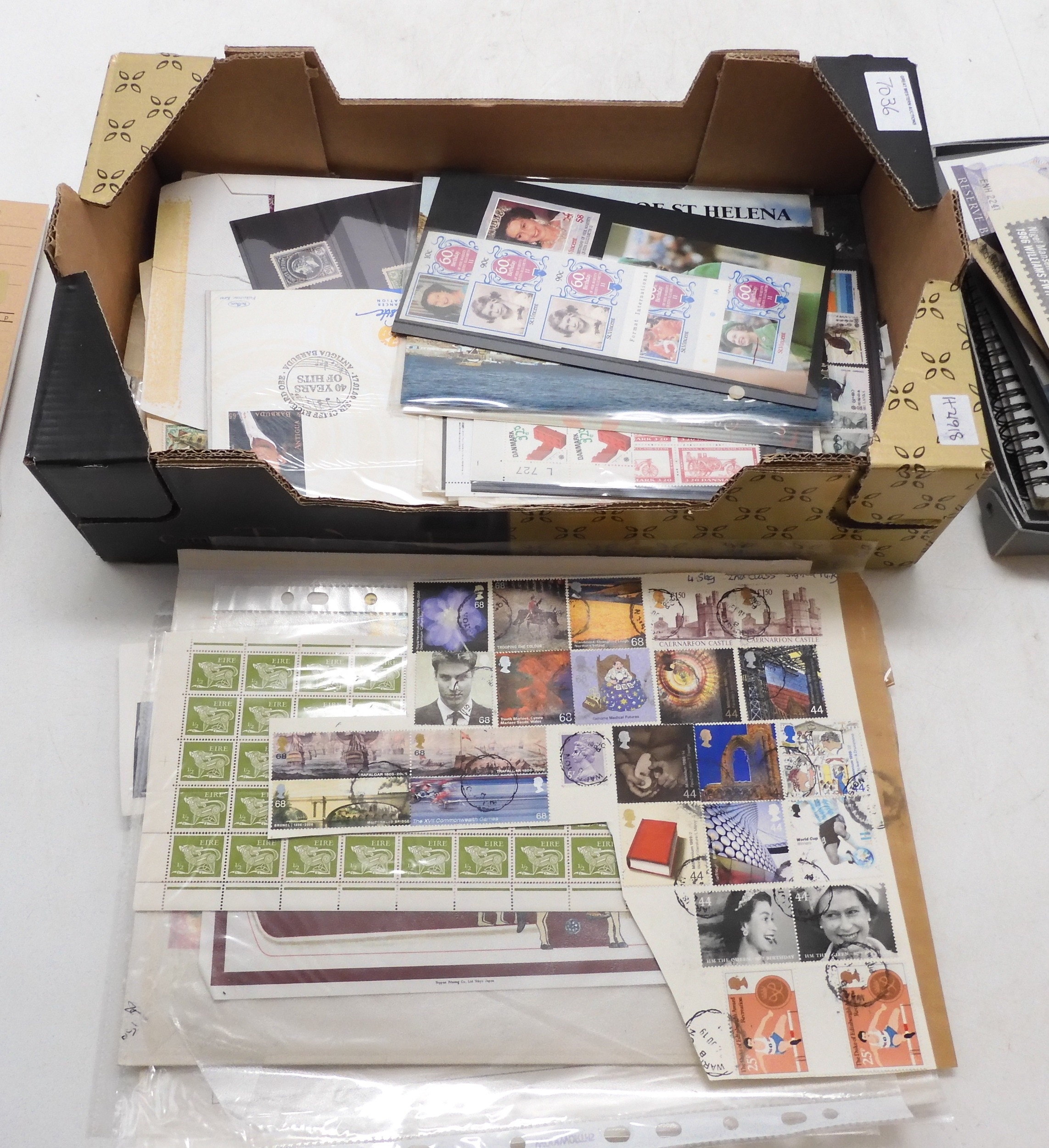 Box with World Stamps etc Inc. 4 Approval Books with noted 1983 & 4 French Red Cross Booklets, Portugal 1983 Navy Uniform Booklet, 3 Hong Kong Booklets, $ Canada Booklets Plus various others. Also Norway SG 155a-158 U/M , Sweden sub. SG 8a Times 2. Also noted Czechoslovakia Miniature Sheets for 1966 1st Art Series SG 1619-1623, British Virgin Islands 1979 Definitely Set .
