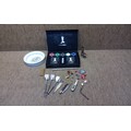 Collection of penknives, silver tea strain, playboy poker set nd other collectables.
