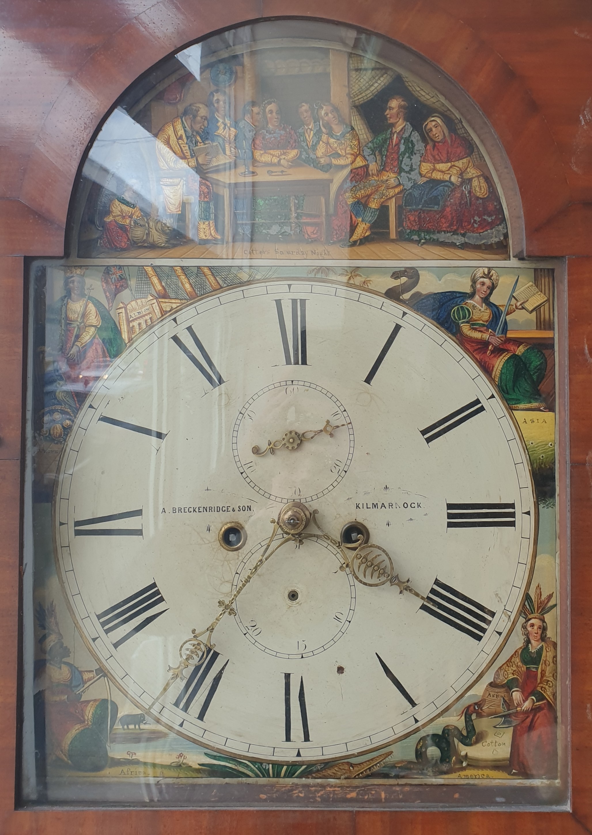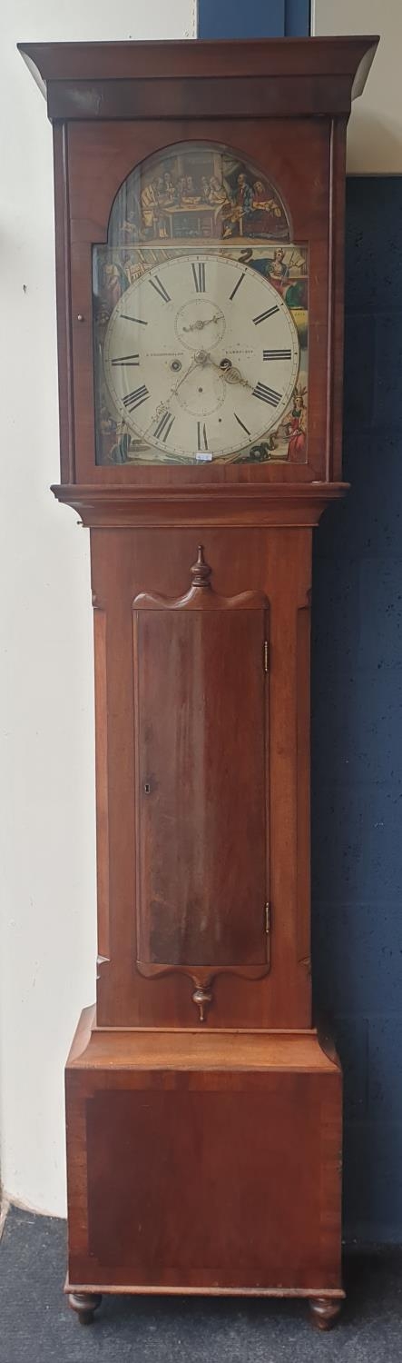 Breckenridge Mahogany Longcase Grandfather clock with painted face complete with weights and pendulum