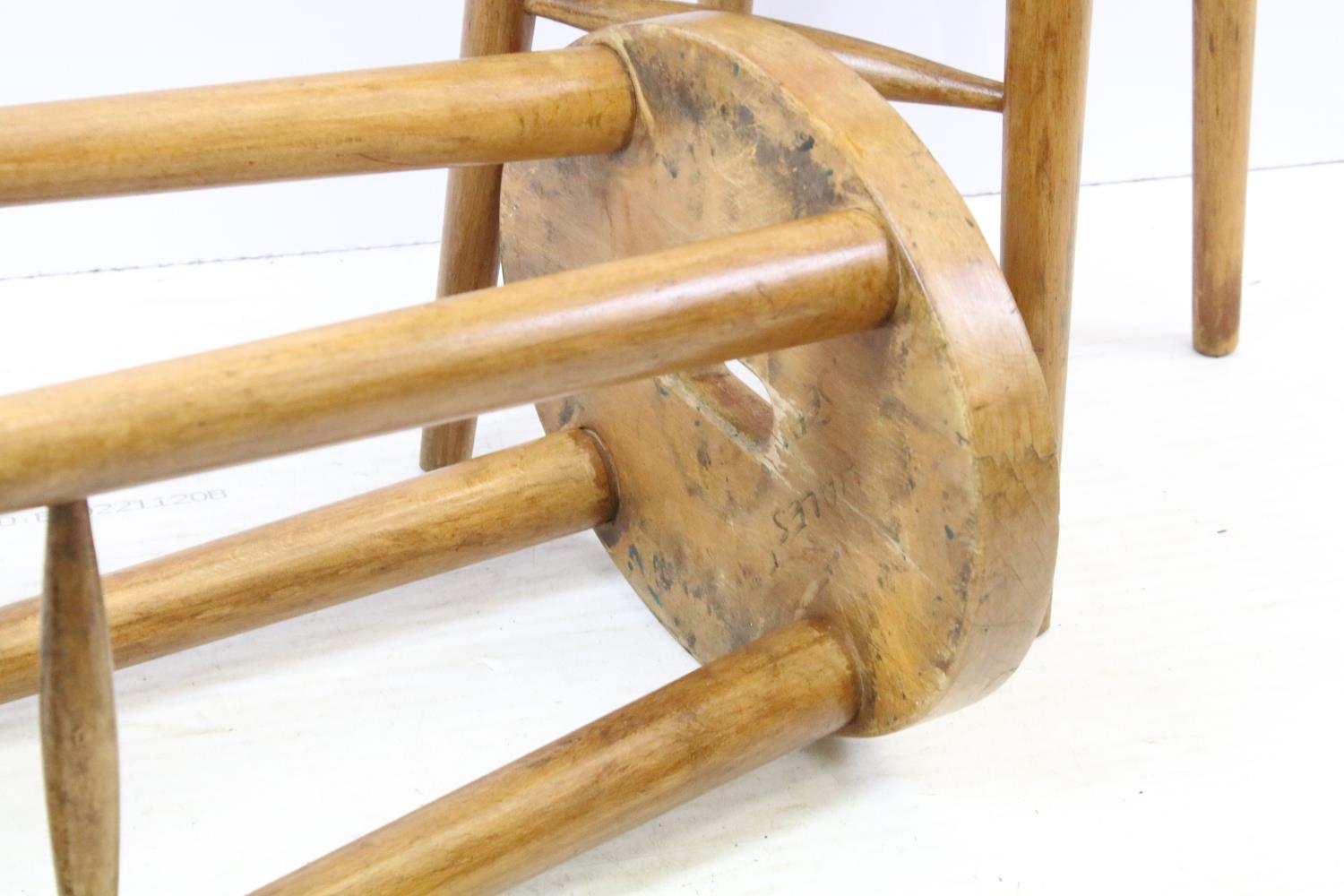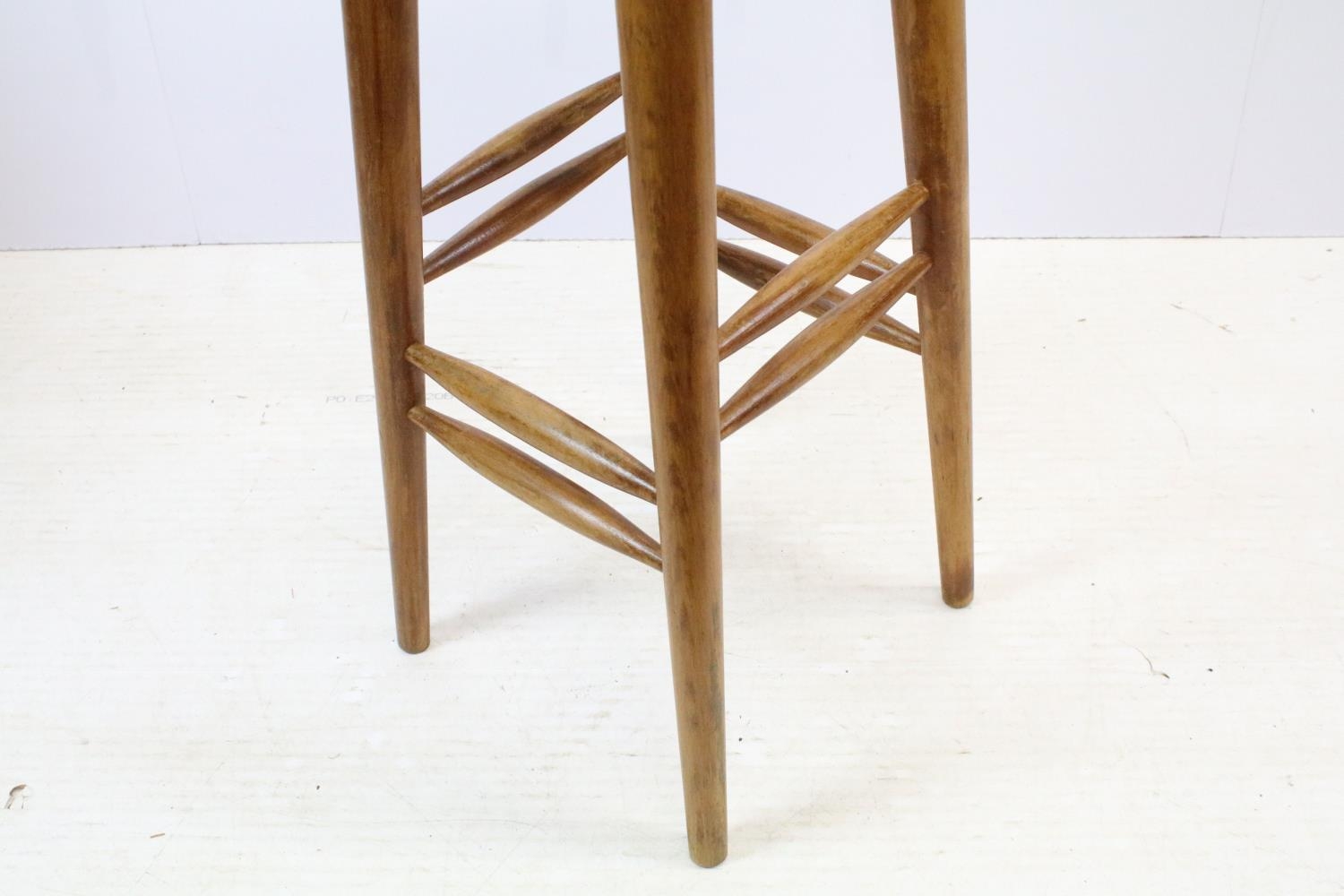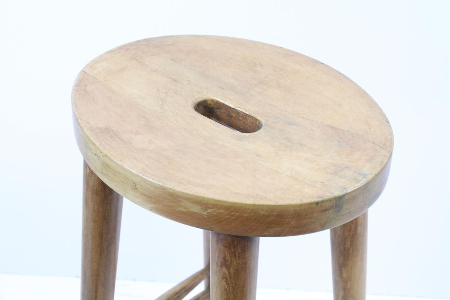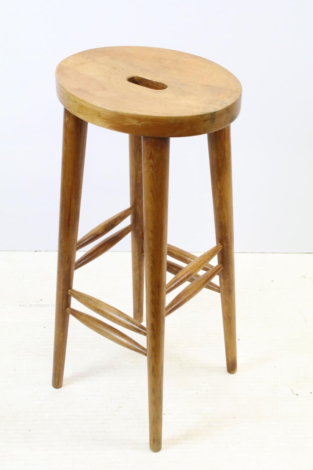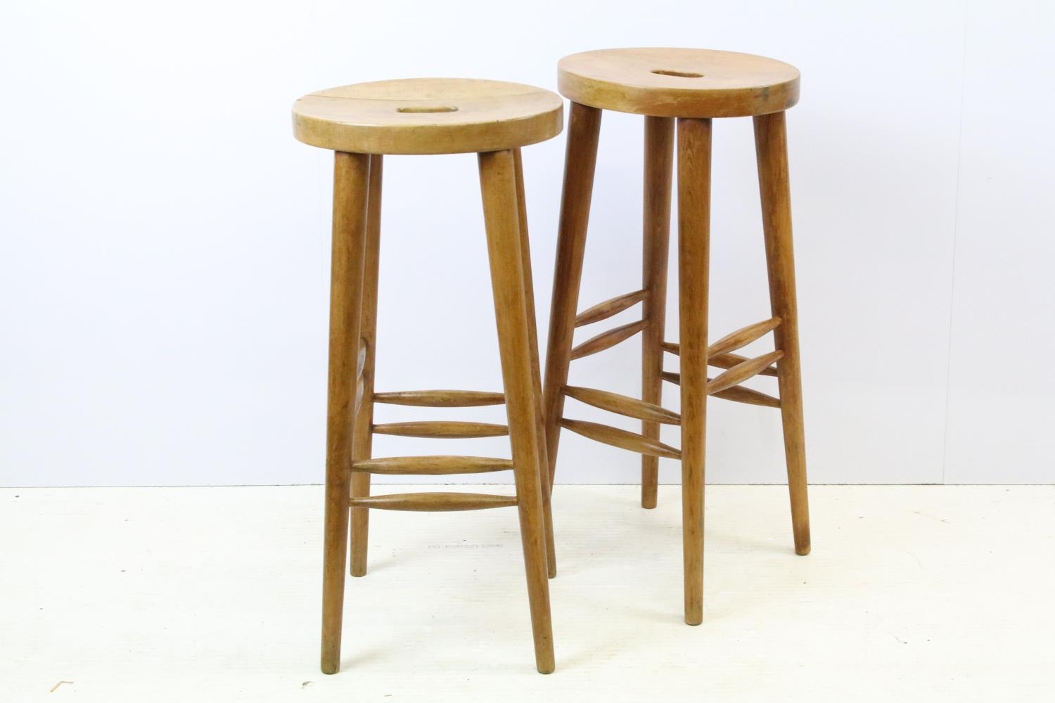 Pair of vintage waxed and polished beech wood high kitchen stools, each 75cm high