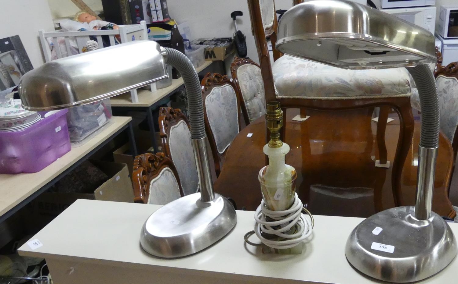 Pair Chrome Desk Lamps & Onyx Lamp
