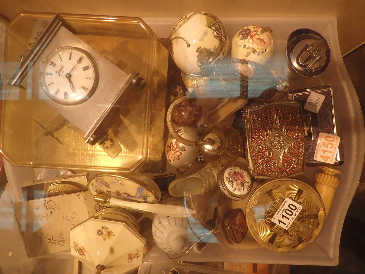 Tray of mixed collectables including compacts. Not available for in-house P&P, contact Paul O'Hea at Mailboxes on 01925 659133
