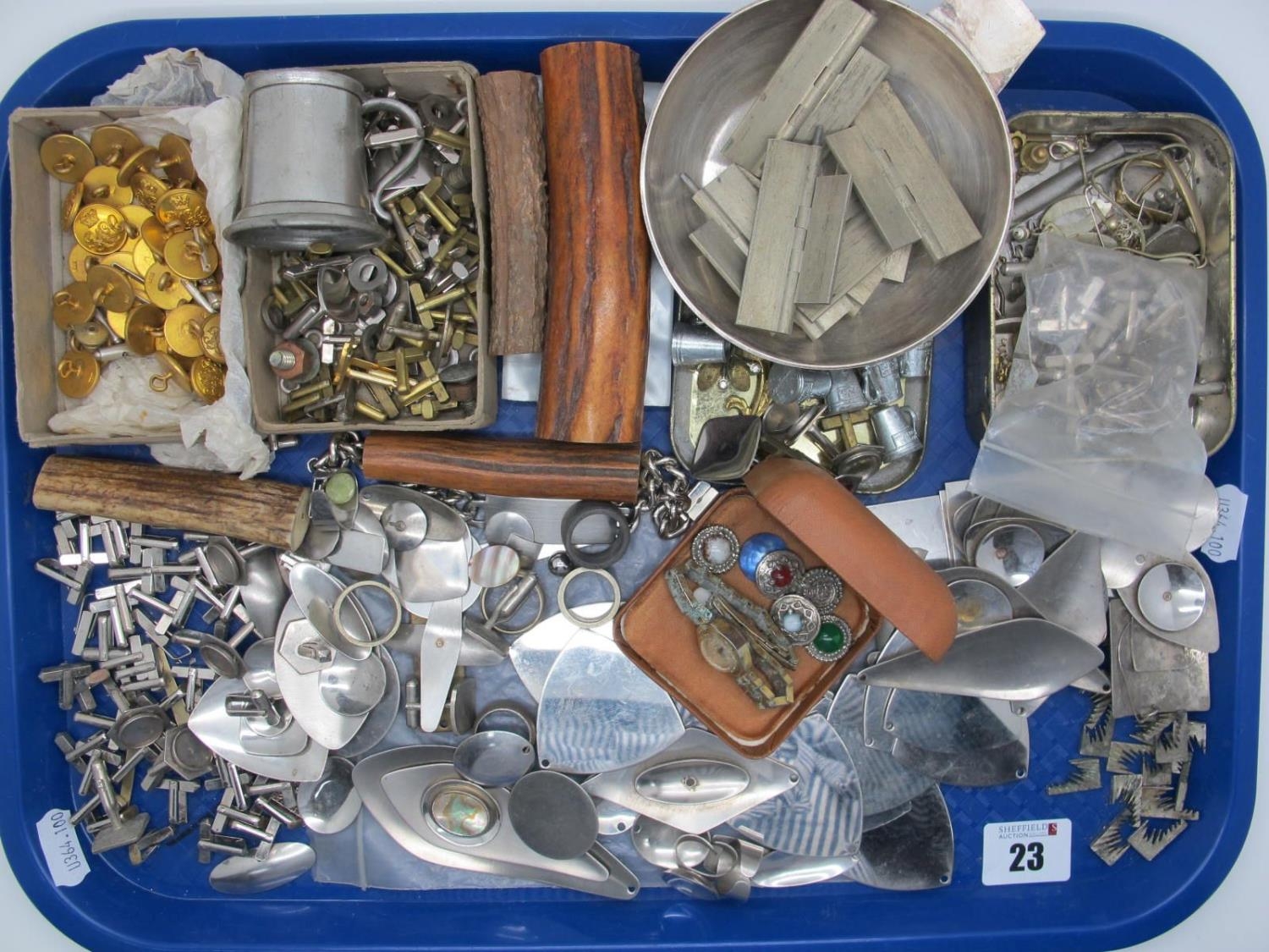Modernist Style Jewellery Findings, cufflink components, gilt buttons etc :- One Tray