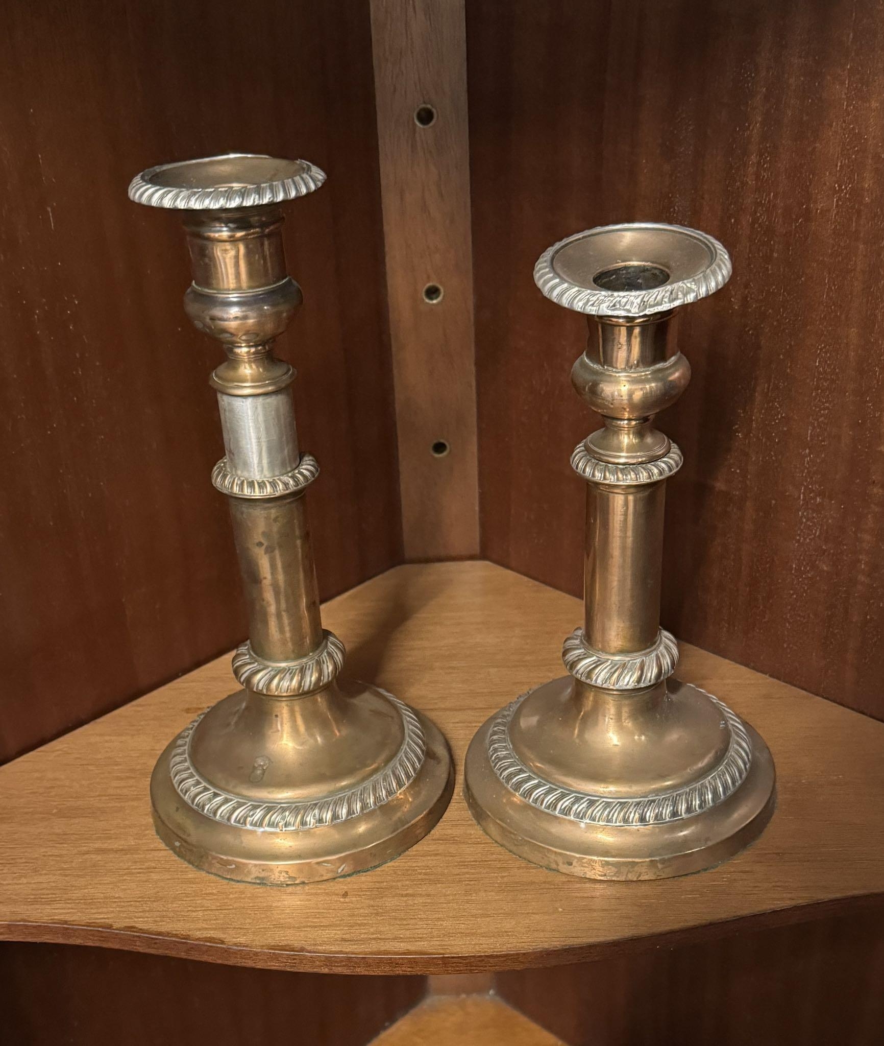 Pair telescopic Sheffield plated candlesticks