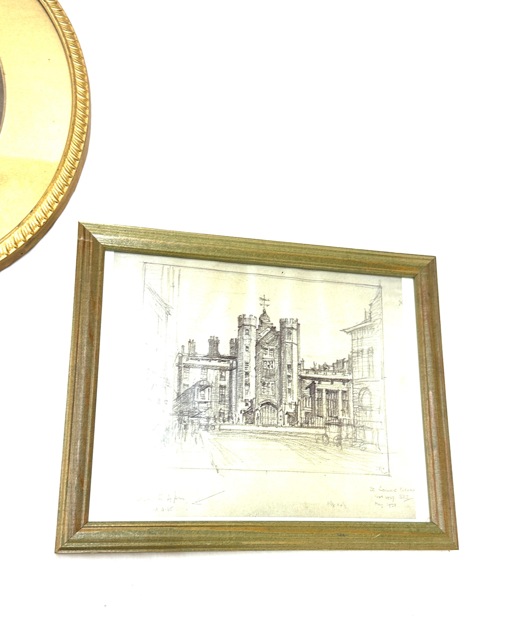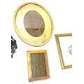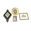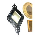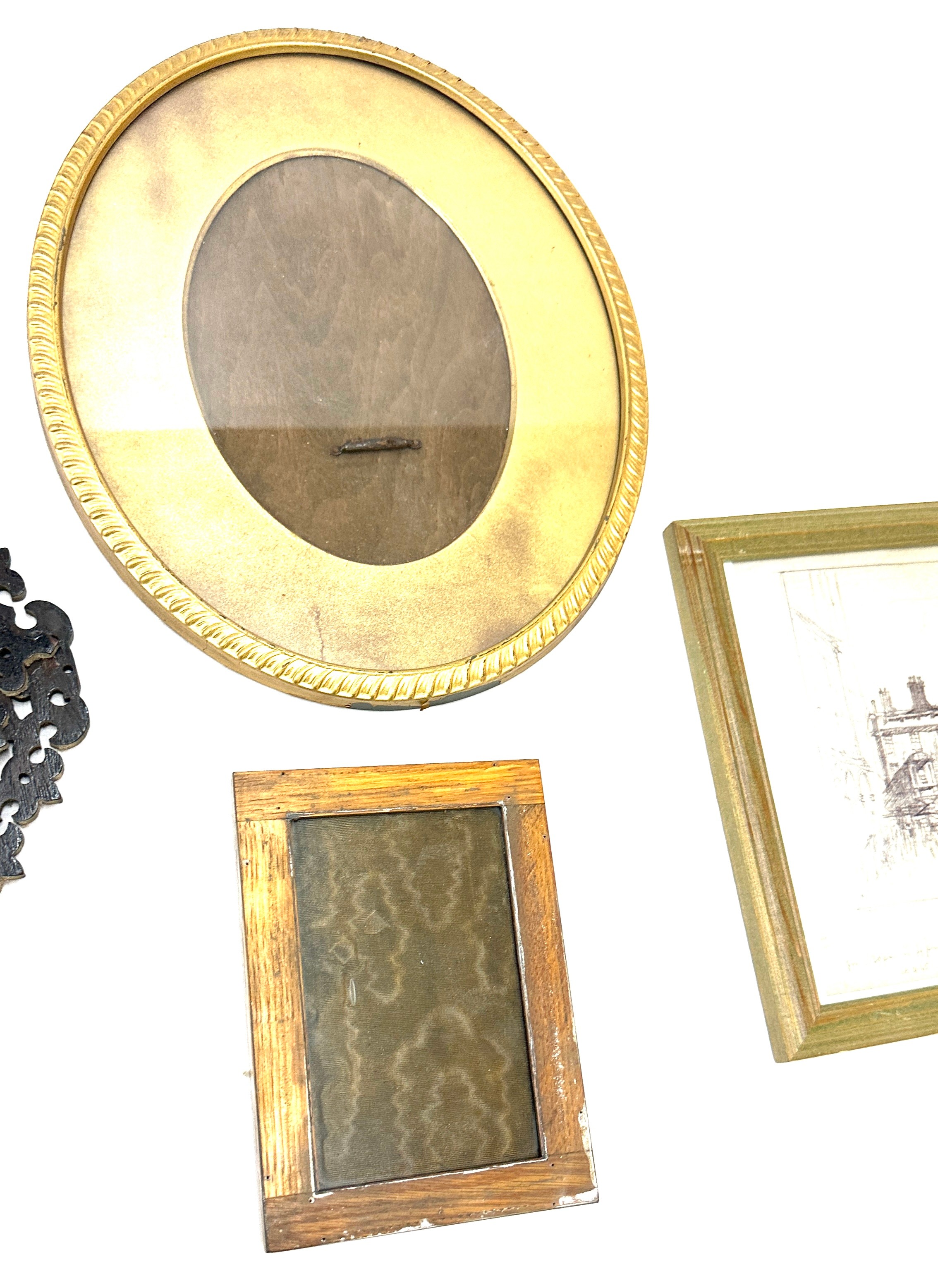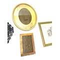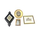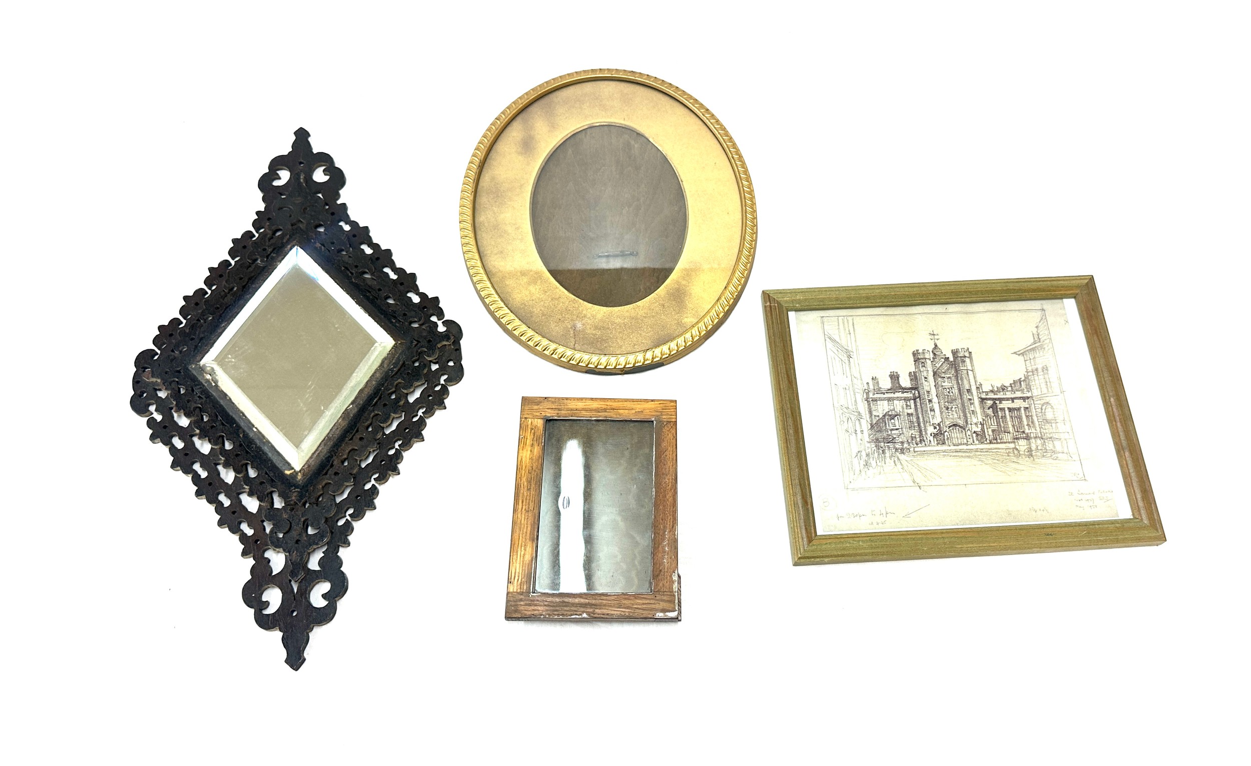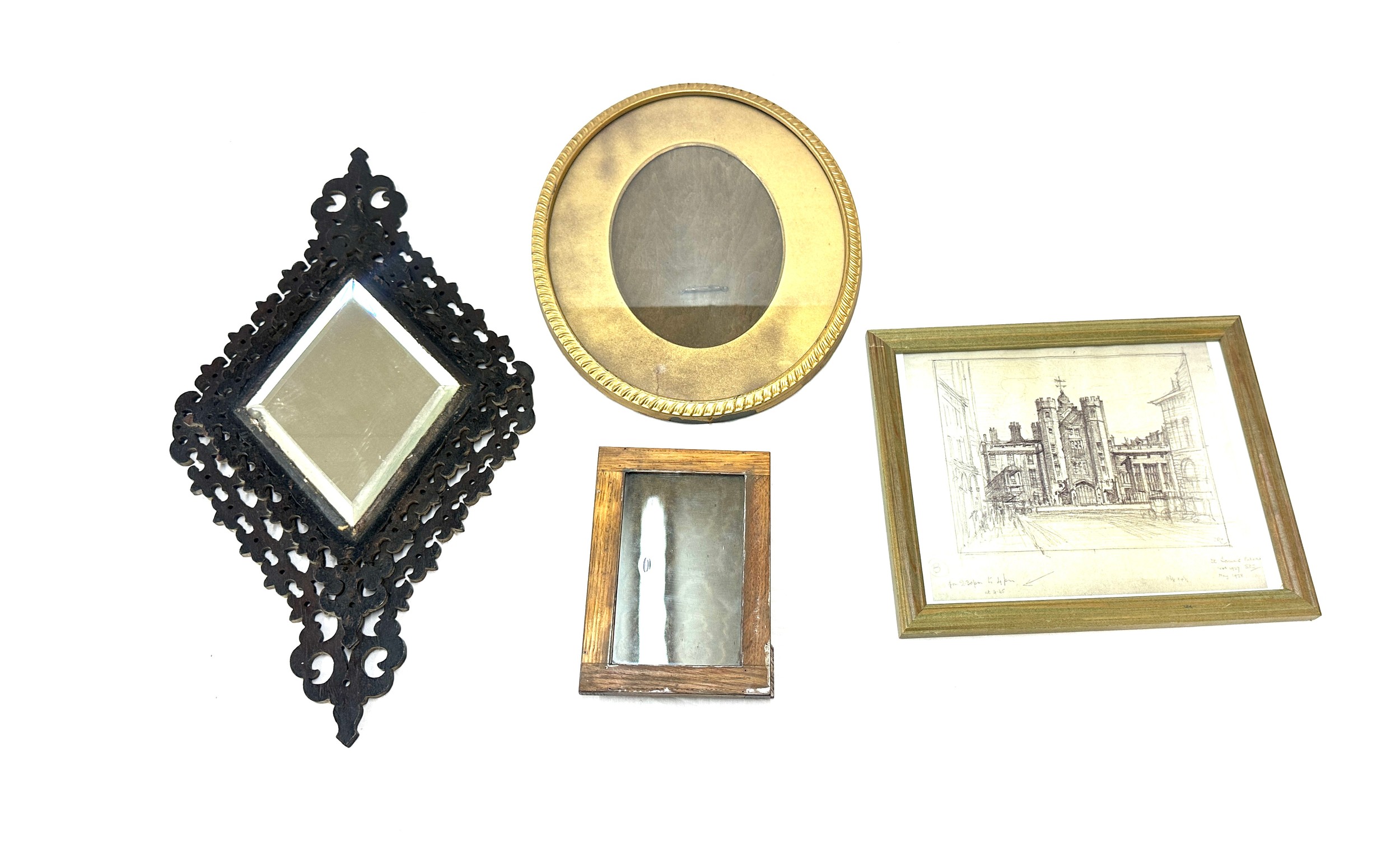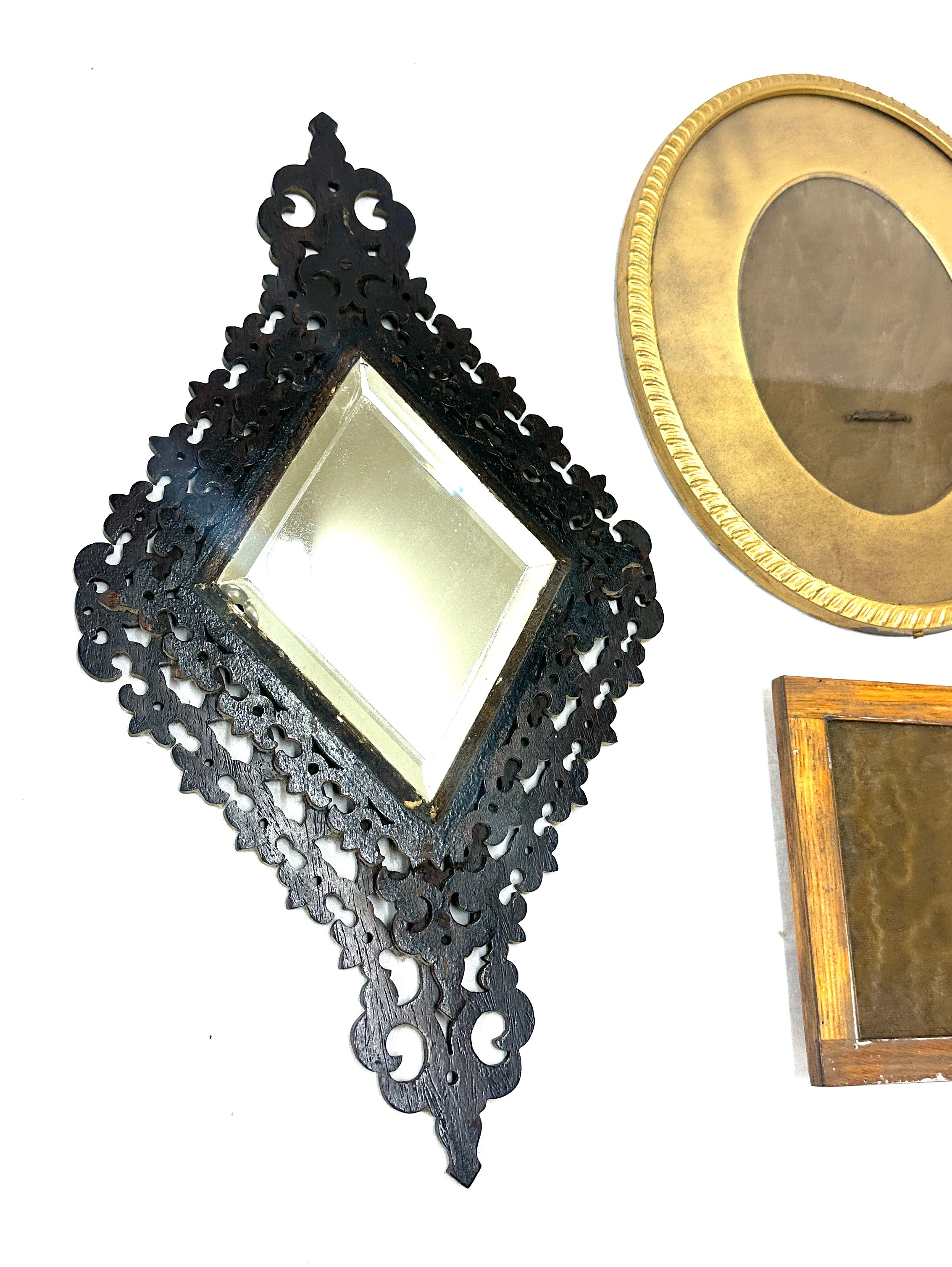 Selection of assorted framed includes Tramp art framed mirror measures approximately 12 inches tall