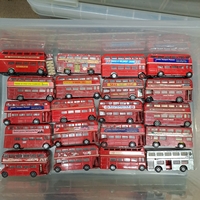 TRAY OF PLAYWORN VINTAGE MODELS AND RESTORED EXAMPLES OF JOHICLO BUS ETC