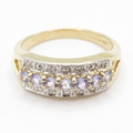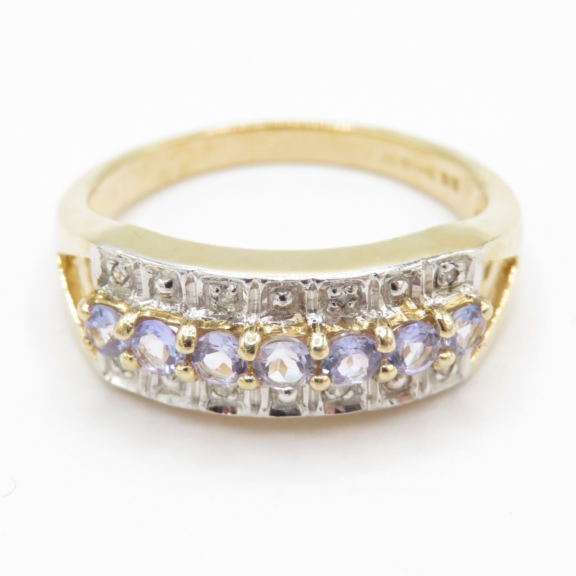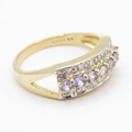 9ct gold diamond and tanzanite triple row ring (3.3g) Size Q