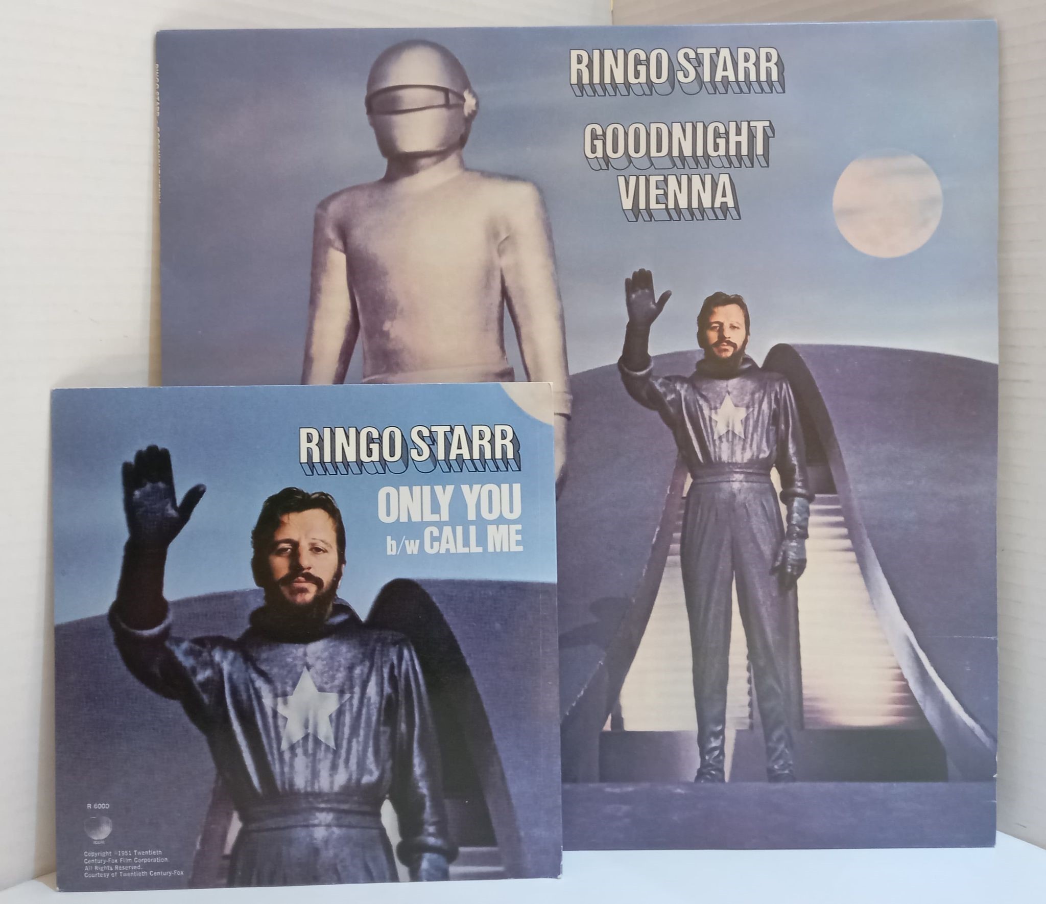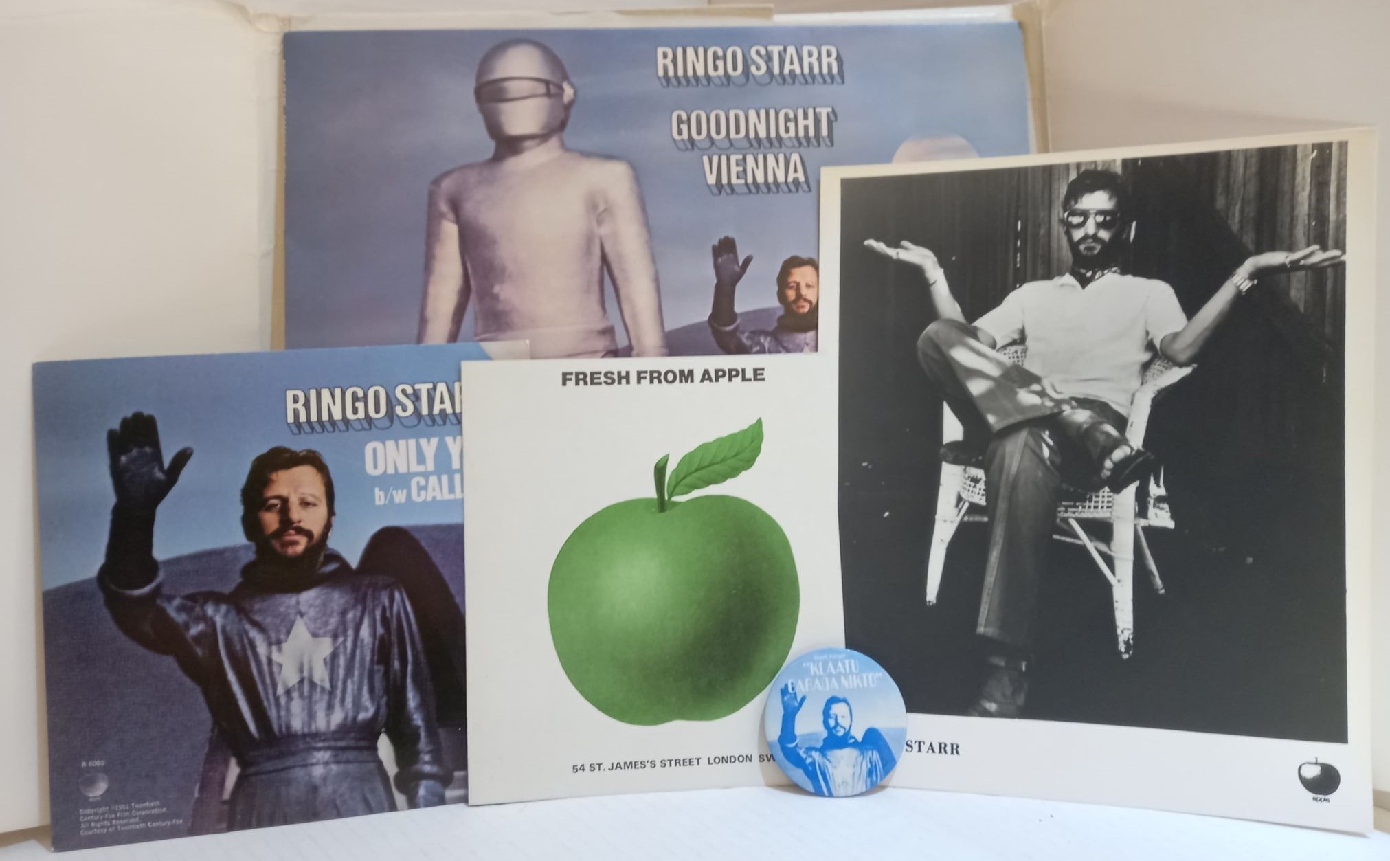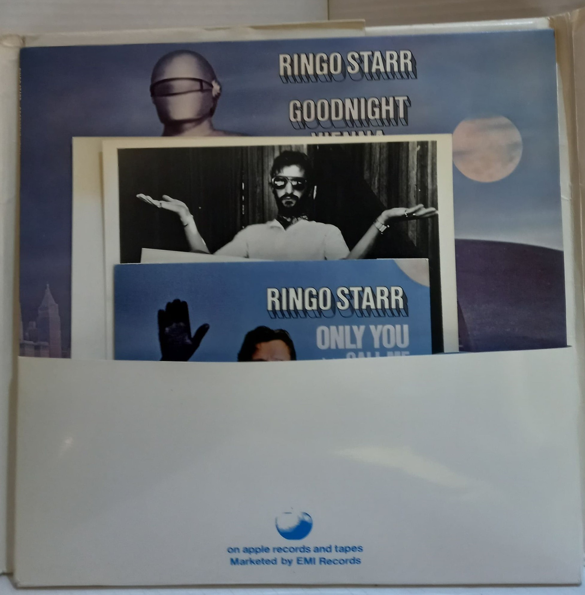 /Ringo Starr Goodnight Vienna Apple Records press kit including Fresh From Apple leaflet, Poster, Sticker, Badge, Postcard, Two Press Photographs, single and album in folder