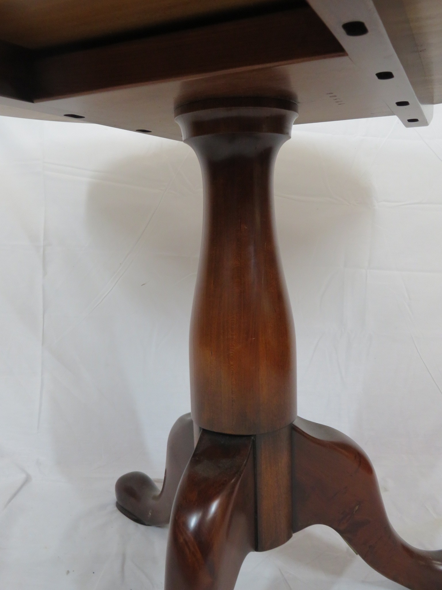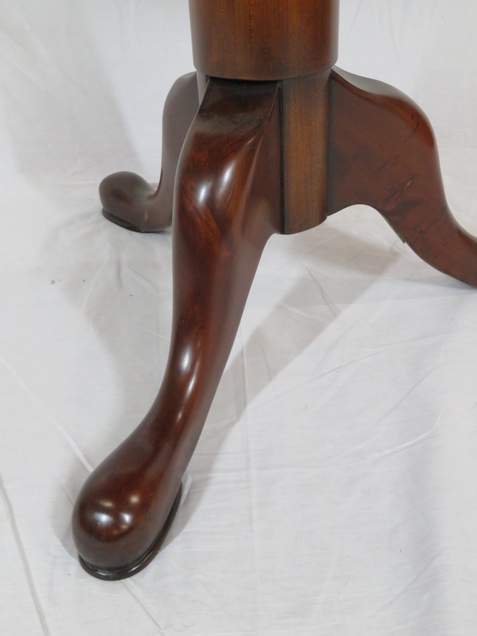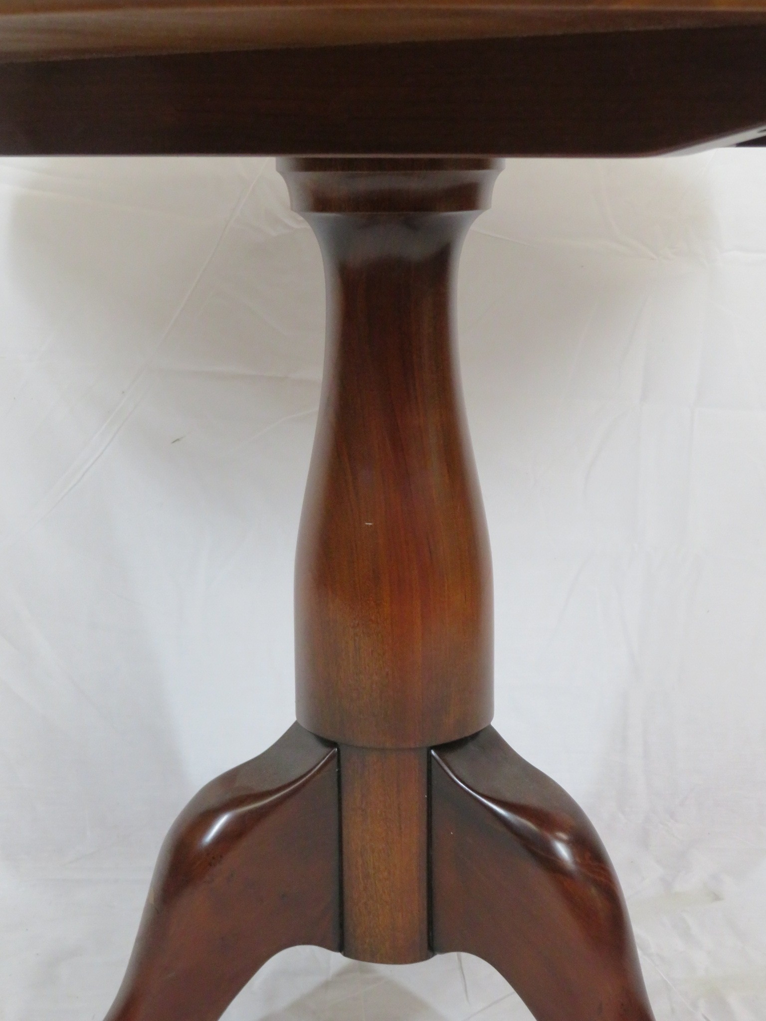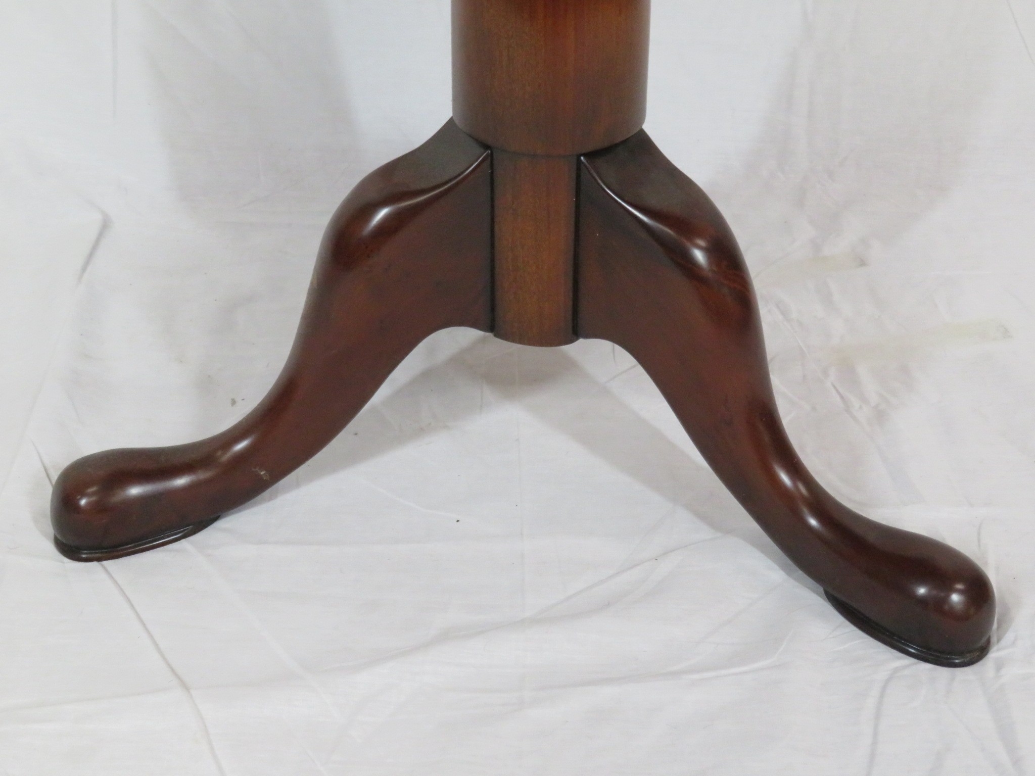 Victorian burr elm topped round occasional table with shaped mahogany column on yew tripod with pad feet