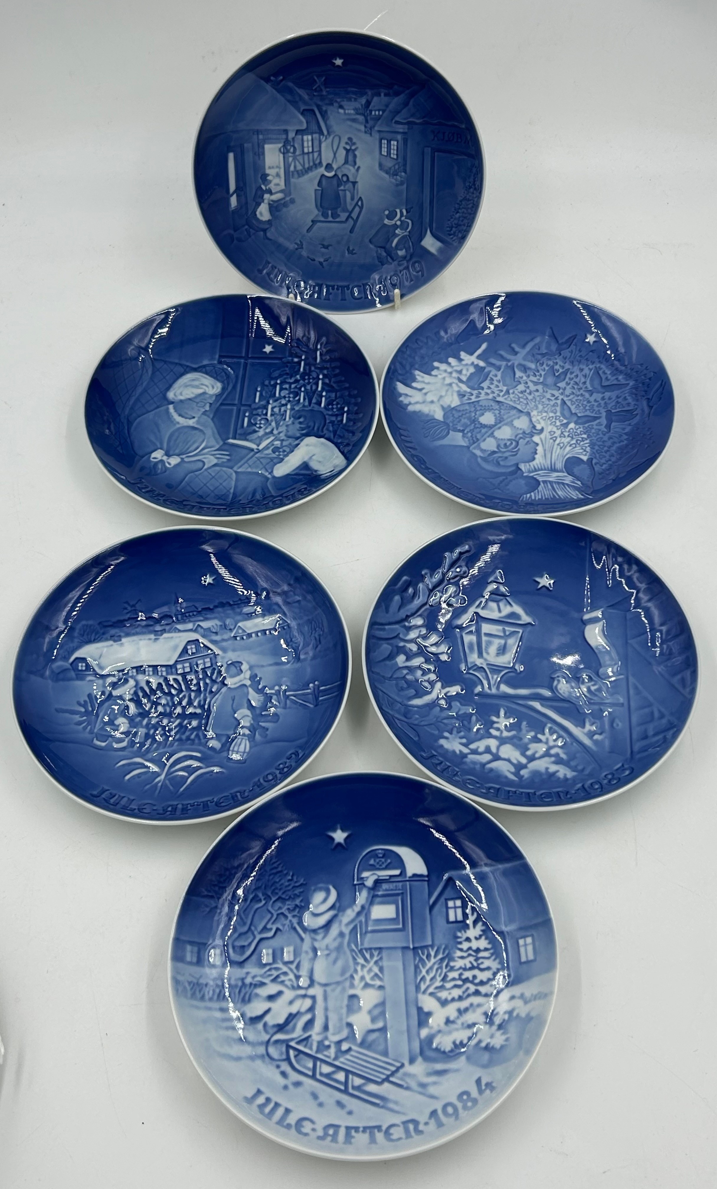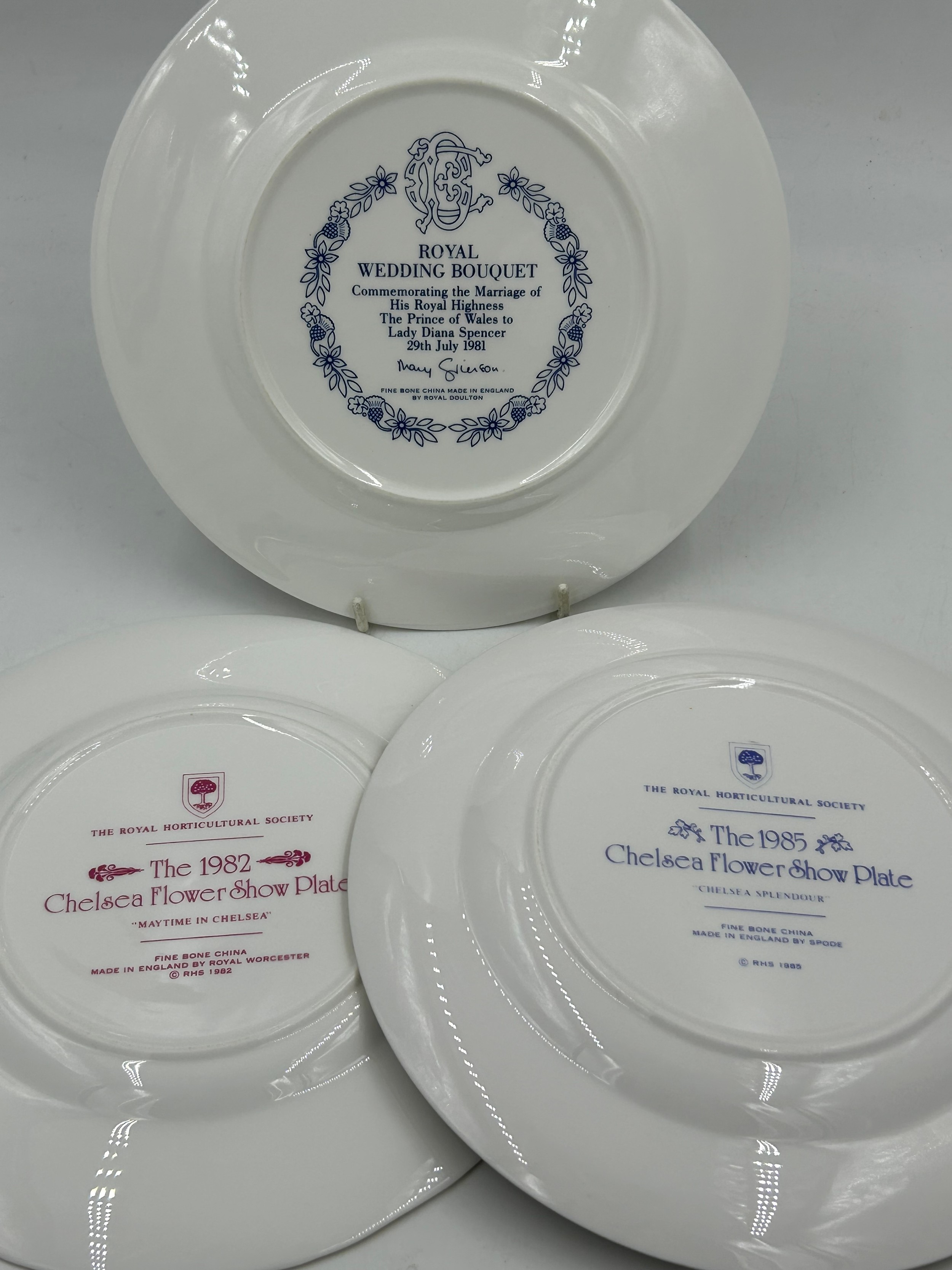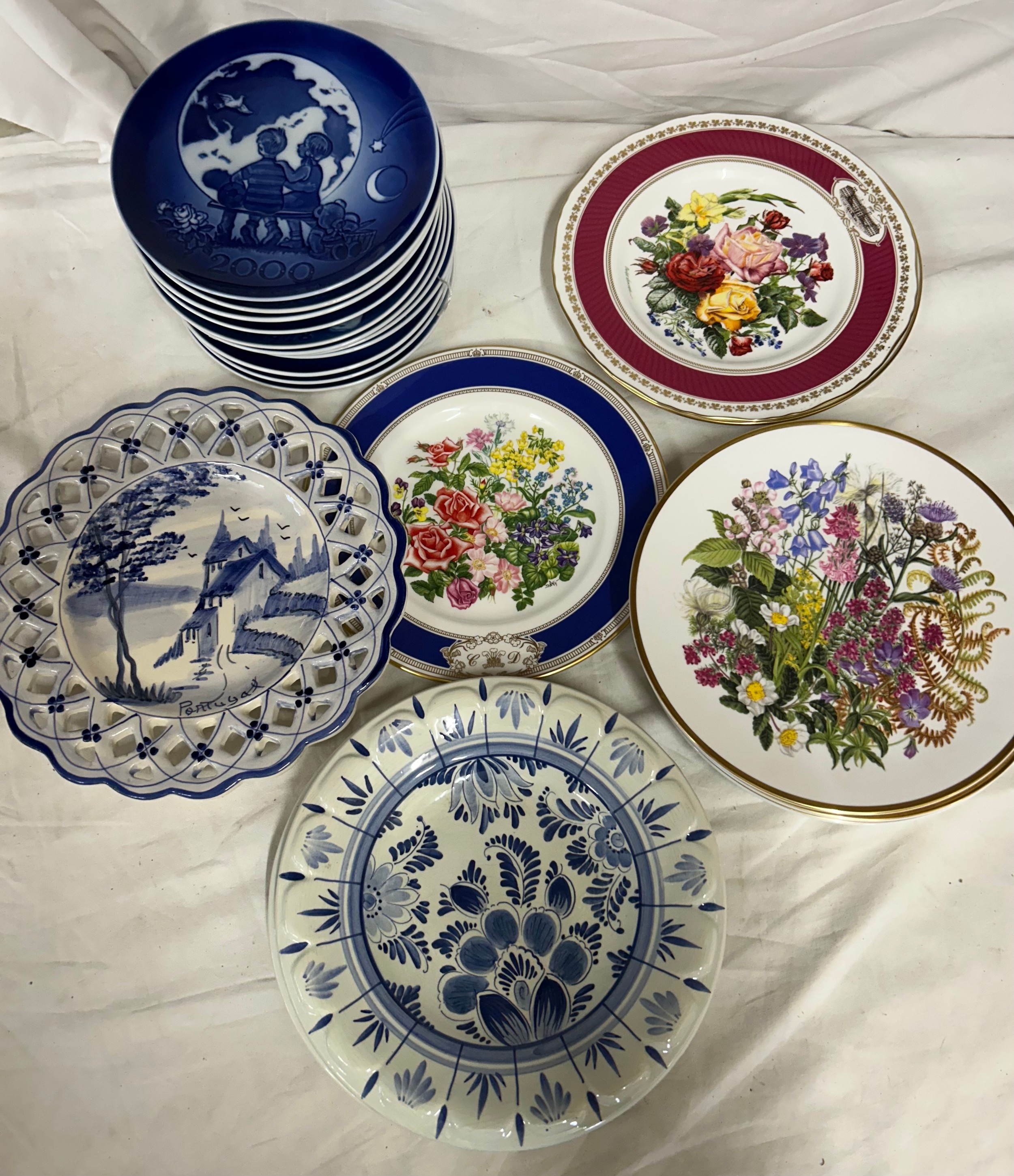 A collection of plates to include Royal Copenhagen Christmas plates 1974, 1975, 1977, 1978, 1979, 1980, 1981, 1982, 1983, 1984, 2000. 2 x delph Holland, 1 x Portugal, Royal Doulton Charles & Diana wedding bouquet plate, 2 x Royal Worcester Chelsea Flower Show 1982 & 1985 and 4 x Caverswall Wildflowers No.3,4,5,6. (21).
