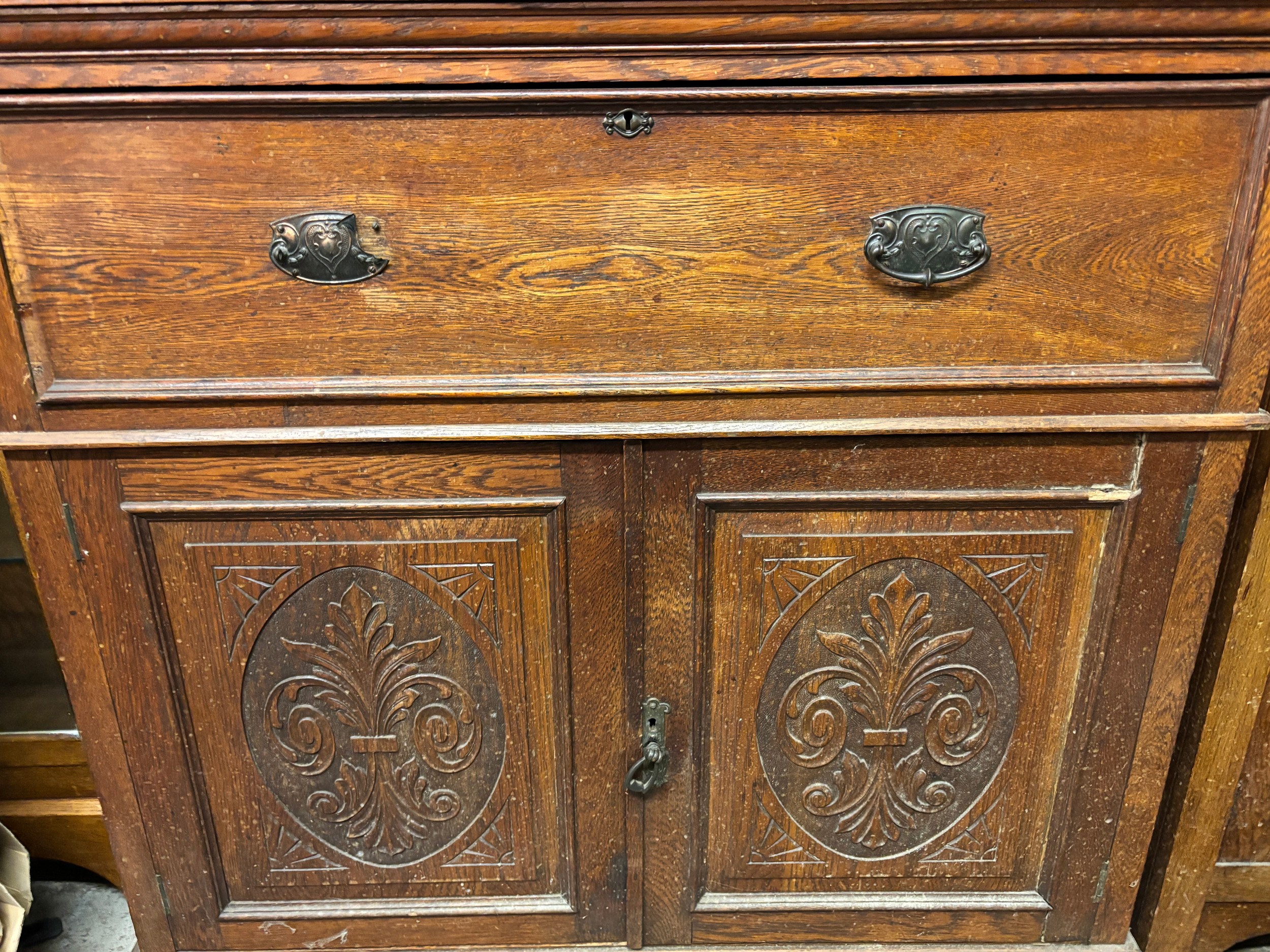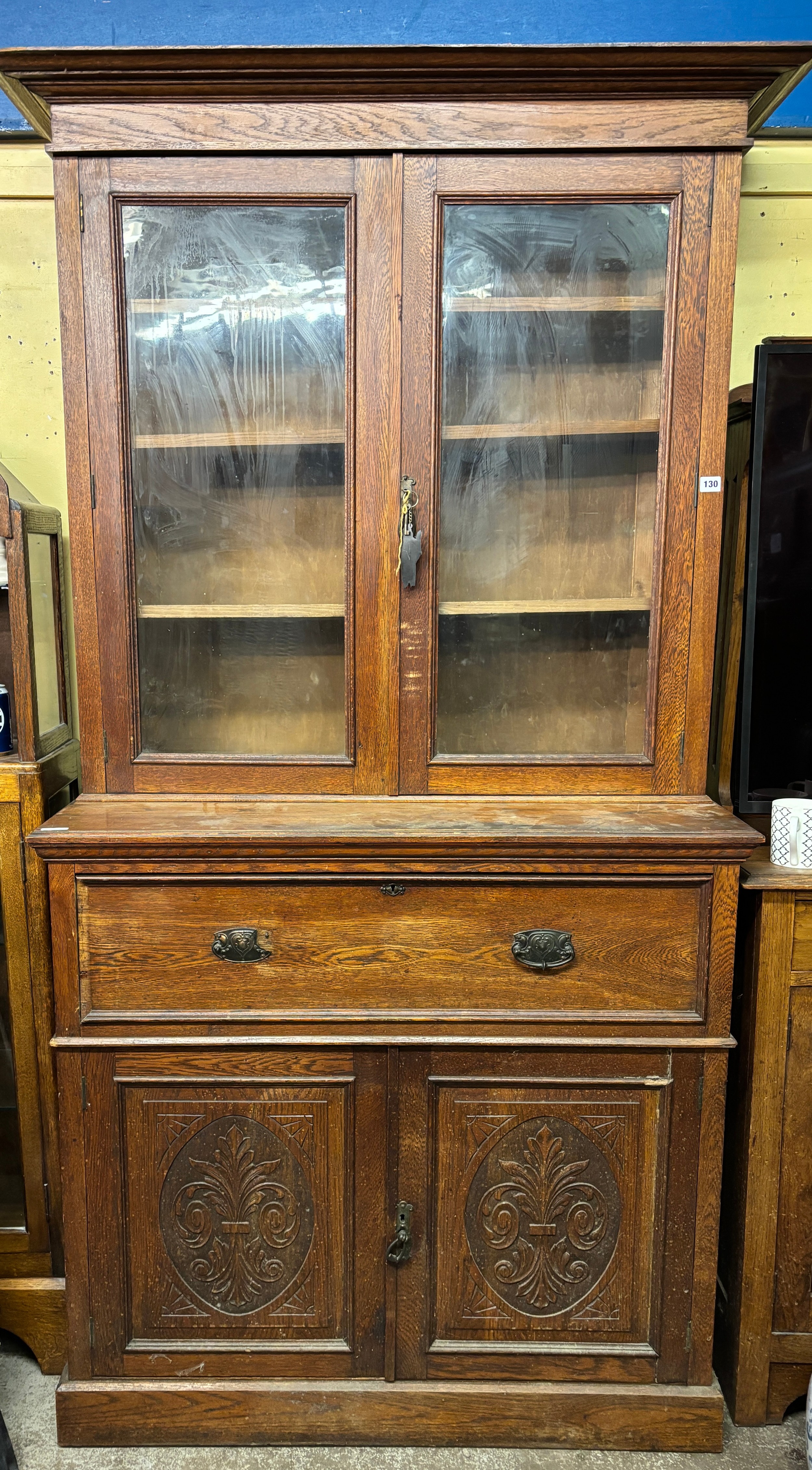 EDWARDIAN OAK GLAZED SECRETAIRE BOOKCASE