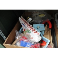 BOX OF GLASSWARE, PLATEWARE AND JUGS
