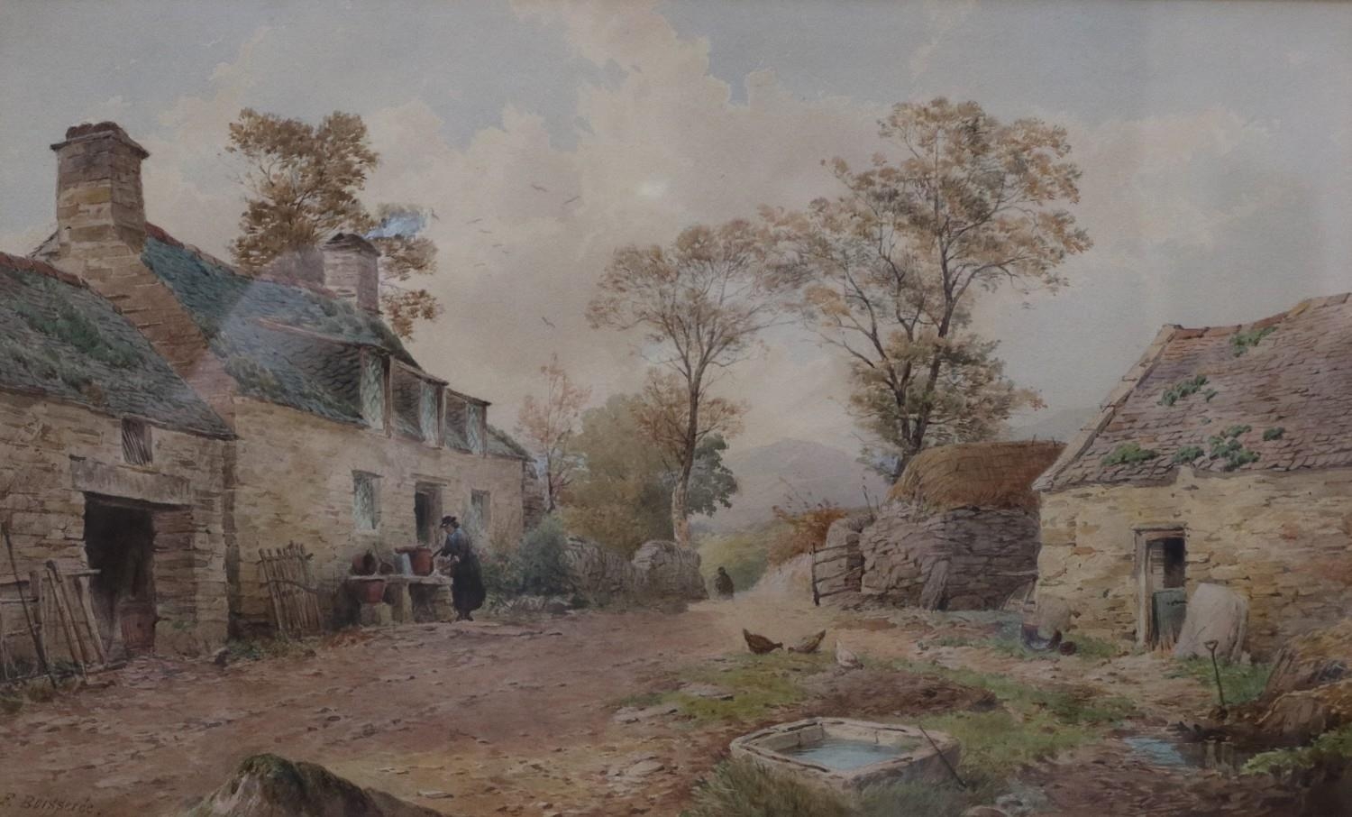 Frederick Boisseriee (19th century): watercolour, Welch Farmstead, artists label verso, image 42 x 25cm, overall 52 x 70cm. Not available for in-house P&P