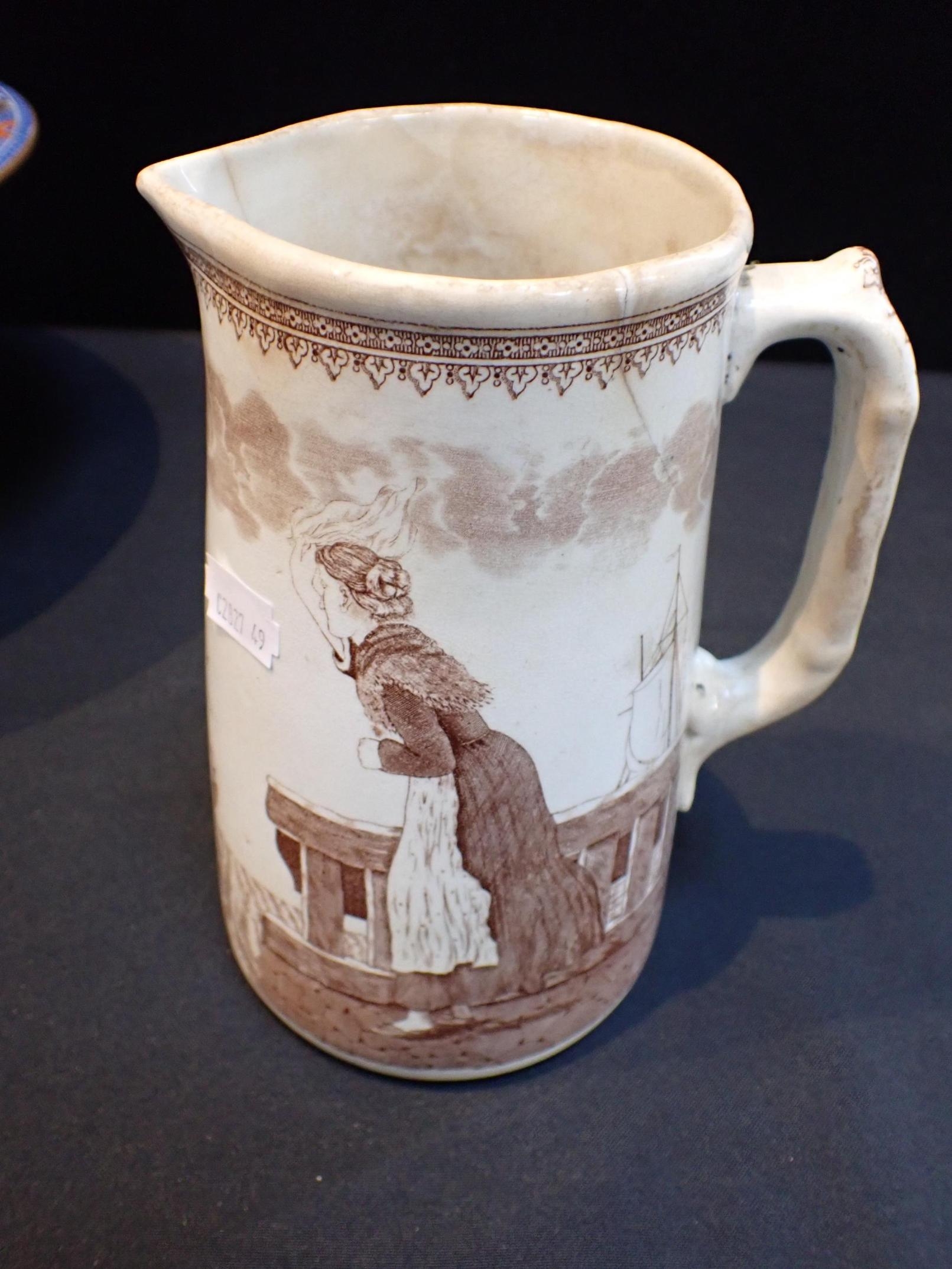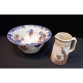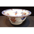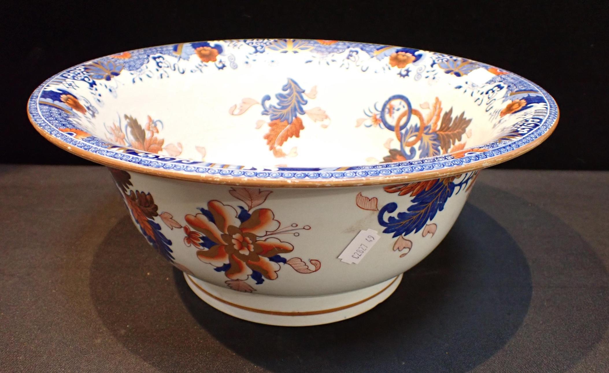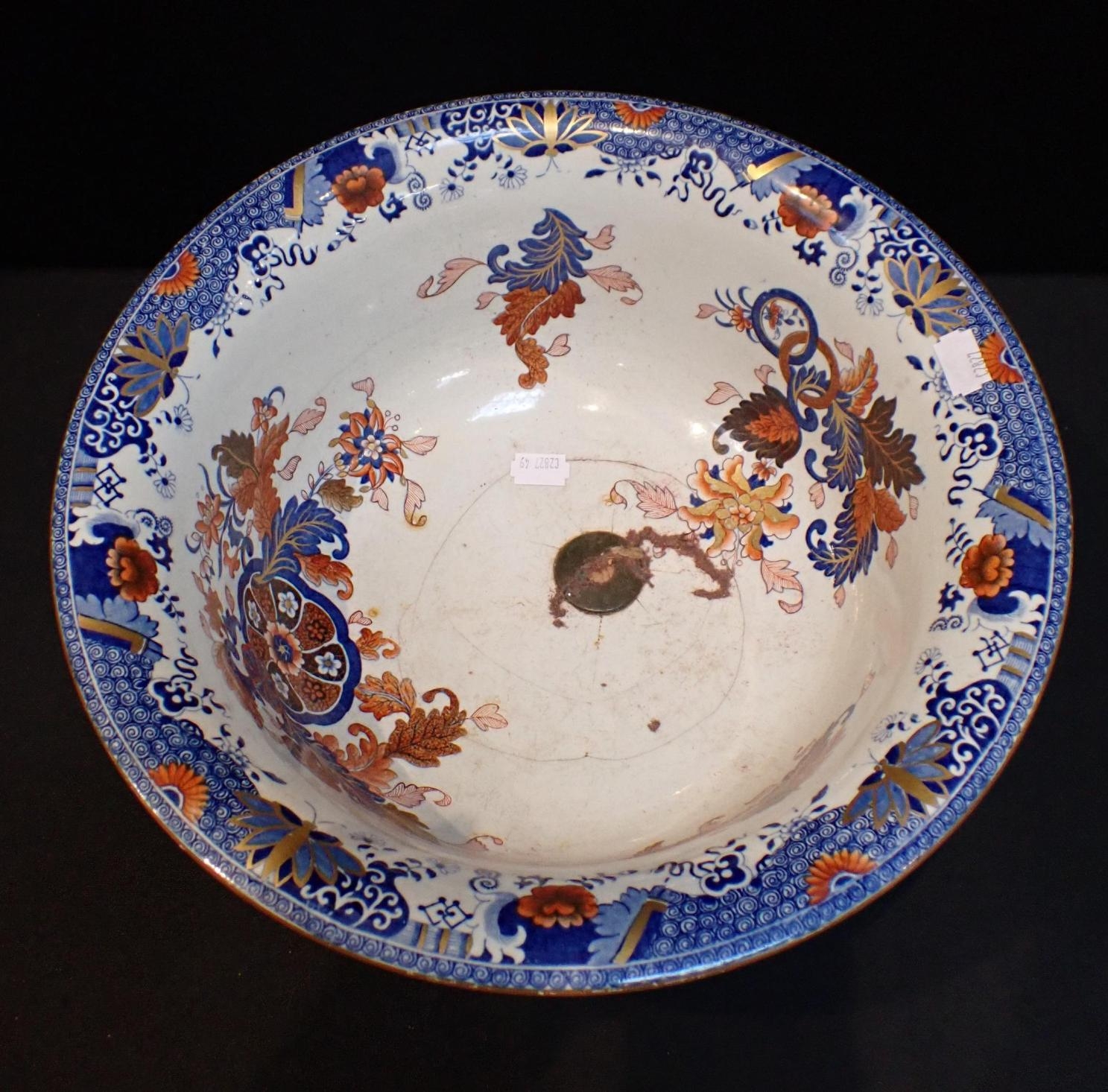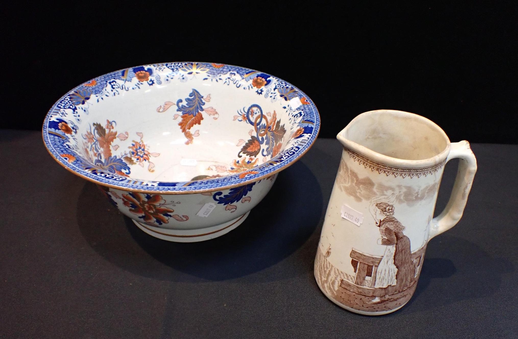 A SPODE IRONSTONE IMARI STYLE BOWLearly 19th century, with old plughole conversion to a wash basin, 33cm dia, with a Victorian sailor's farewell jug