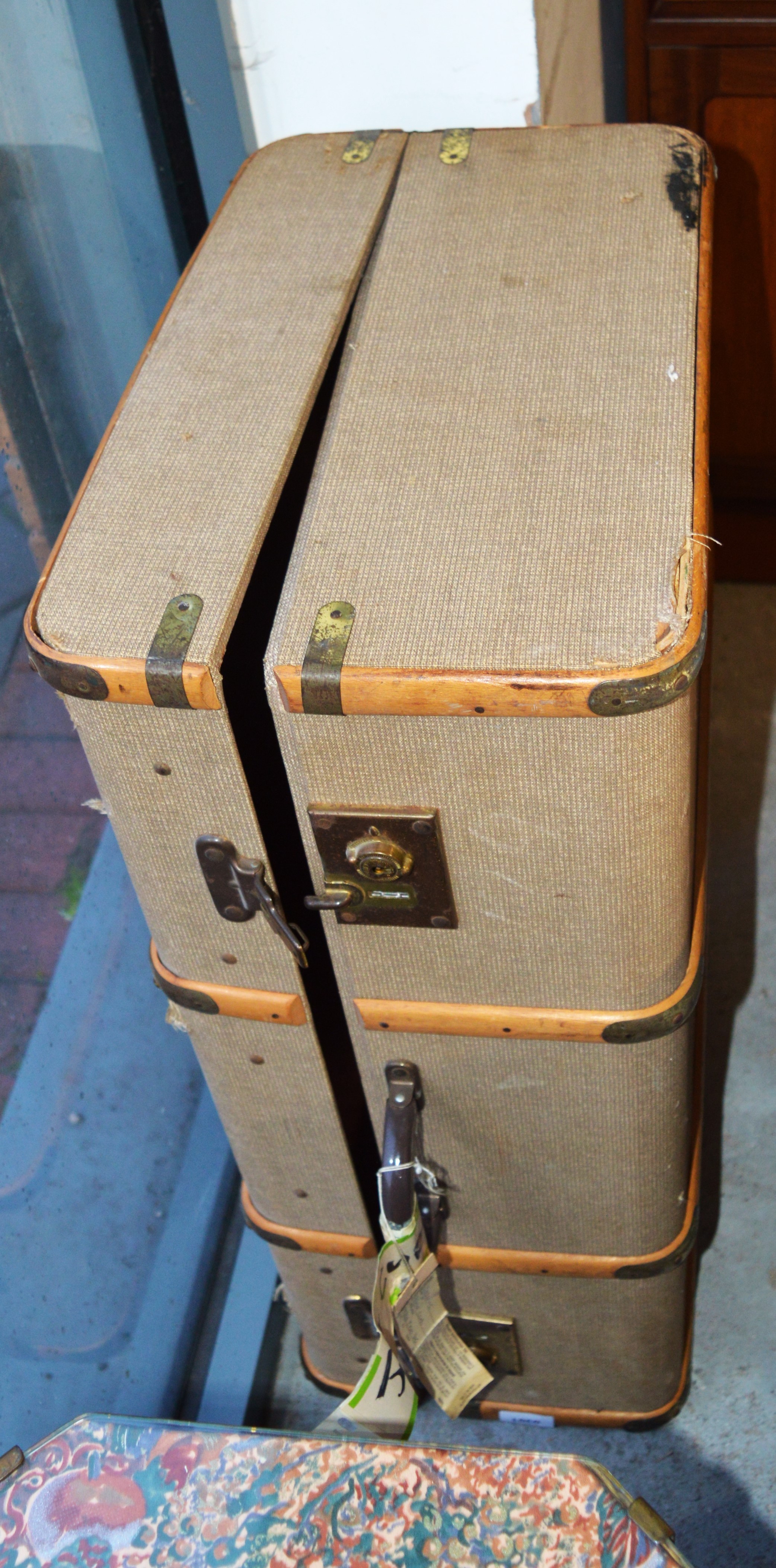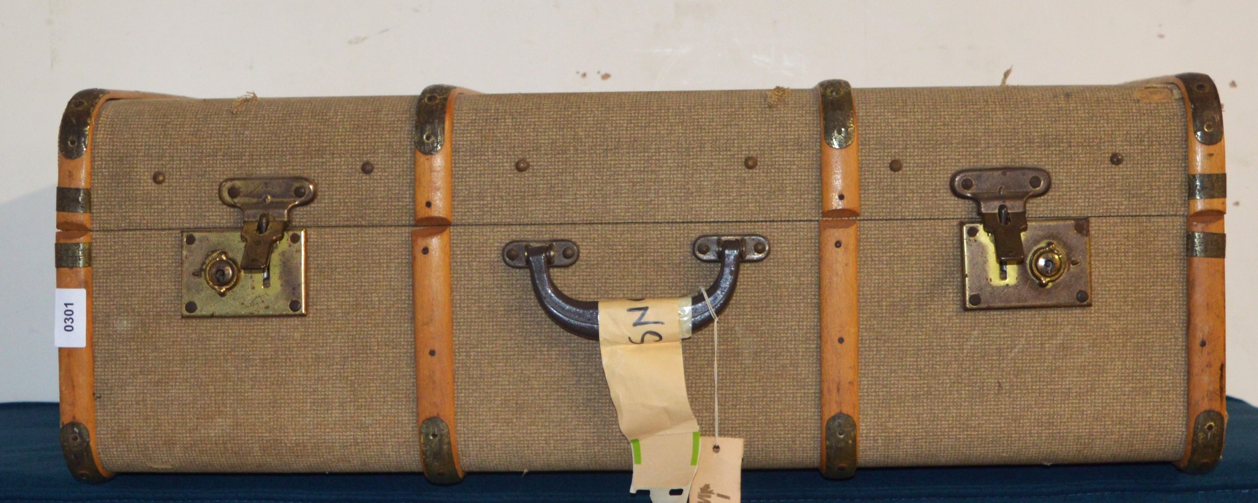 A Fibre Trunk with Bentwood Binding and Brass Locks