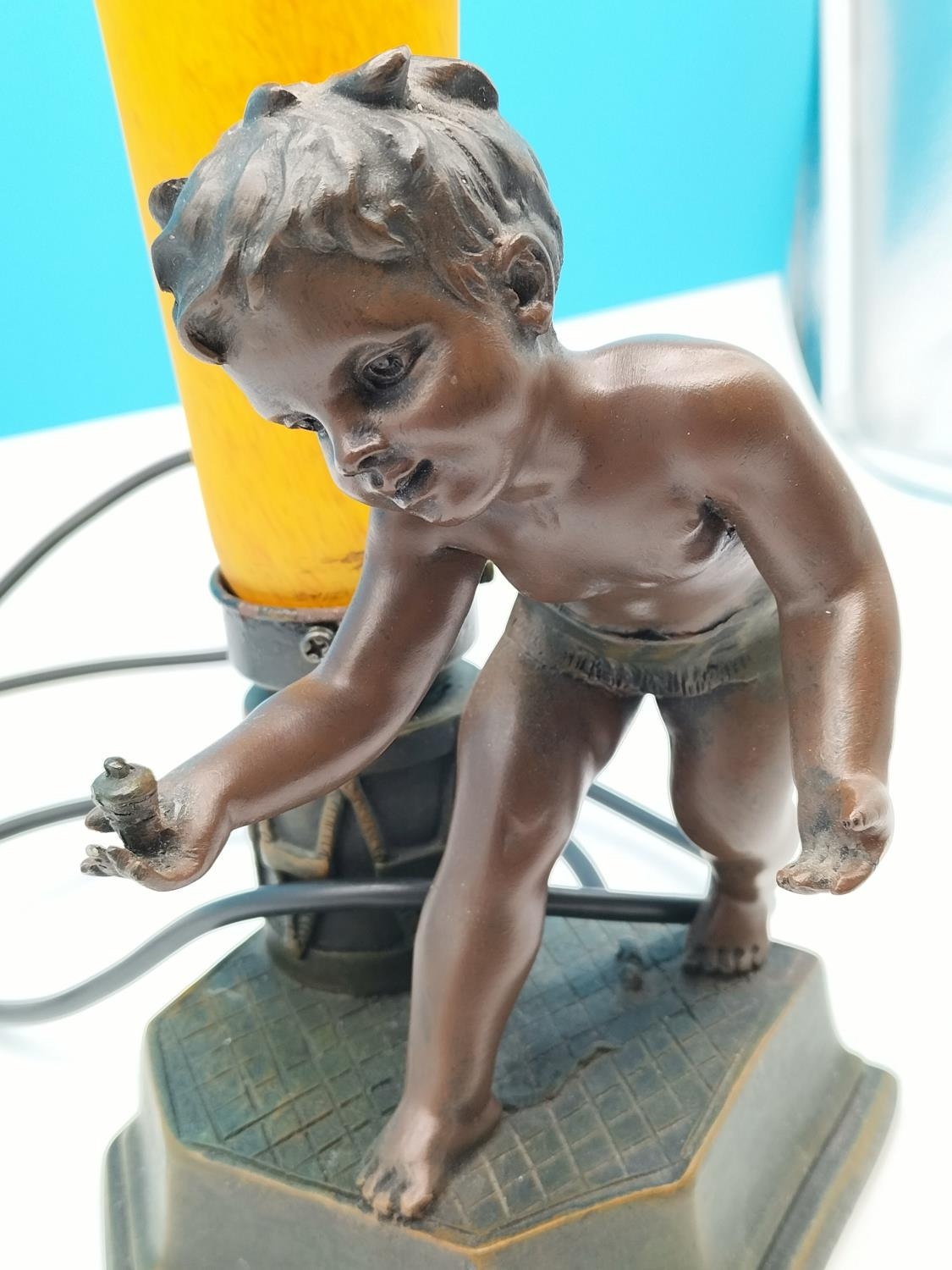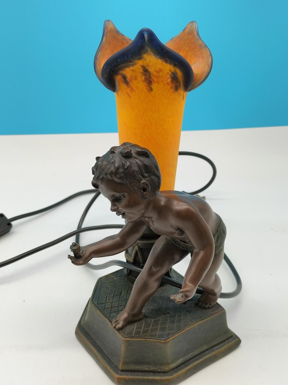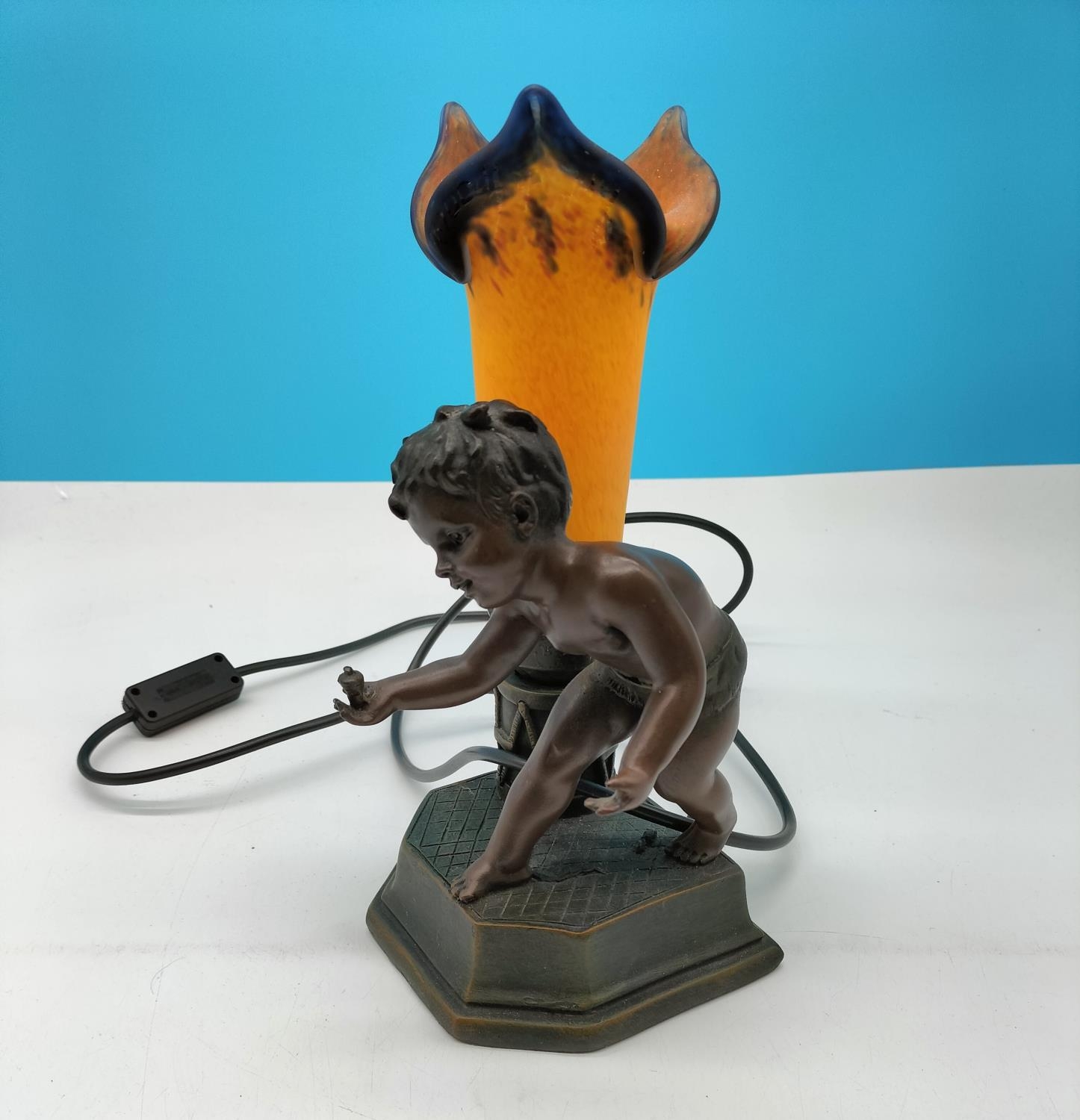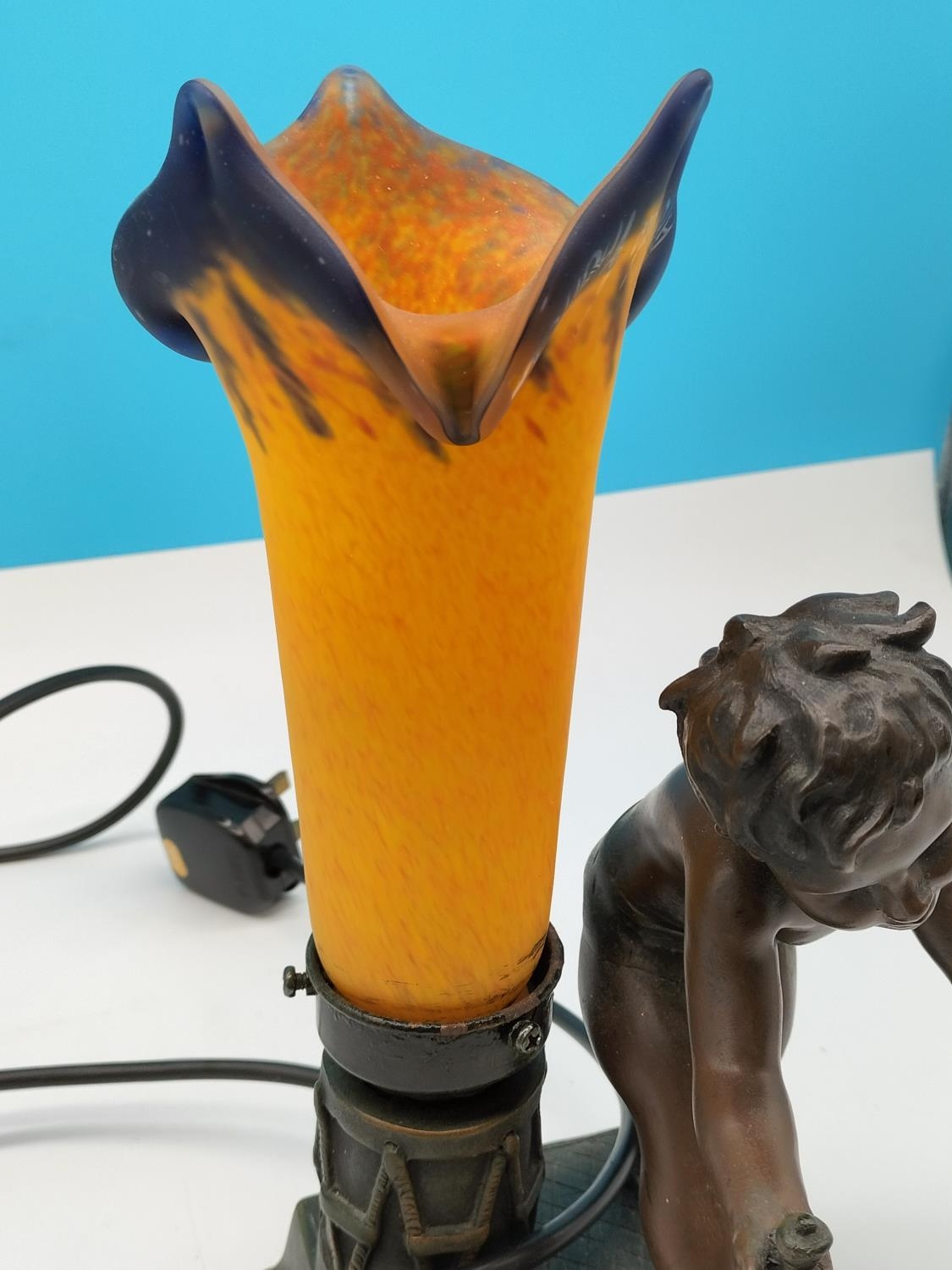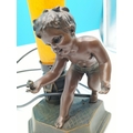Bronze Effect 29cm Boy Table Lamp with Orchid Shape Shade W/O.
