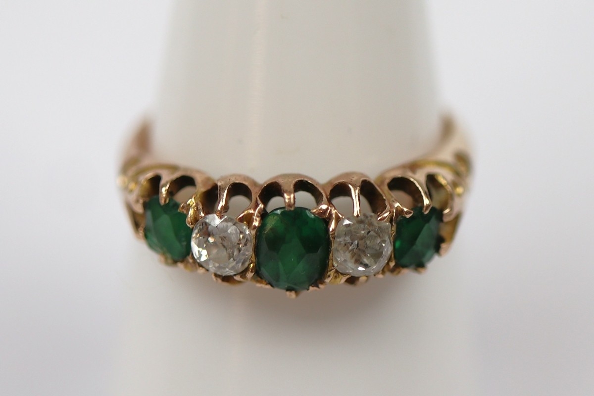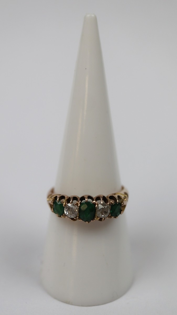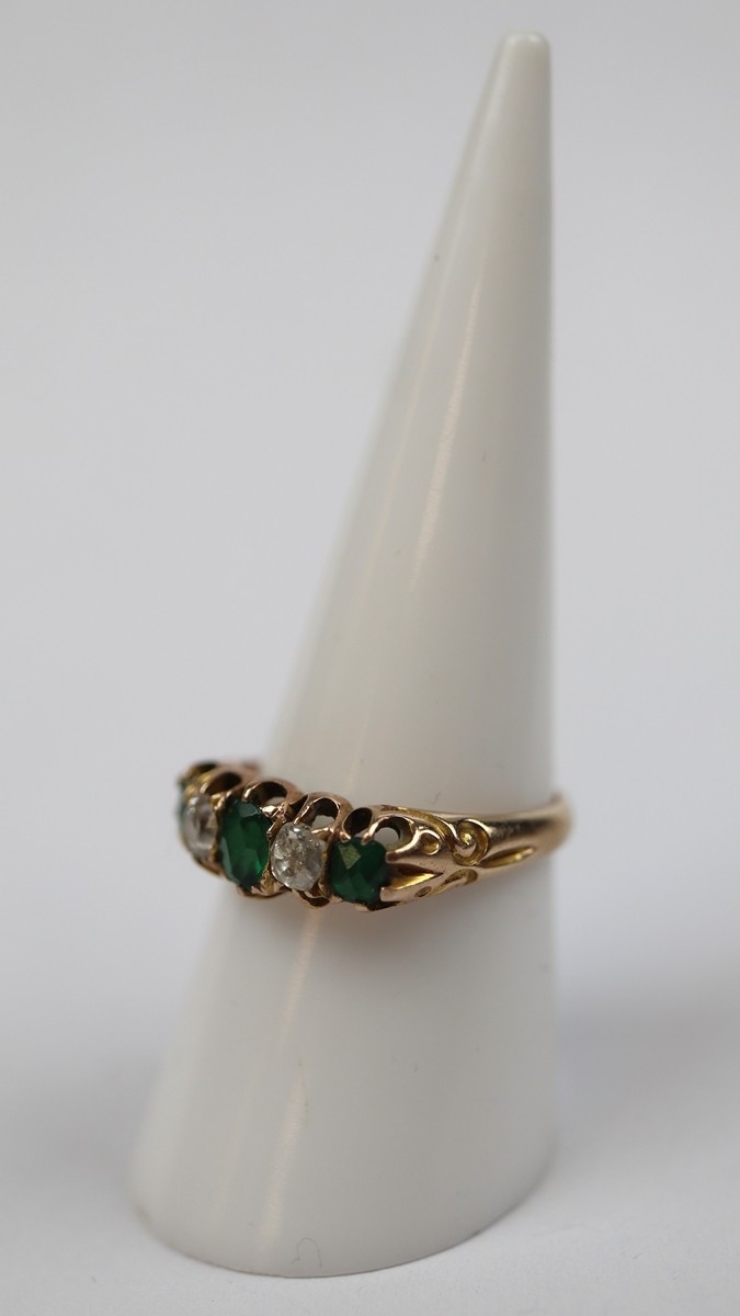14ct gold diamond and emerald set ring - Size O - Approx 3.1g