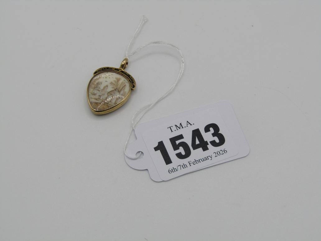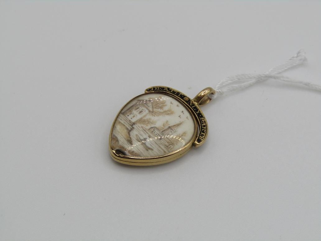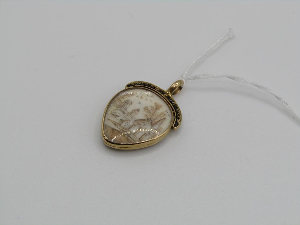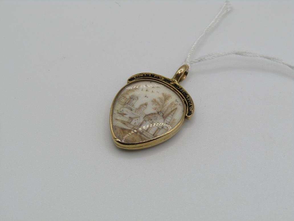 MEMORIAM PENDANT LOCKET WITH PAINTED SCENES, ENAMELLED TITLED READING 'UNITED HEARTS DEATH ONLY PARTS'