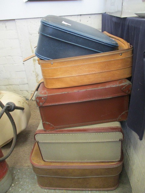 5 STAGGERED SIZED VINTAGE SUITCASES