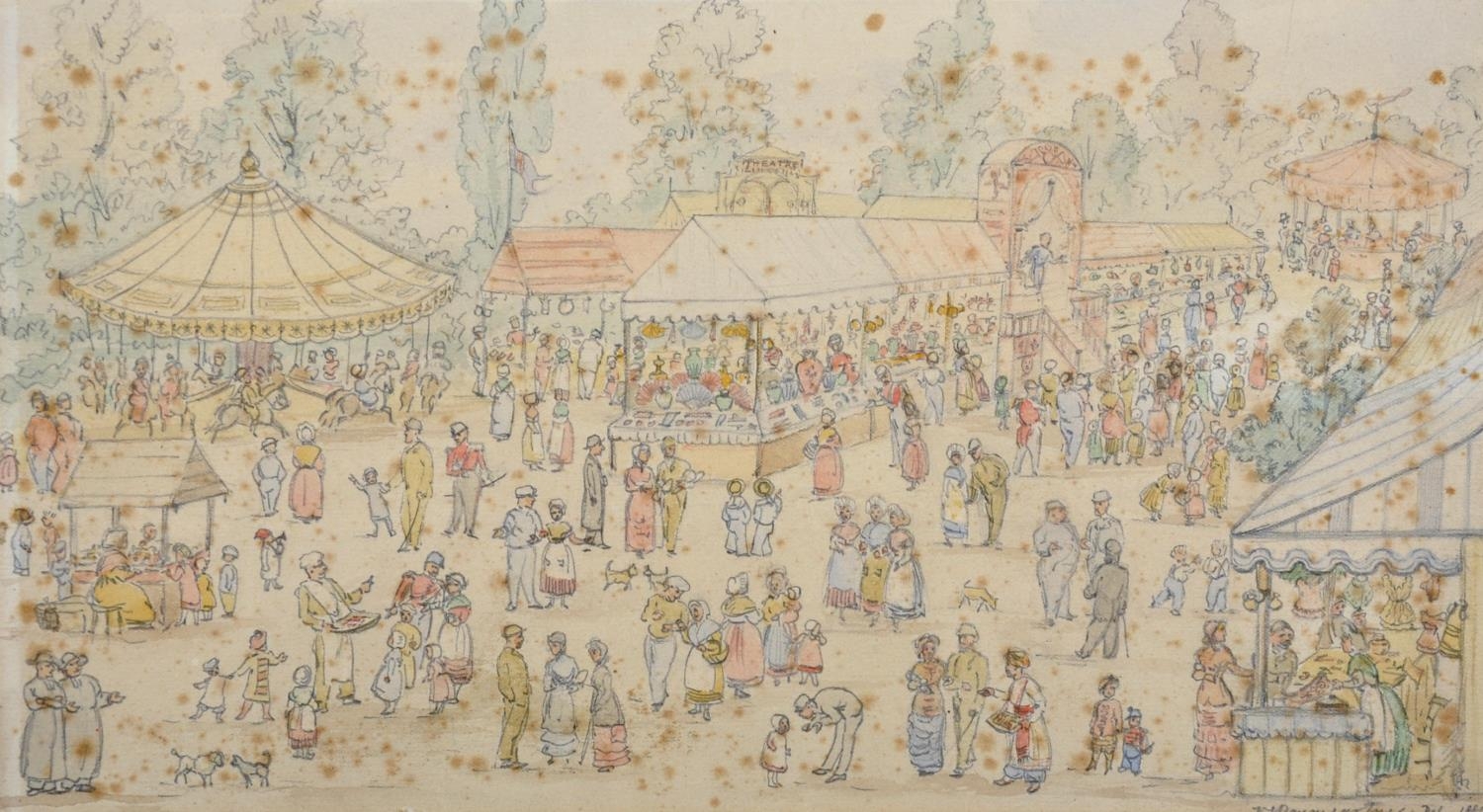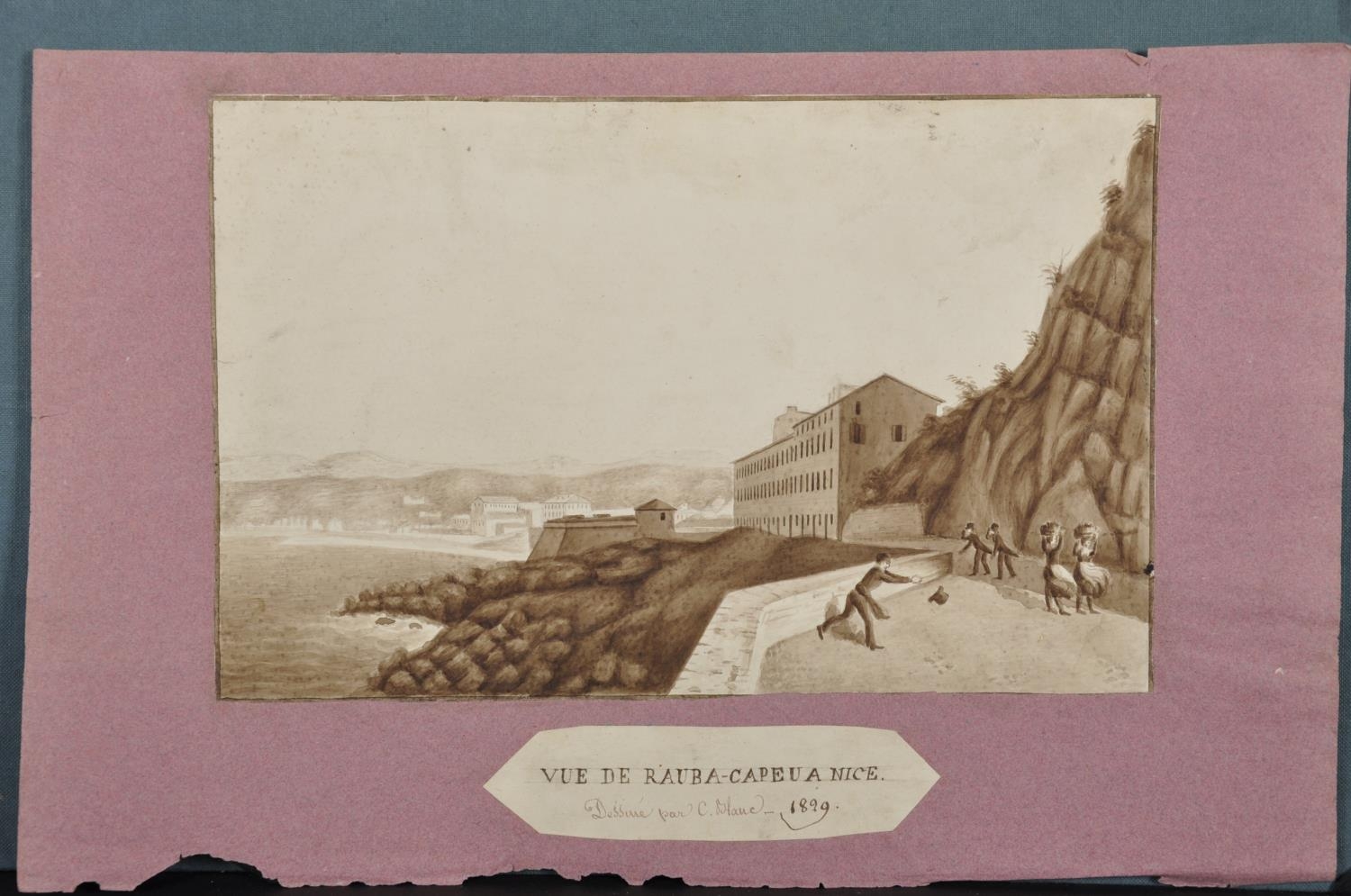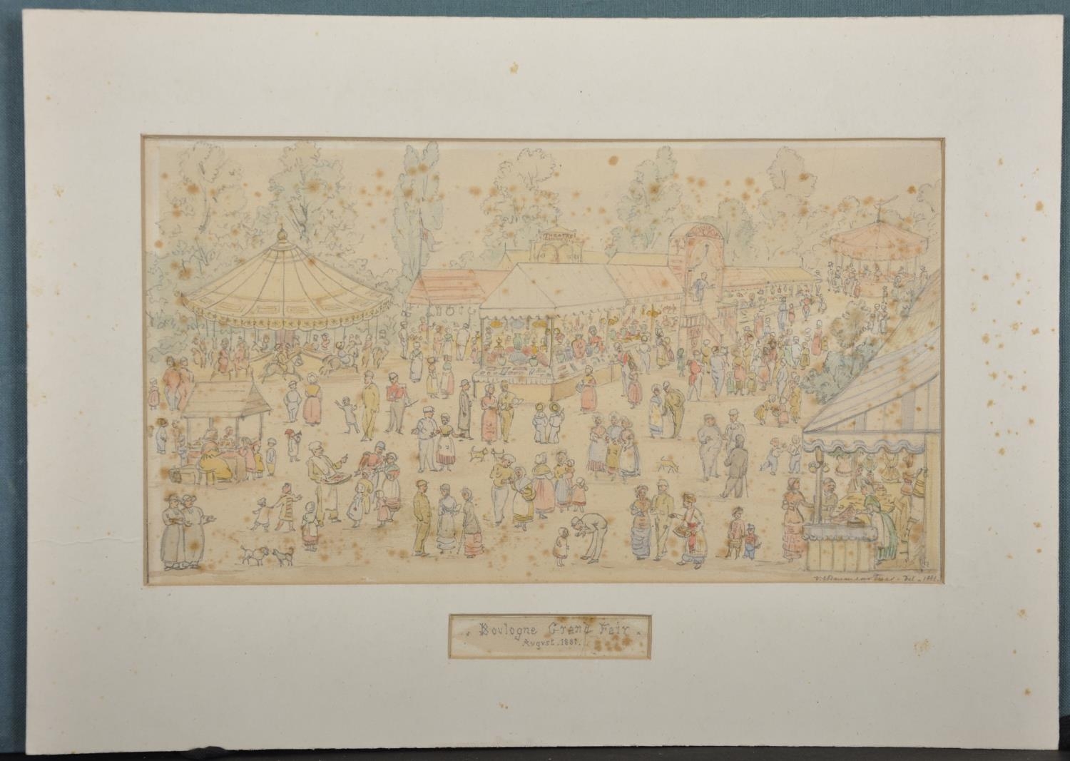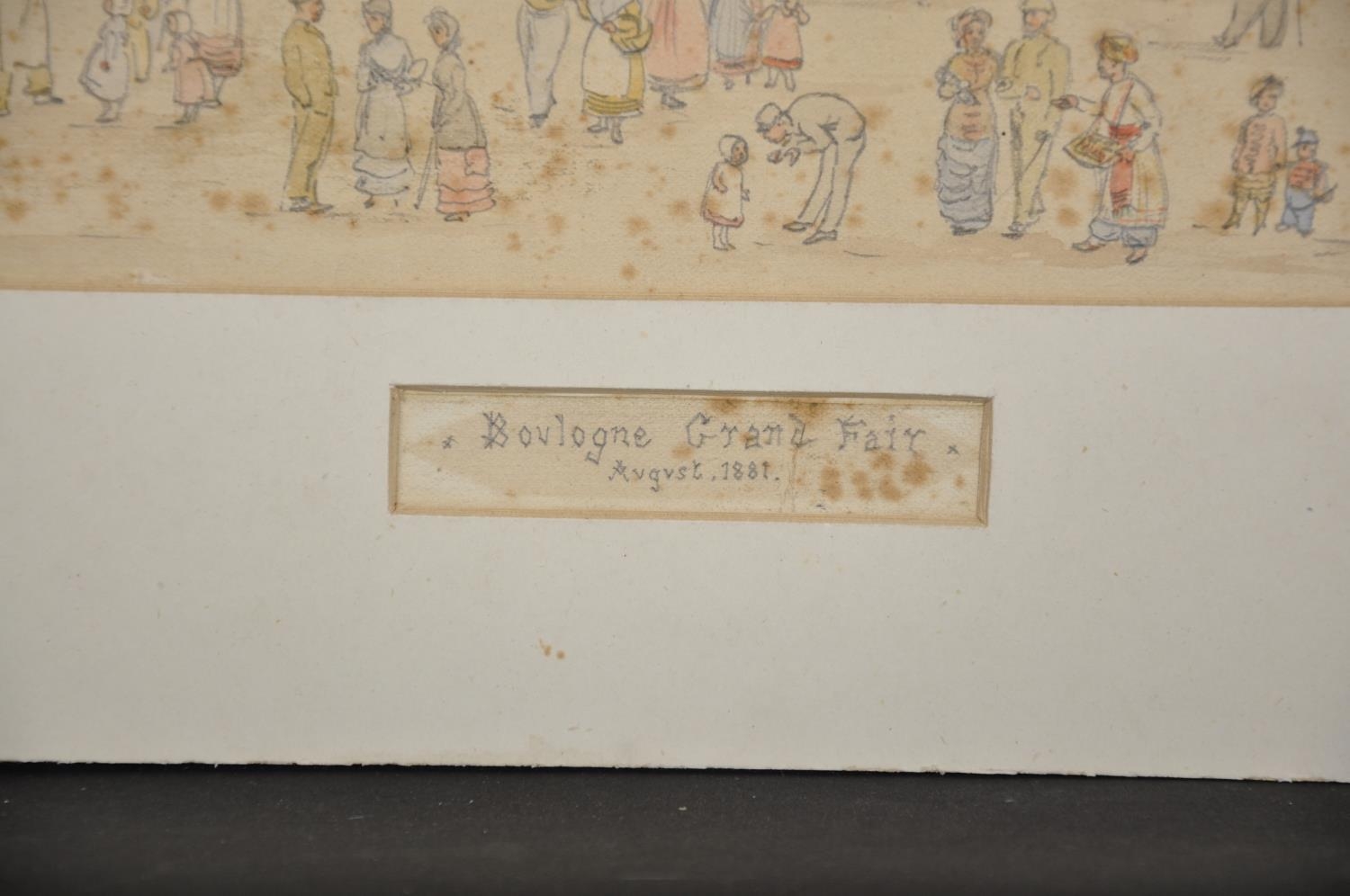 19th Century French School. "Boulogne Grand Fair", Watercolour and Pencil, Indistinctly Signed and Dated 1881, and Inscribed and Dated 'August 1881' on a paper mount, 6.75" x 12.25" (17.5 x 31cm), together with a Watercolour by C... Blanc (19th Century) French. "Vue de Rauba-Capeu a Nice", (2)