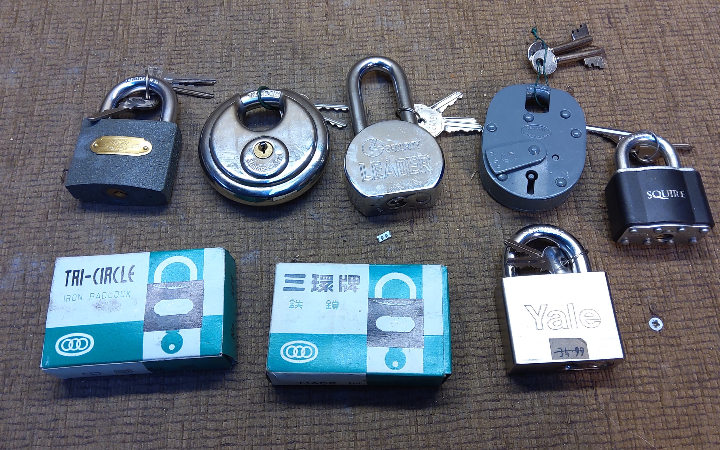 8 very heavy duty padlocks with keys.