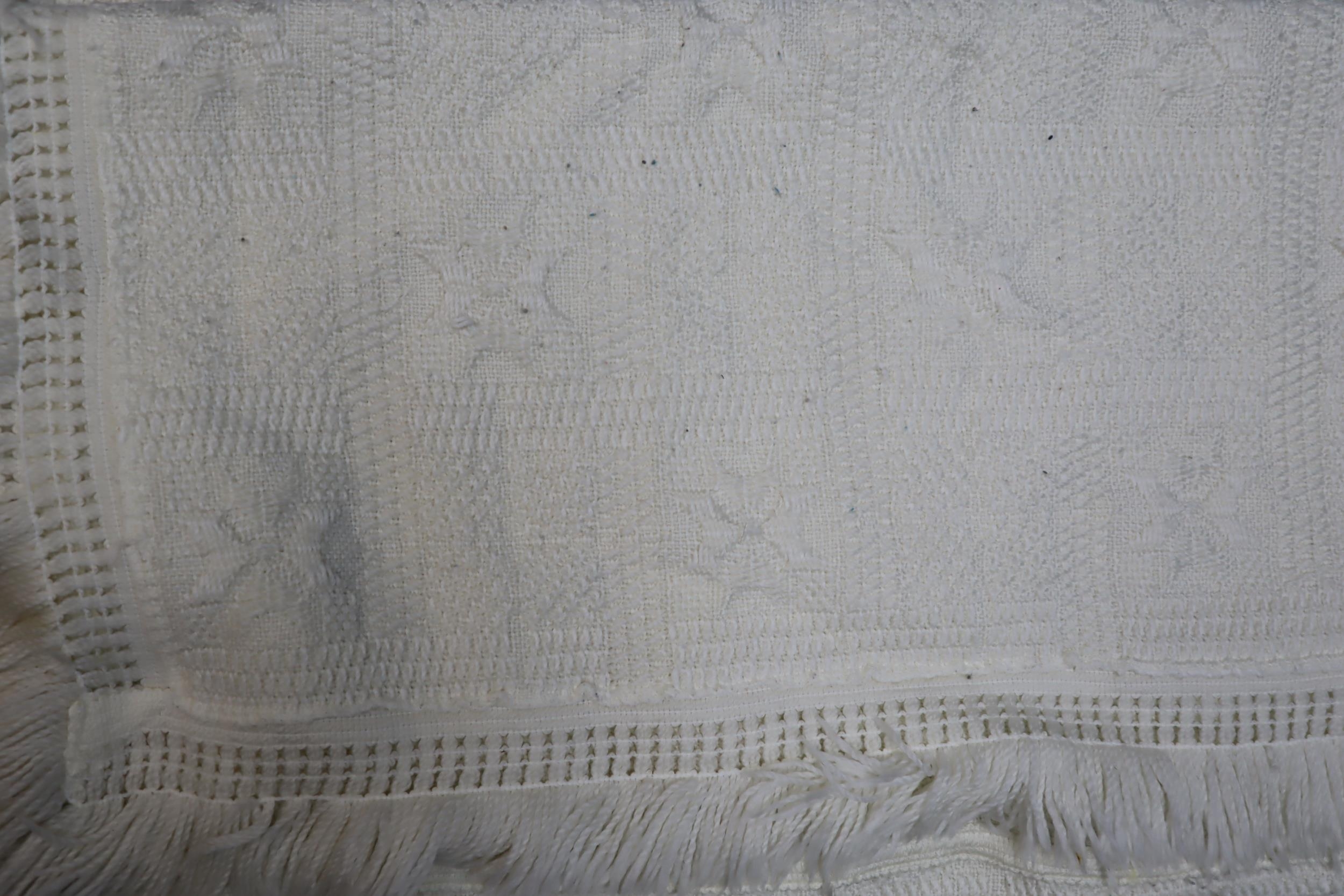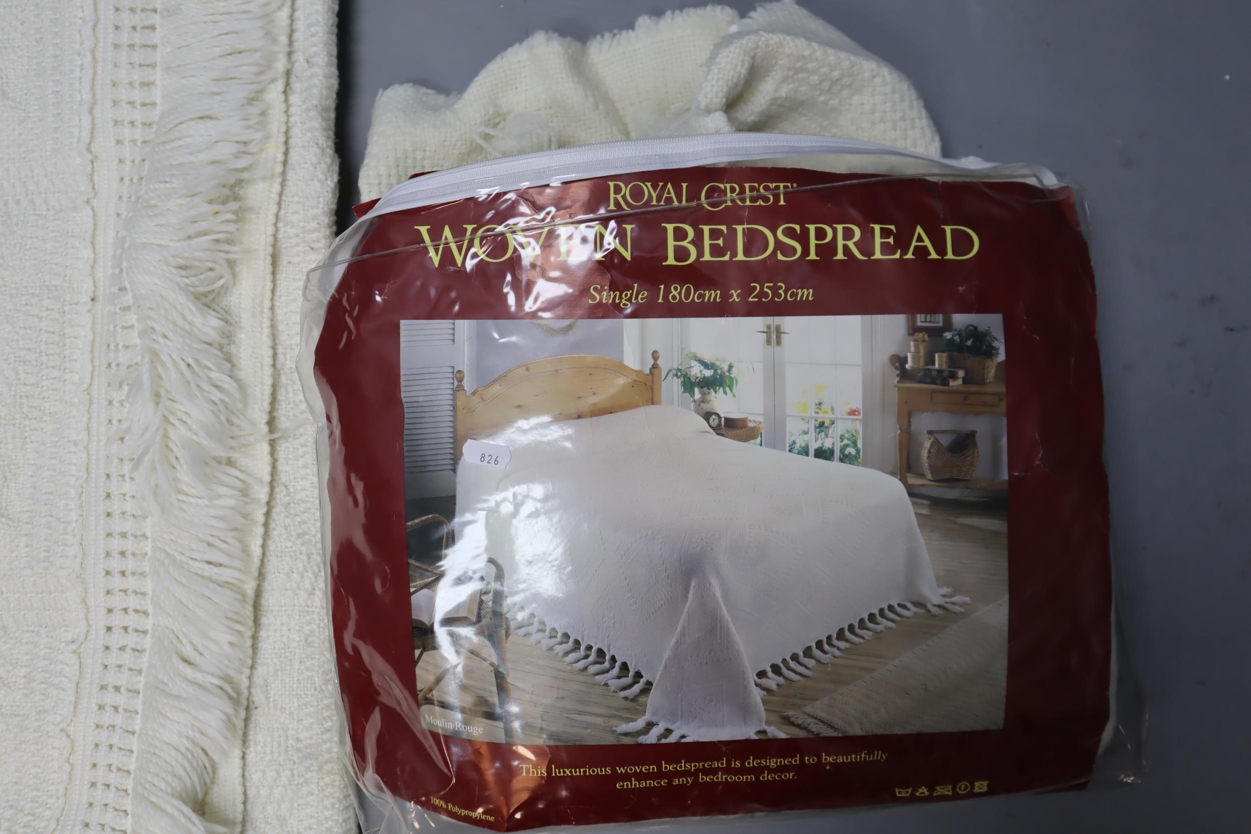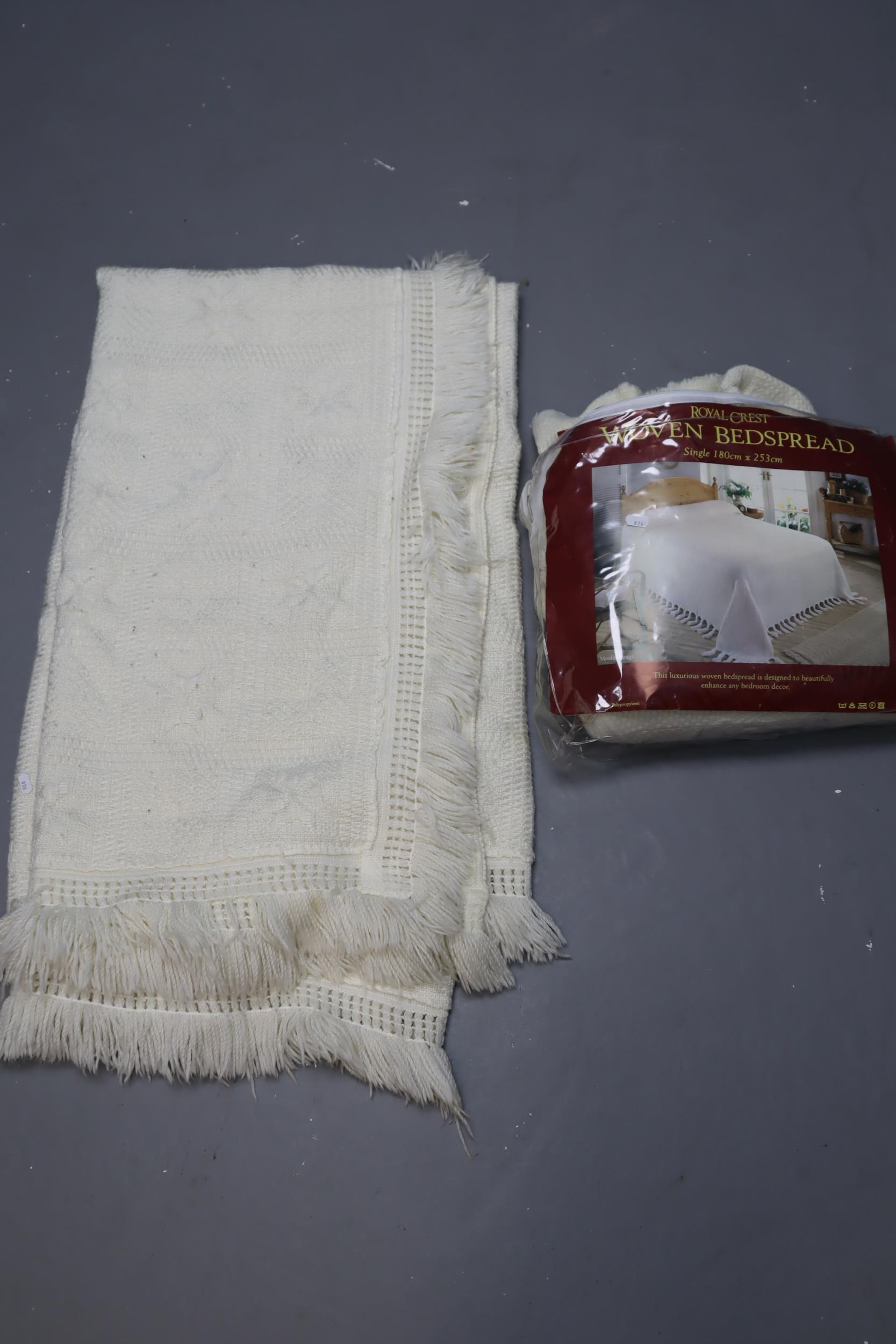 Two single Royal Crest woven bedspread in cream, 180cm x 253cm