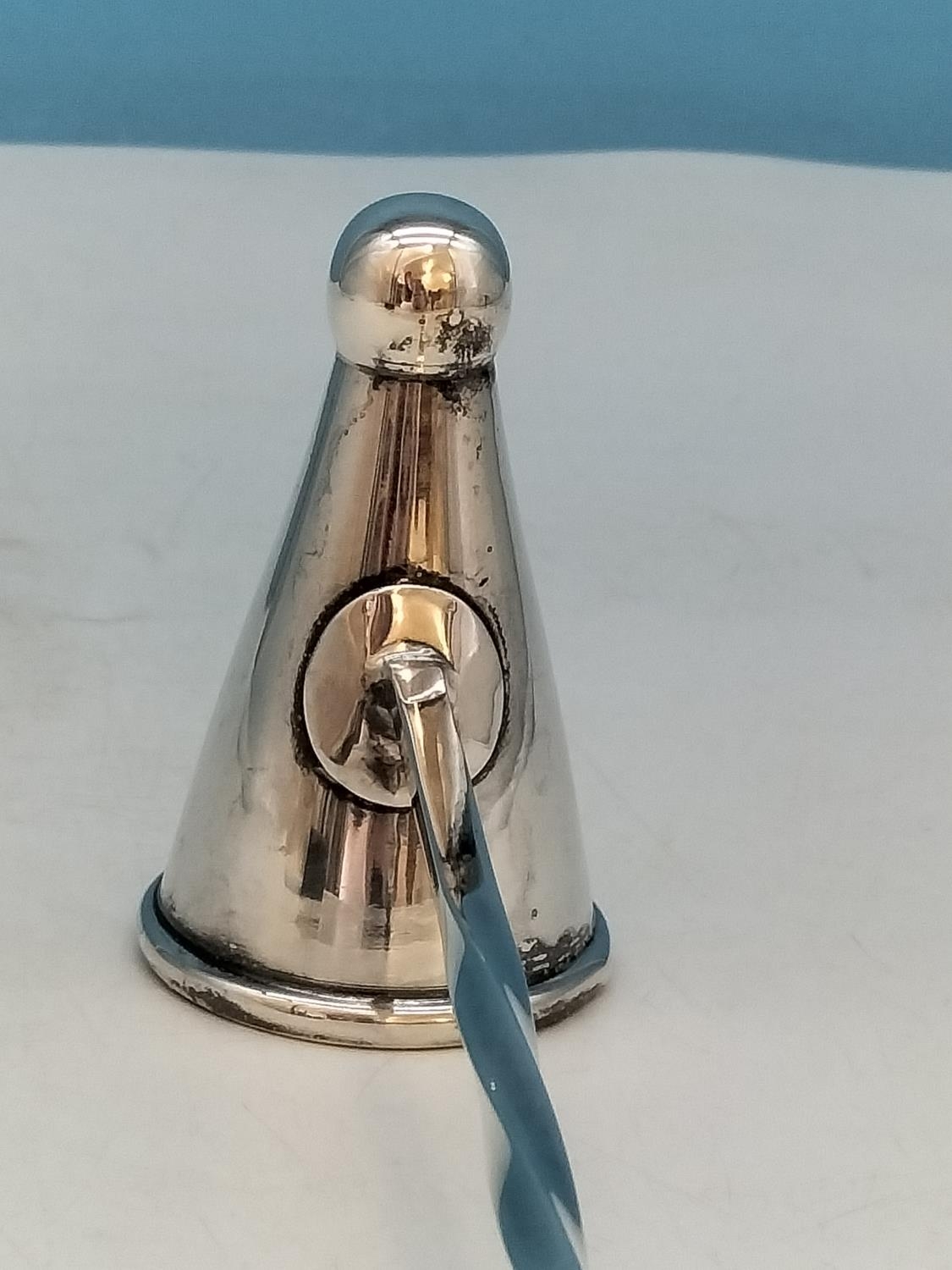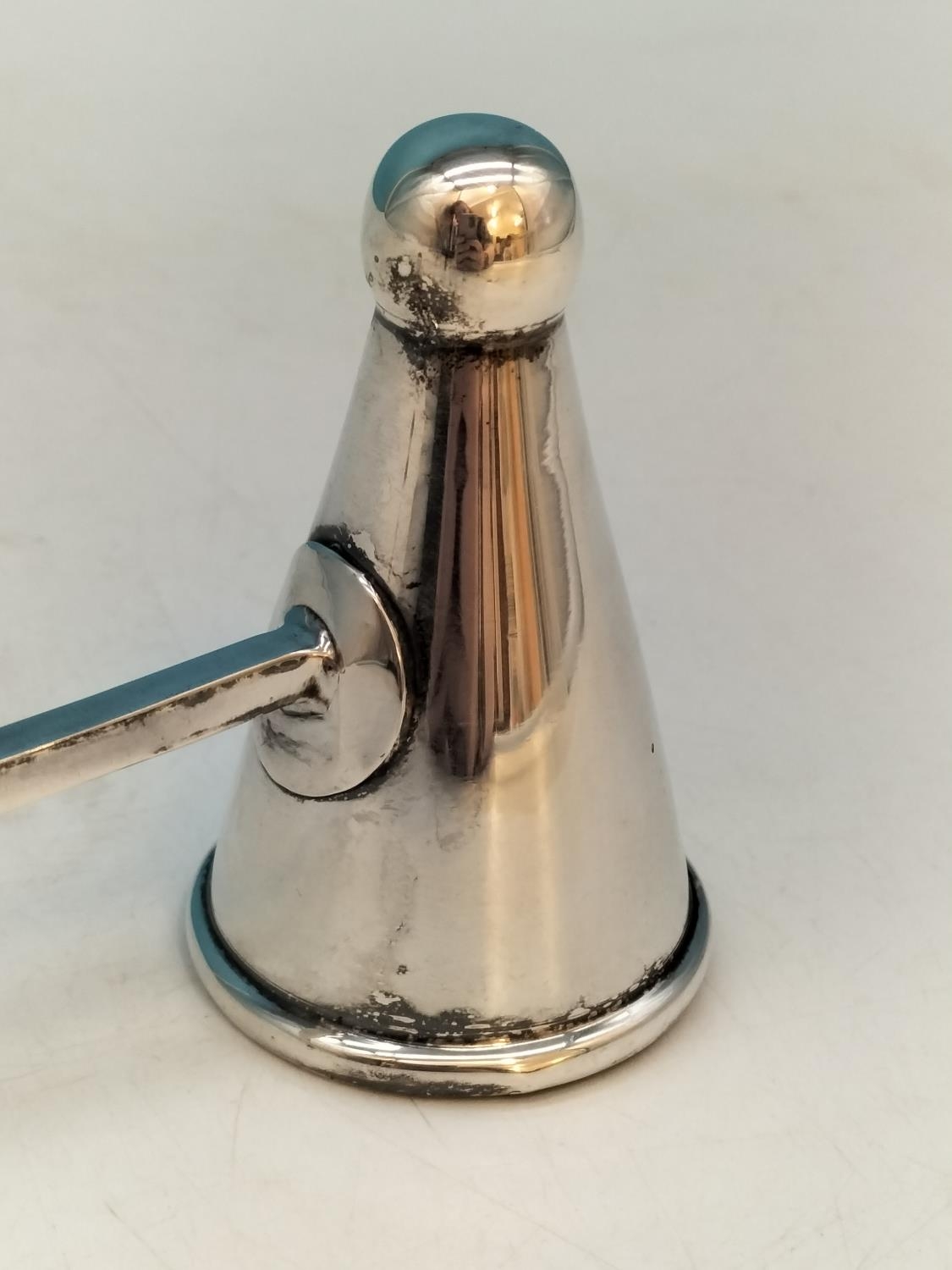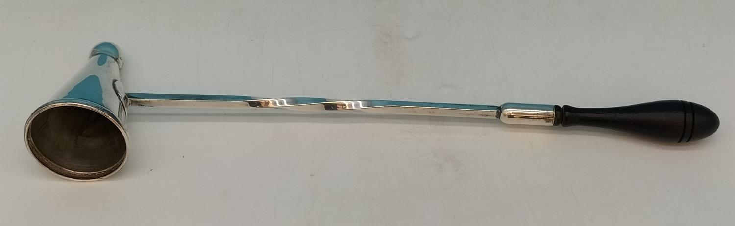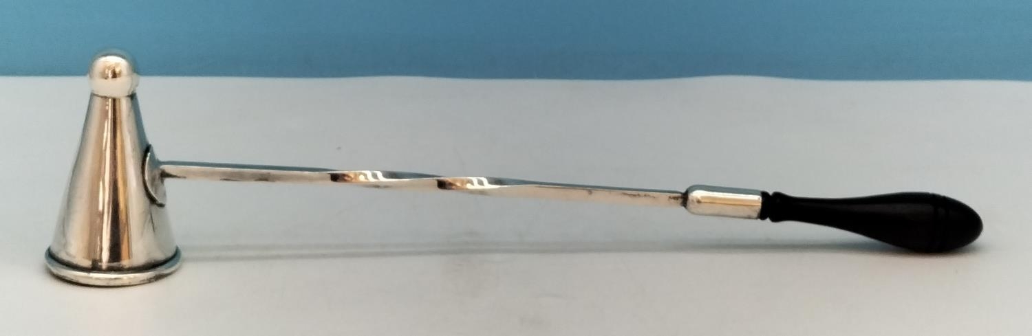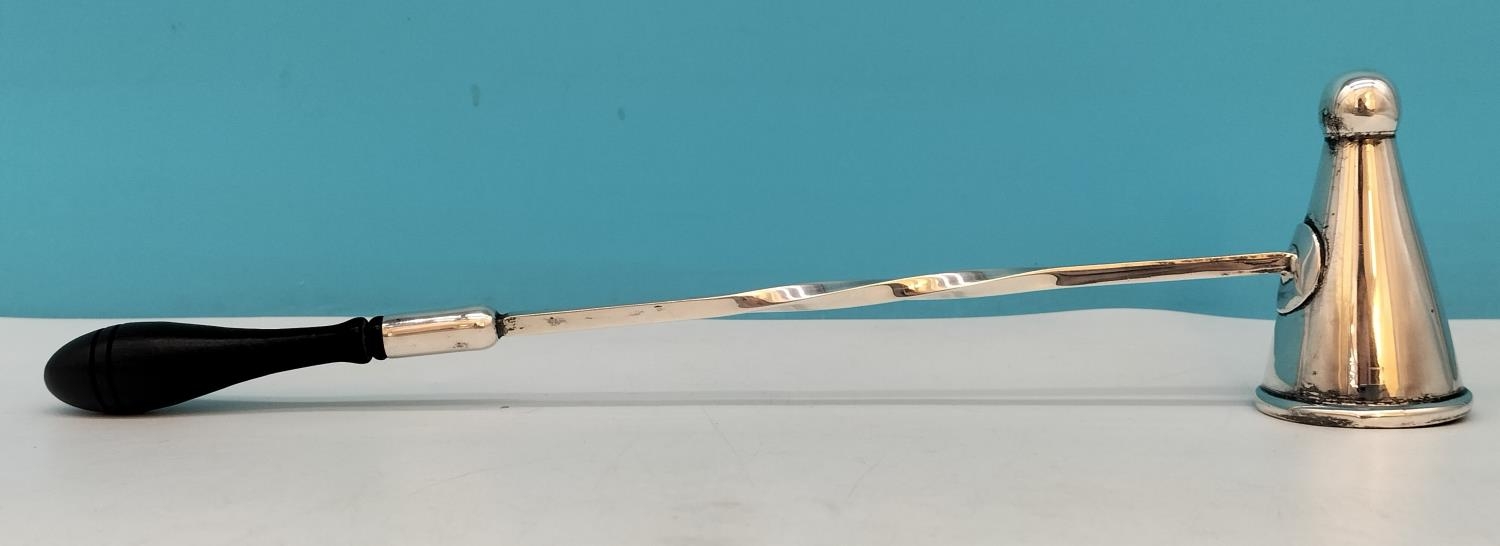 Ebony Handled Silver Plate Candle Snuffer. 29cm Long.