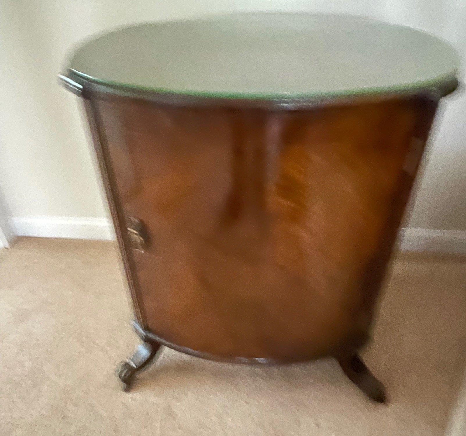 A wooden drinks cabinet with glazed top supported on 4 feet 2ftH x 2ftW 1ftD approx
