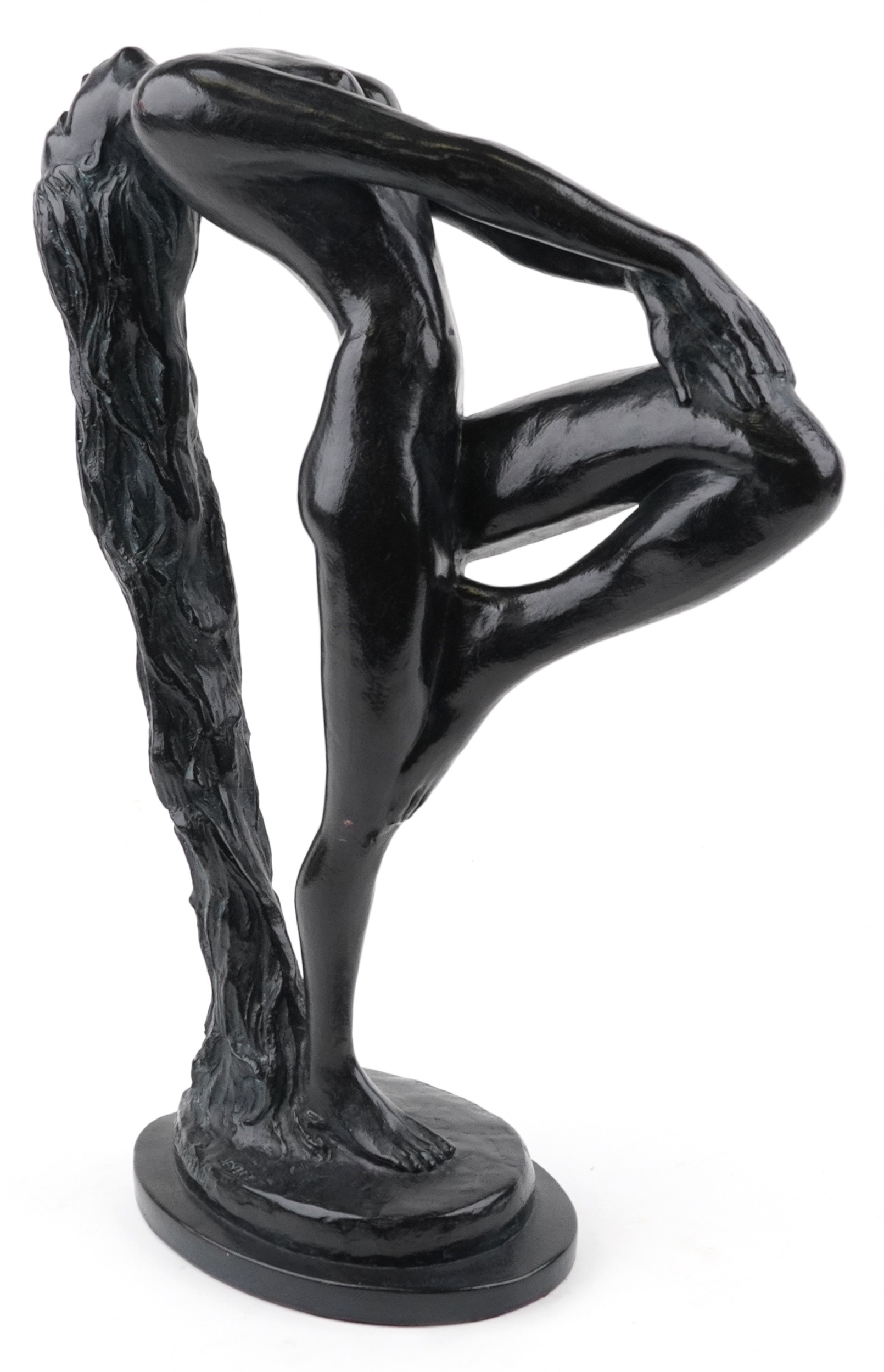 An Austin Productions Art Deco style sculpture of a nude female dancer, signed and dated 1979, 56cm high.