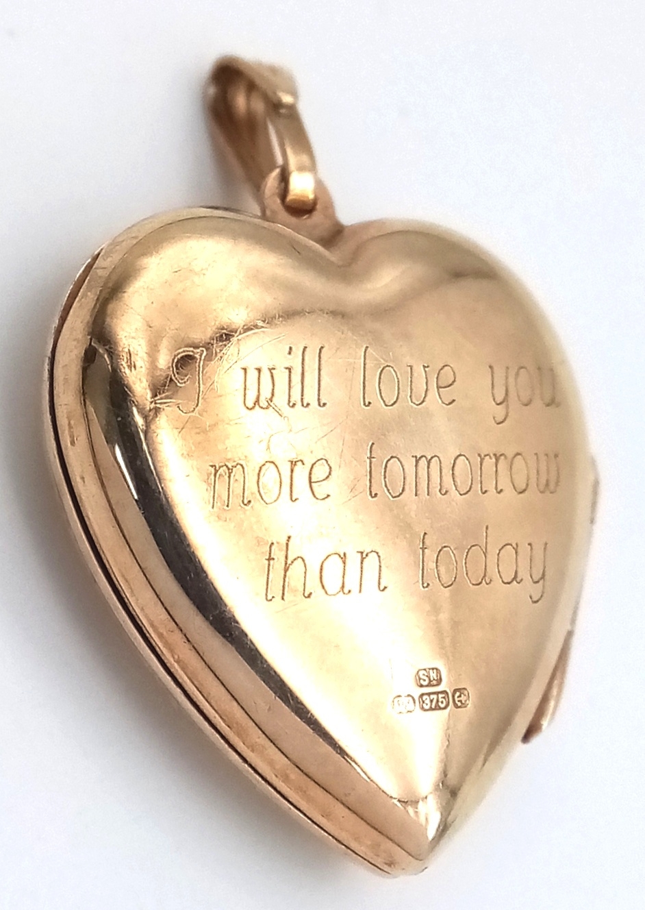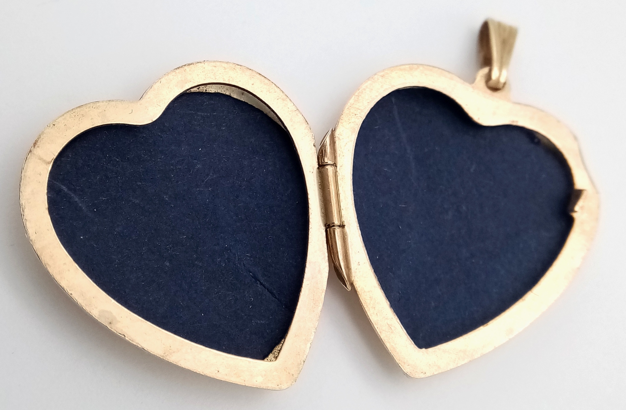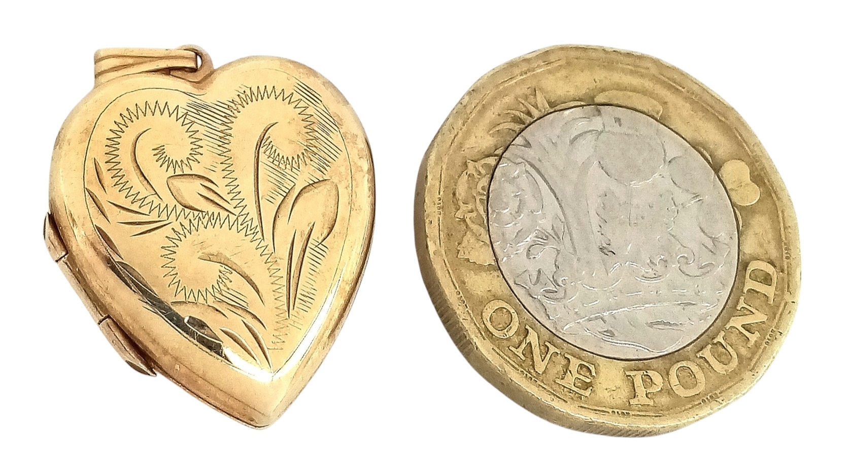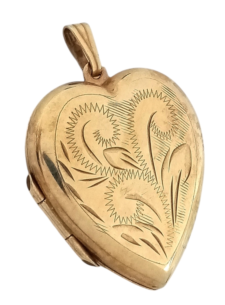 Fully hallmarked vintage 9 CARAT GOLD ‘HEART SHAPED’ LOCKET pendant . Beautiful decoration to front. 2.64 Grams. Approx 2 cm x 2 cm. Excellent Condition ,Please see pictures.