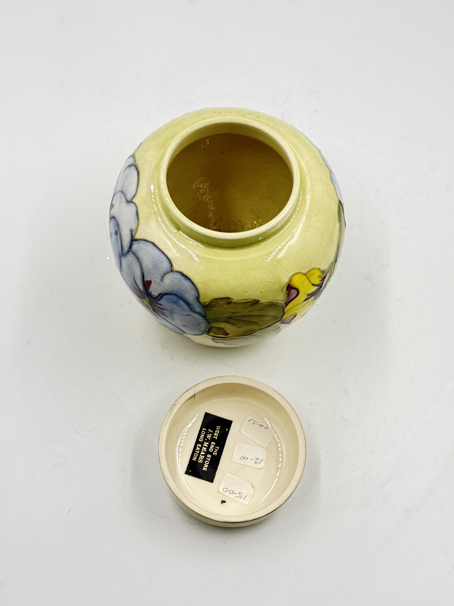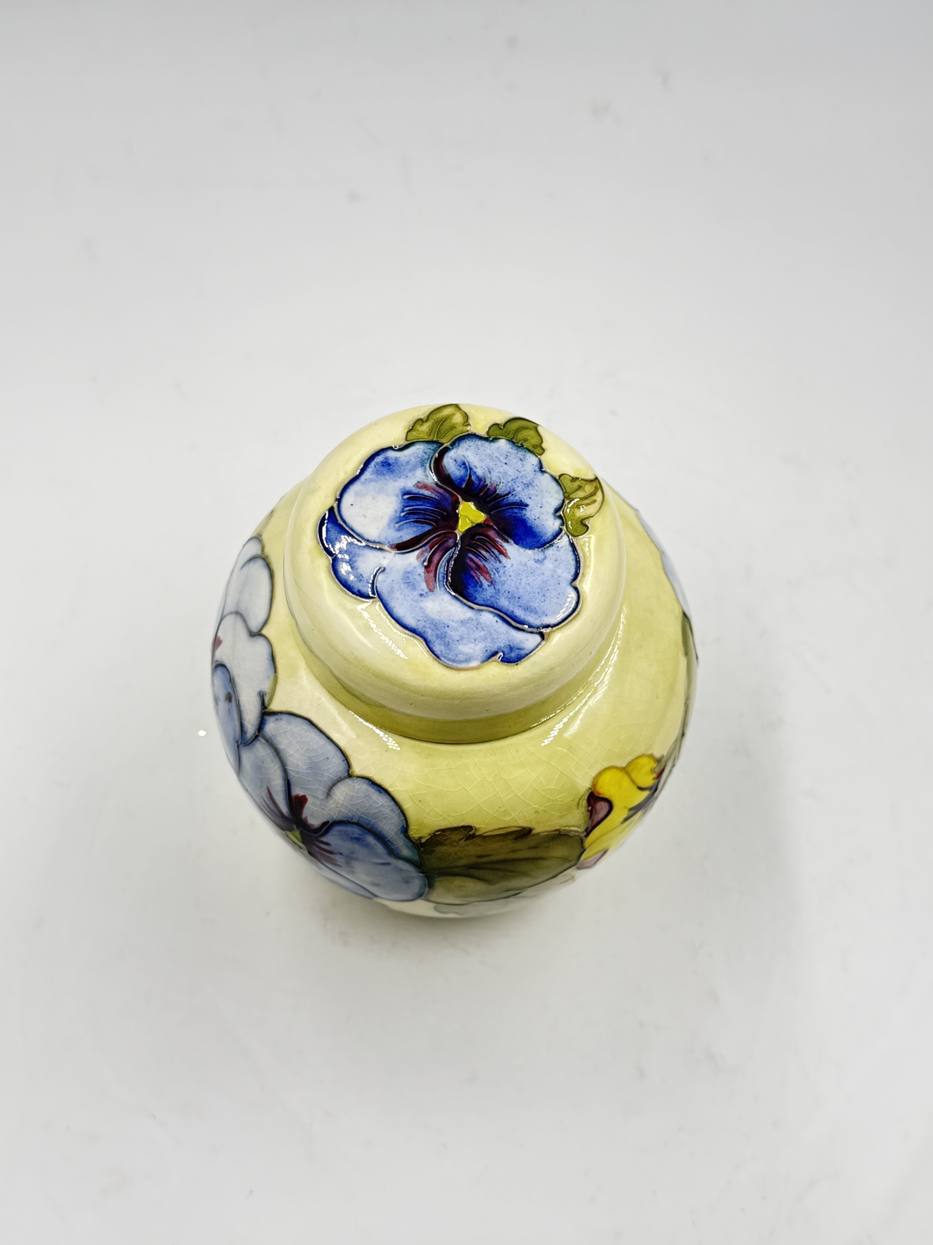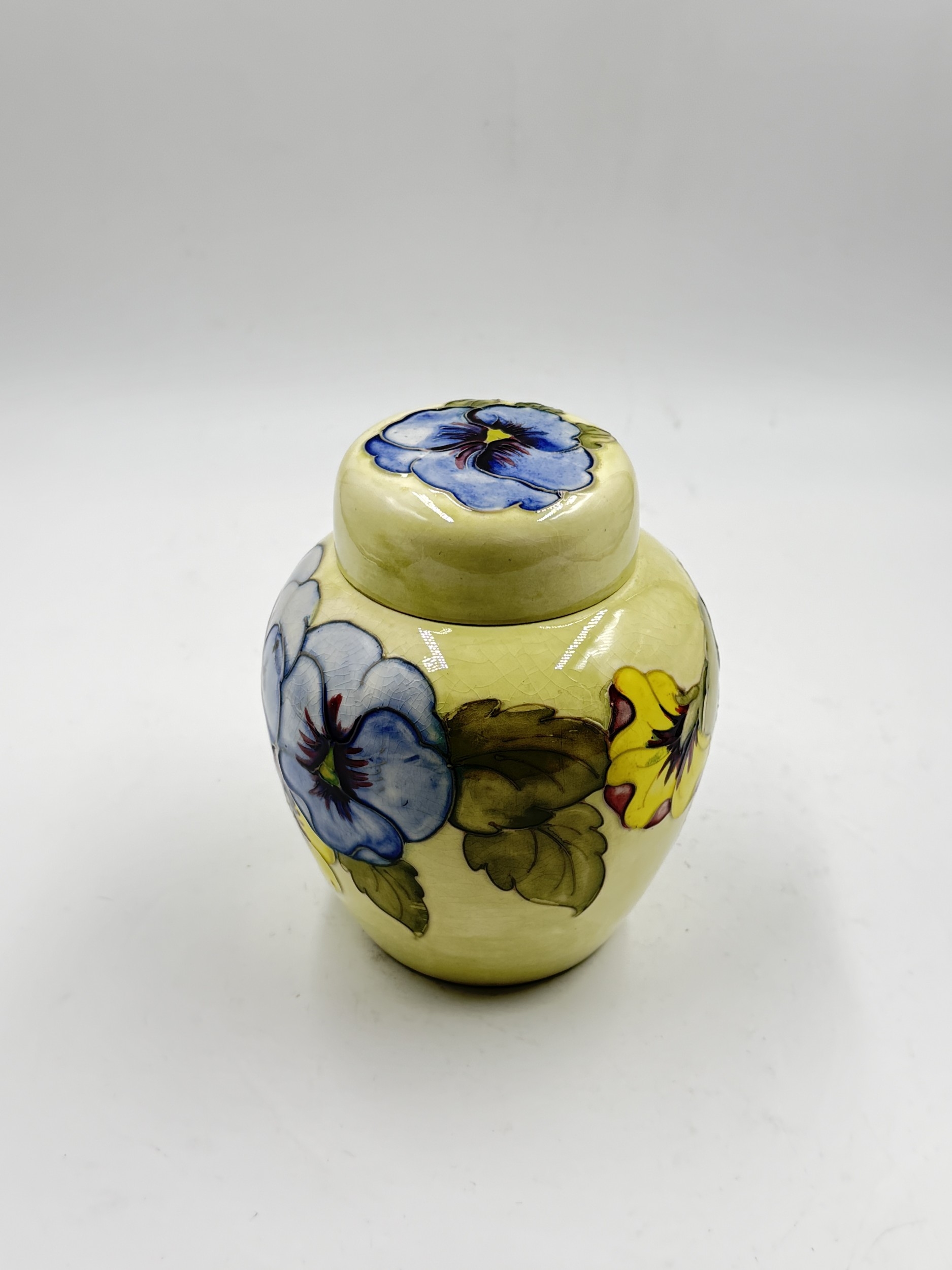 A Moorcroft Pansy pattern ginger jar and cover - approx. 15.5cm high