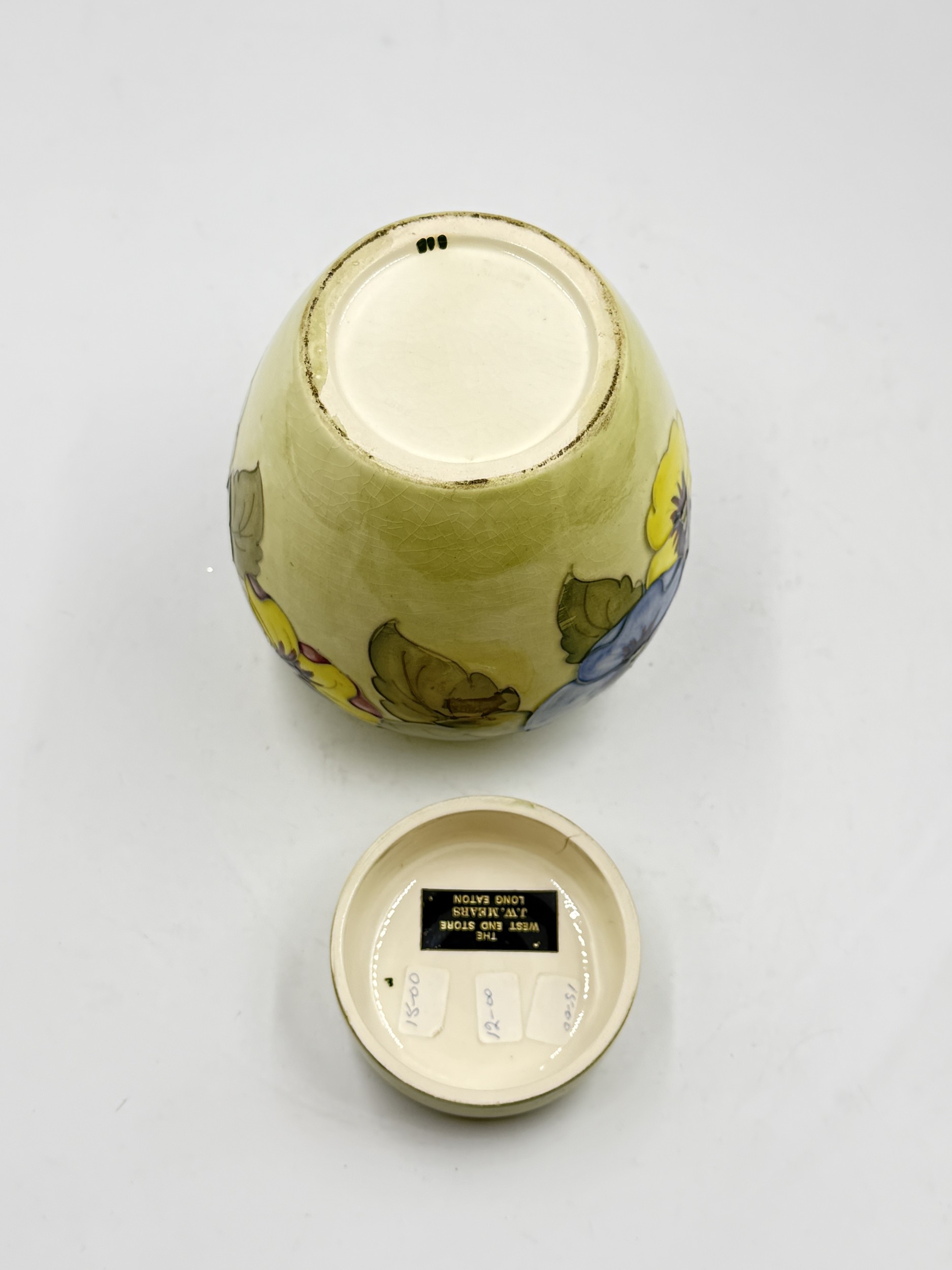 Crazing is visible throughout, two firing cracks can be seen to underside of lid and slight nibbles are present to lid rim.