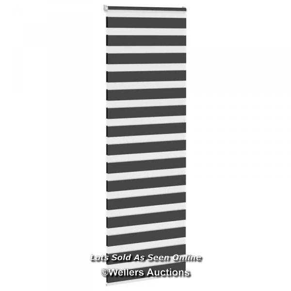 RRP: 34.99 - GEORGE OLIVER GEORGE OLIVER ZEBRA BLIND POLYESTER / BLIND SIZE: 115CMW X 100CML, COLOUR: DARK GREY / SEE IMAGES FOR CONDITION / STOCK IMAGES USED FOR ILLUSTRATION / W2