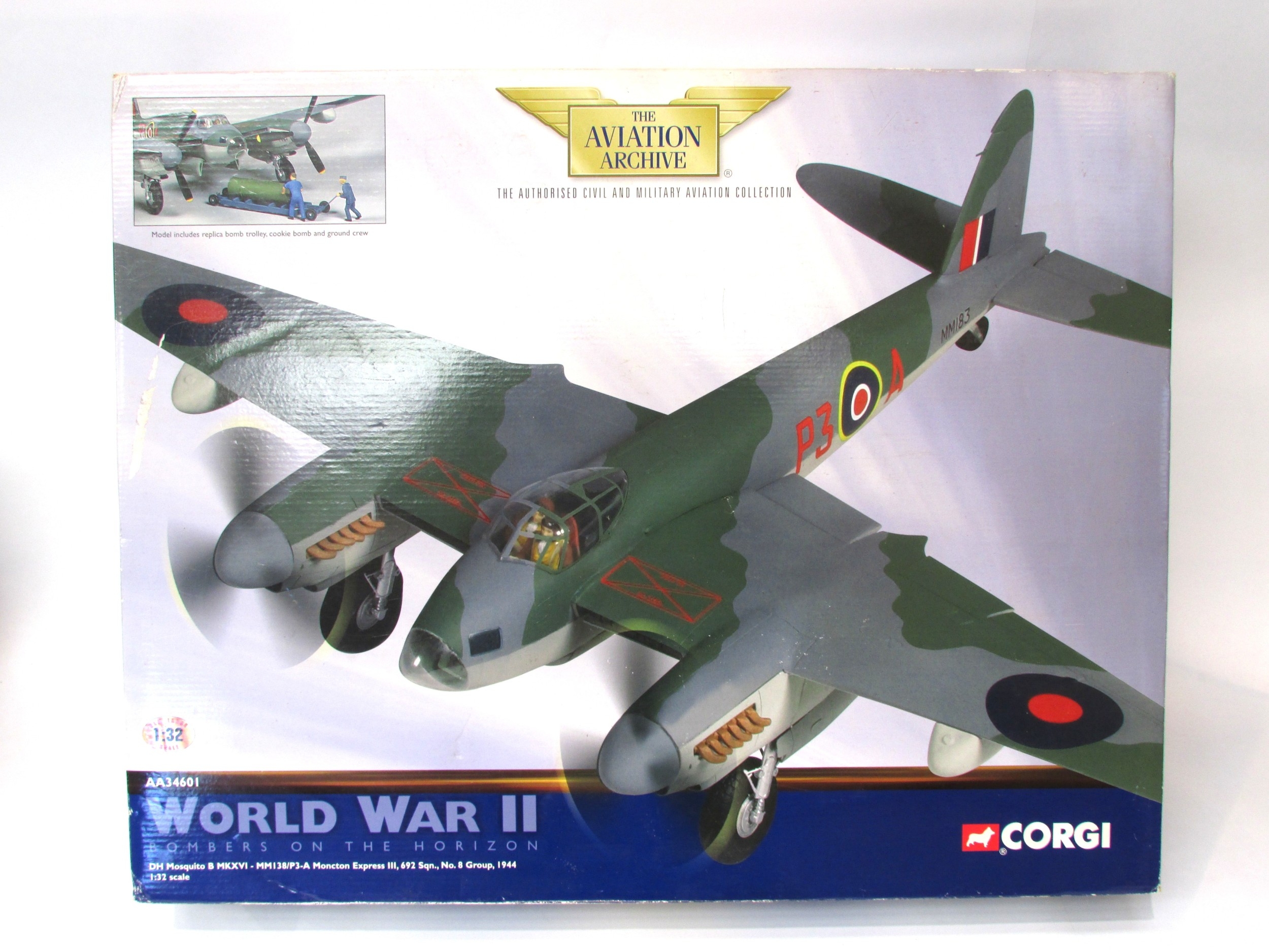 Corgi Aviation Archive 1:32 scale metal diecast model DH Mosquito B MKXVI Moncton Express III, 692 Squadron, No. 8 Group, 1944 "World War II Bombers on the Horizon", AA34601, in original box (unchecked for completeness)