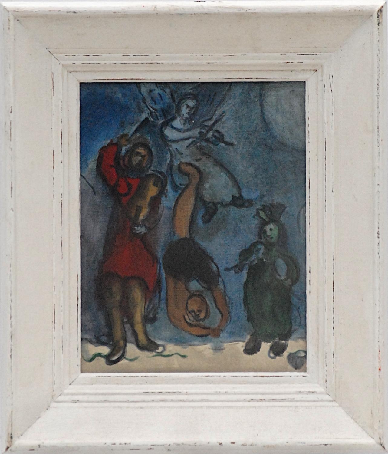 MARC CHAGALL 'Les Baladins', 1976, off set lithograph Atelier Mourlot, edition 250, suite: 'Les ateliers de Chagall', 24cm x 18cm.