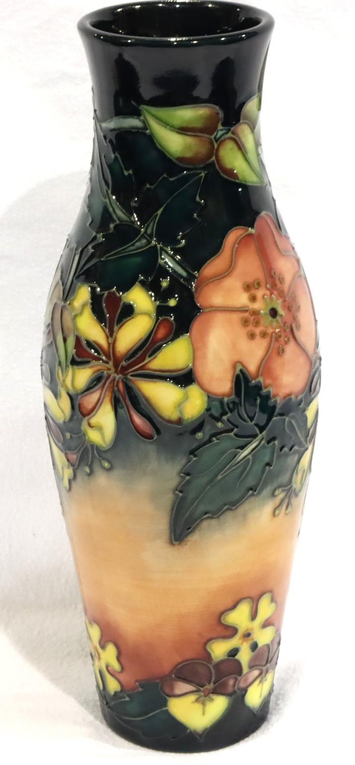 Moorcroft seconds quality tall vase signed AB 1993, H: 26 cm. P&P Group 3 (£25+VAT for the first lot and £5+VAT for subsequent lots)