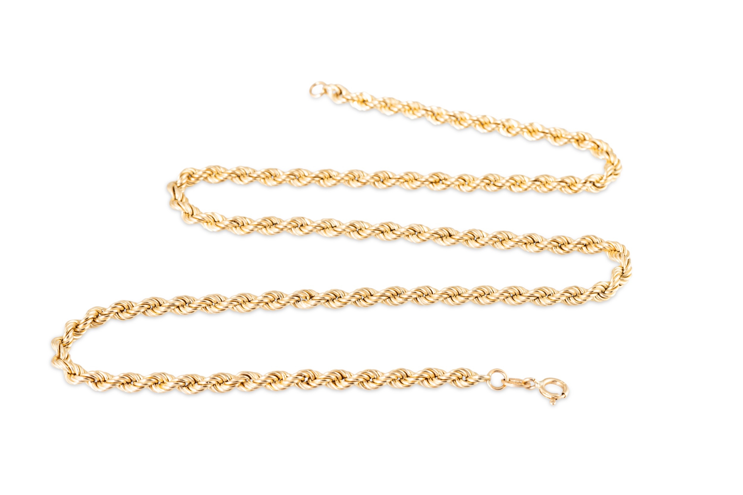 A 9CT YELLOW GOLD ROPE LINK NECKLACE