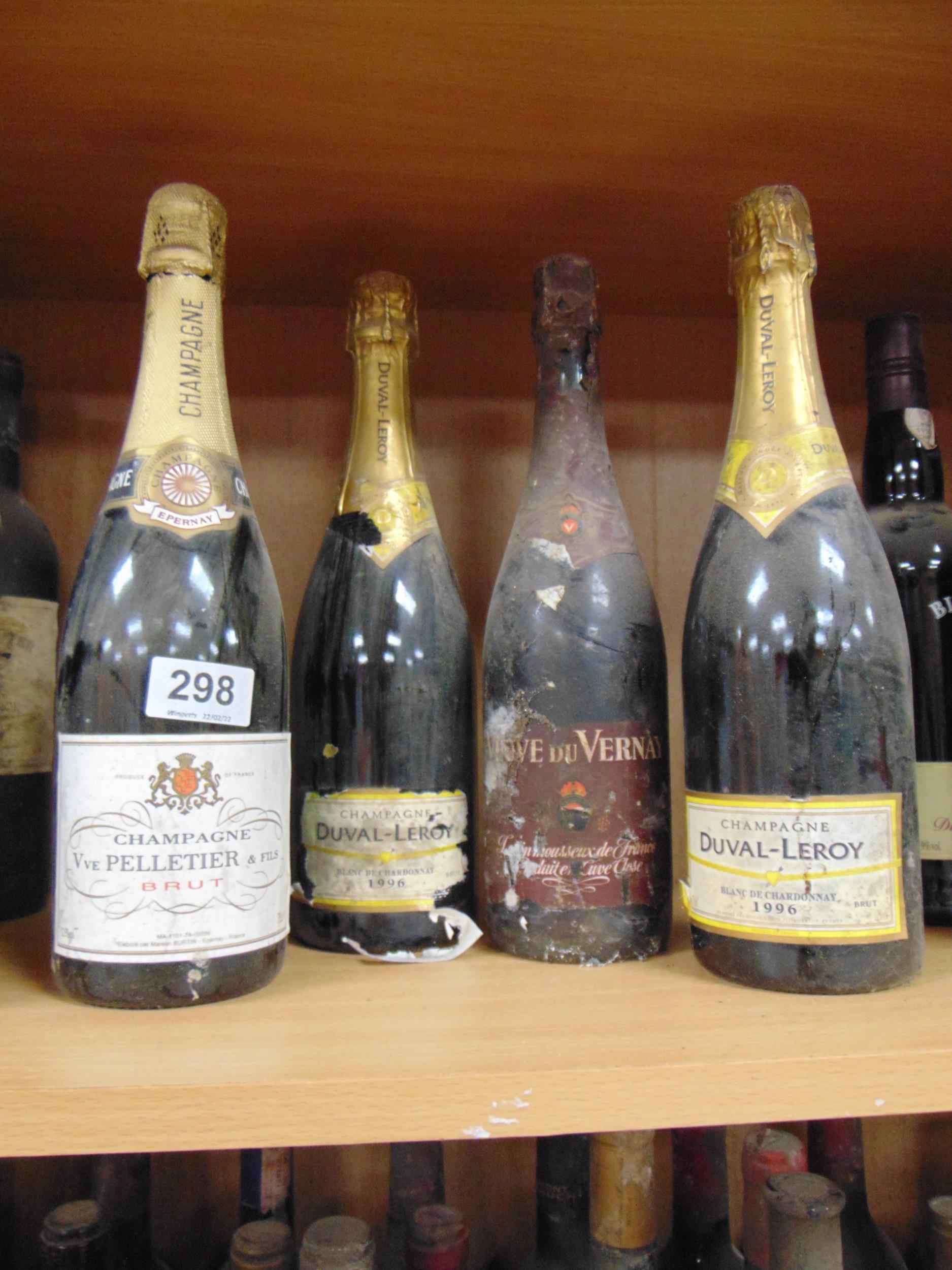 One bottle of Vve Pelletier Champagne and three others, (4).