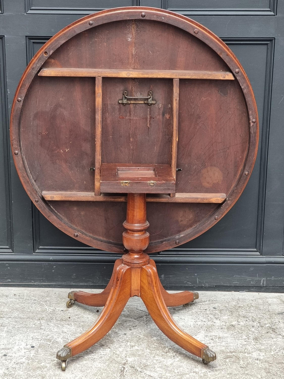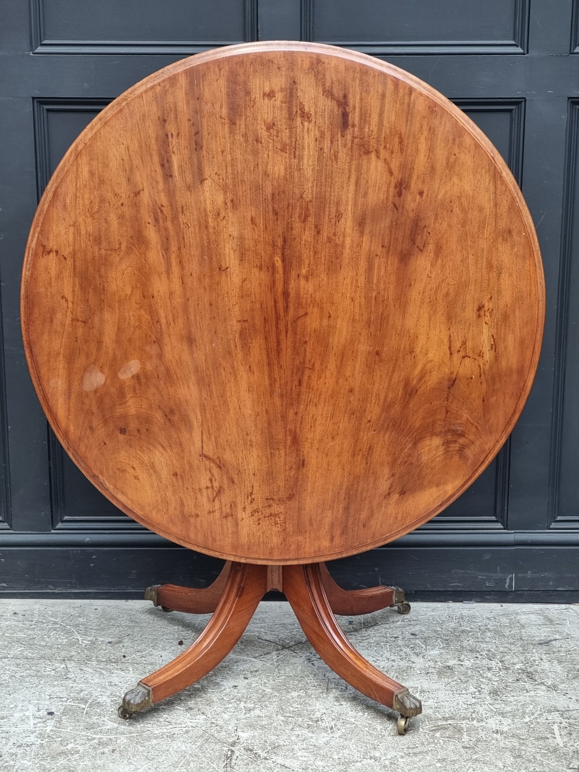 A Victorian mahogany circular breakfast table, with one-piece tilt-top, 104cm diameter.
