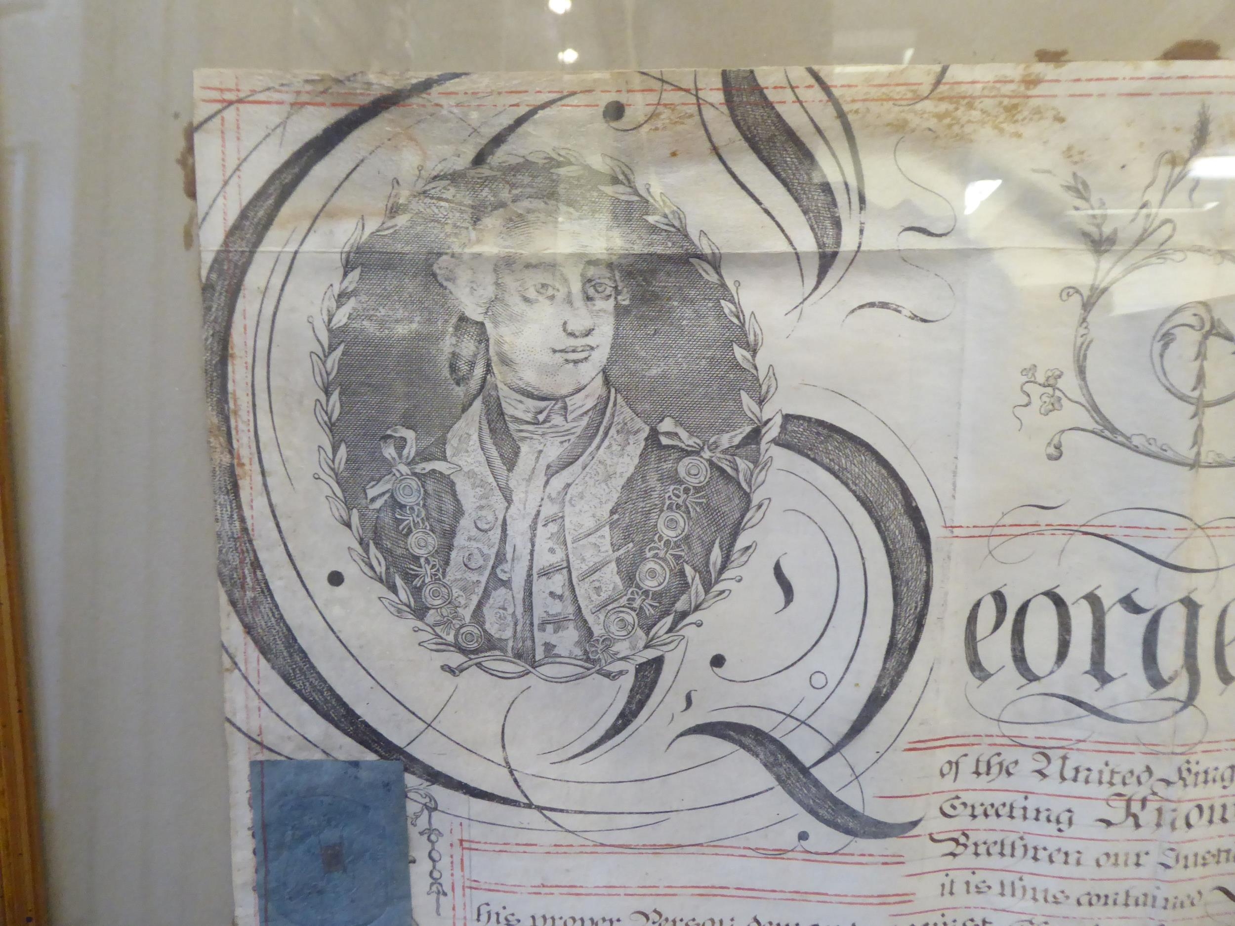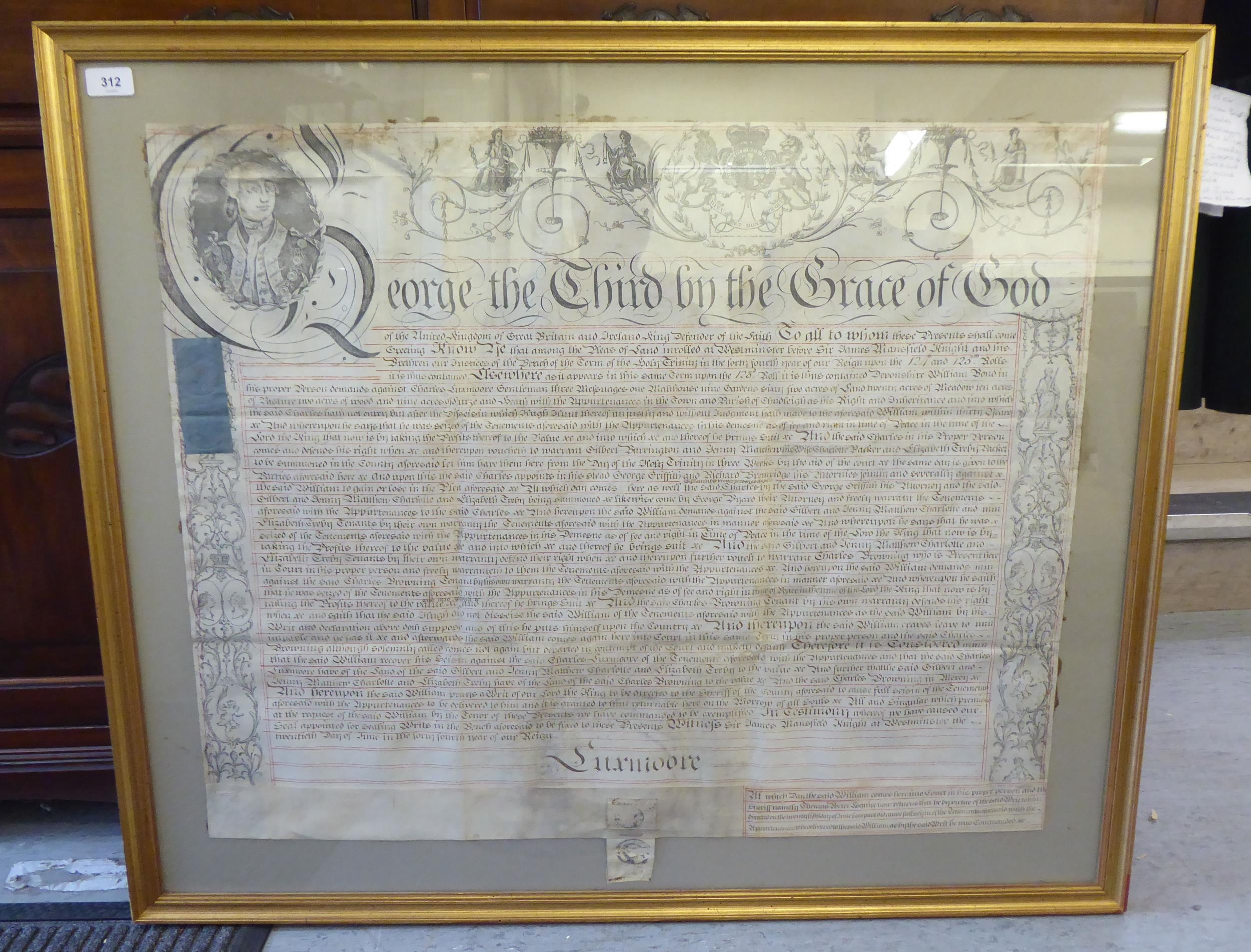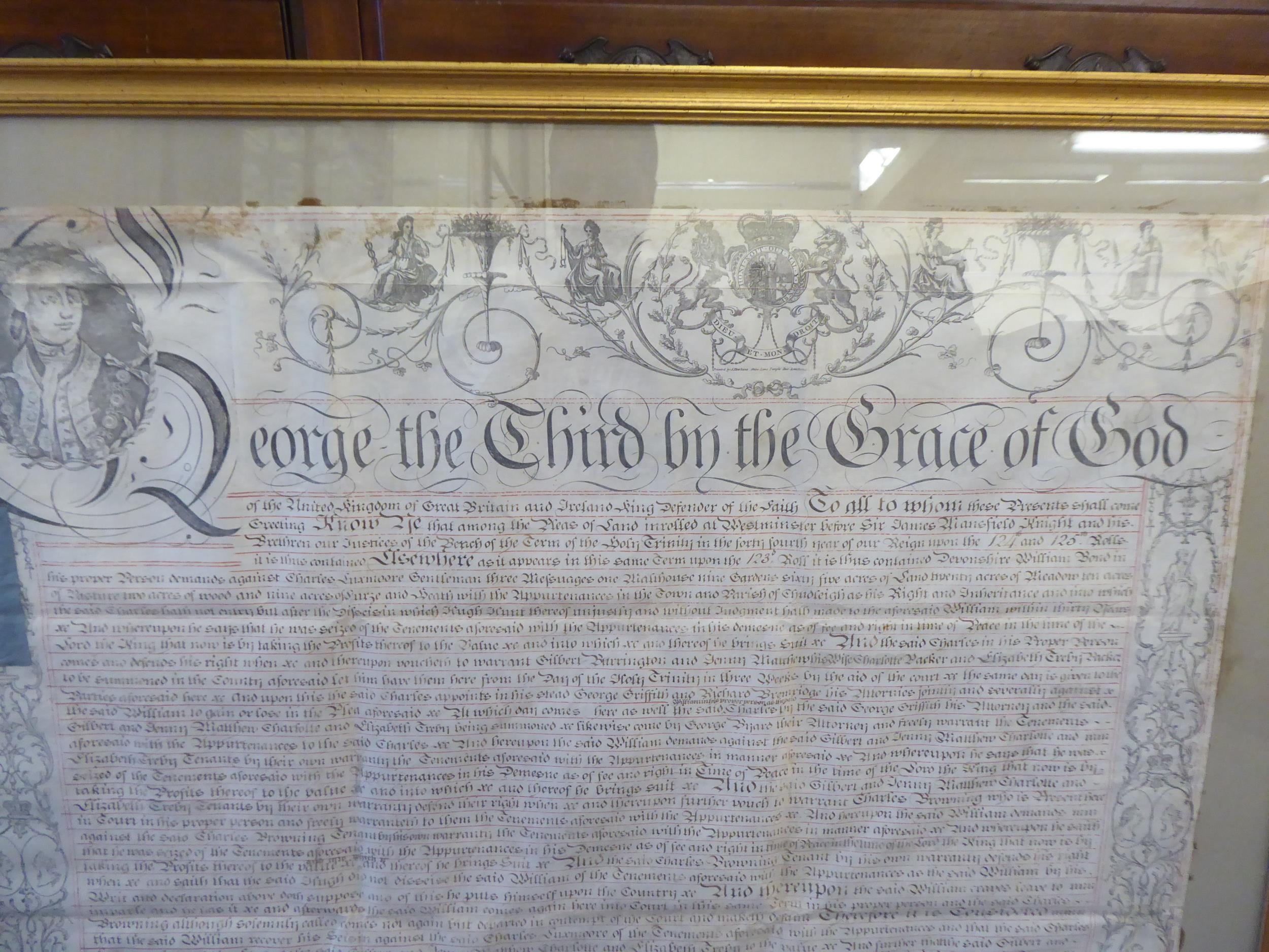 A George III period indenture between two parties regarding a property dispute in 1804 23" x 32" framed