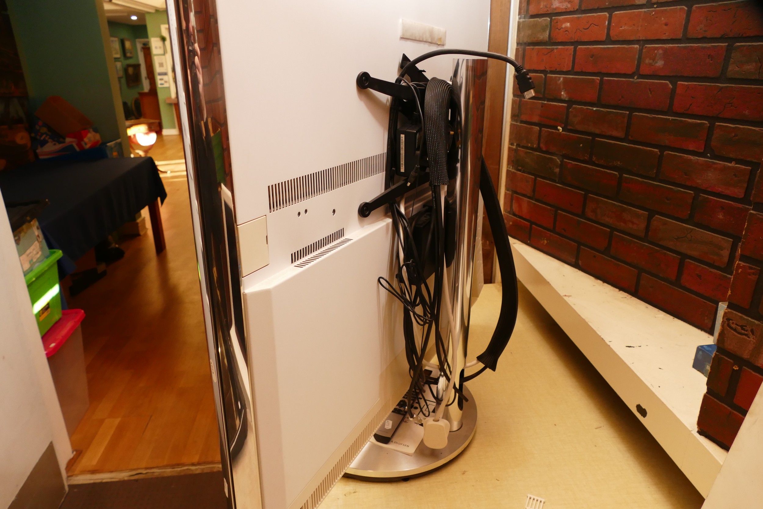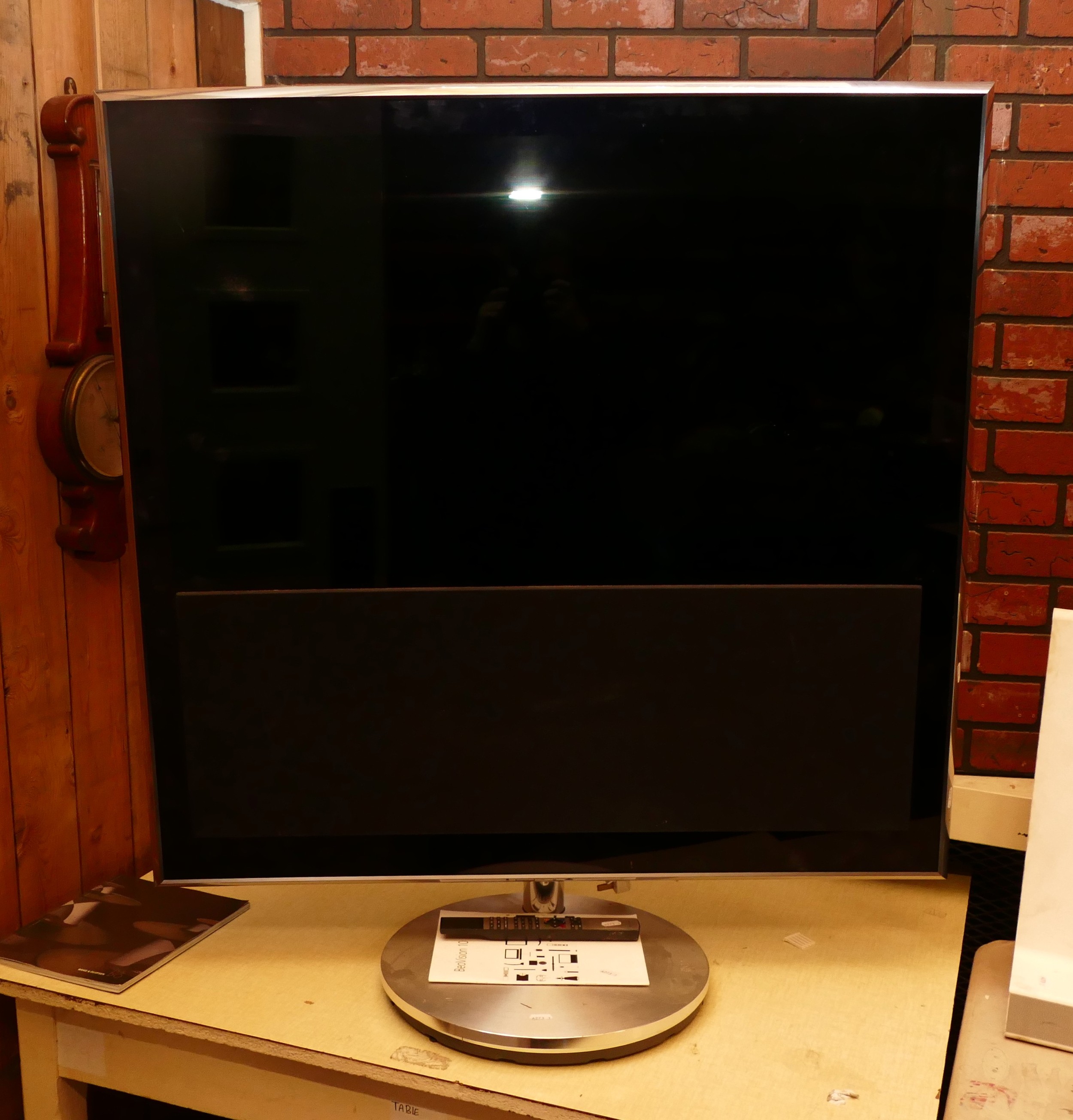 Bang & Olufsen; 'Beovision 10' TV 40 inch screen, with stand, booklet, AC leads and remote.