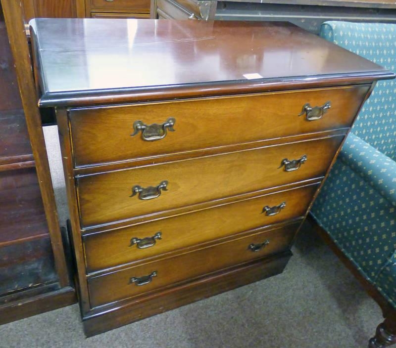 MAHOGANY CHEST OF DRAWERS WITH 4 DRAWERS ON PLINTH BASE, 86CM WIDE