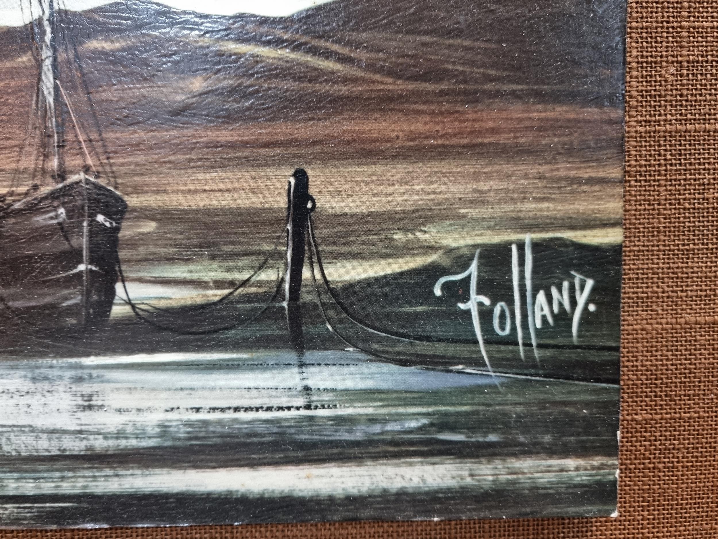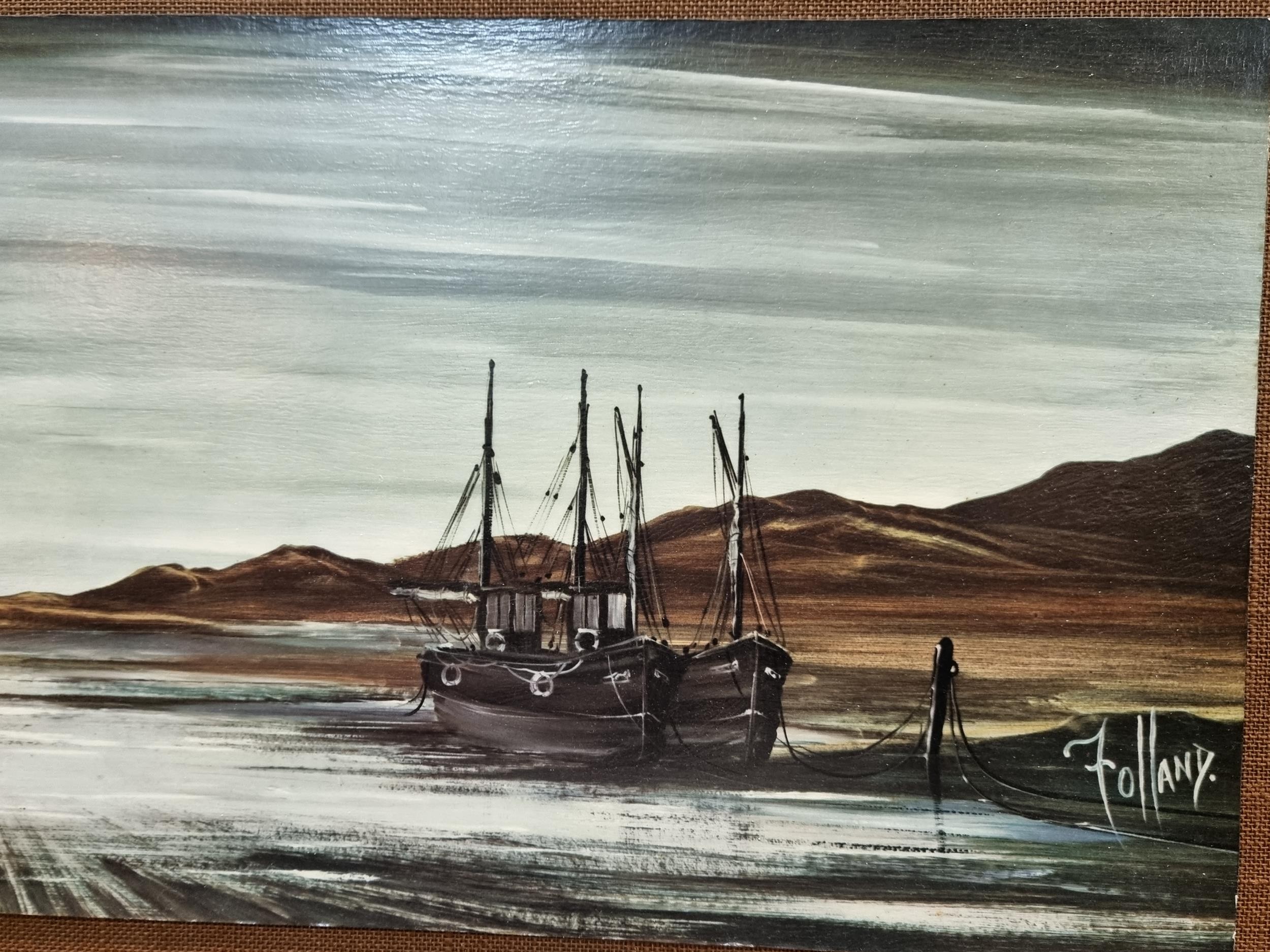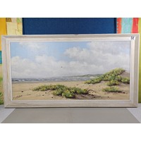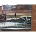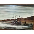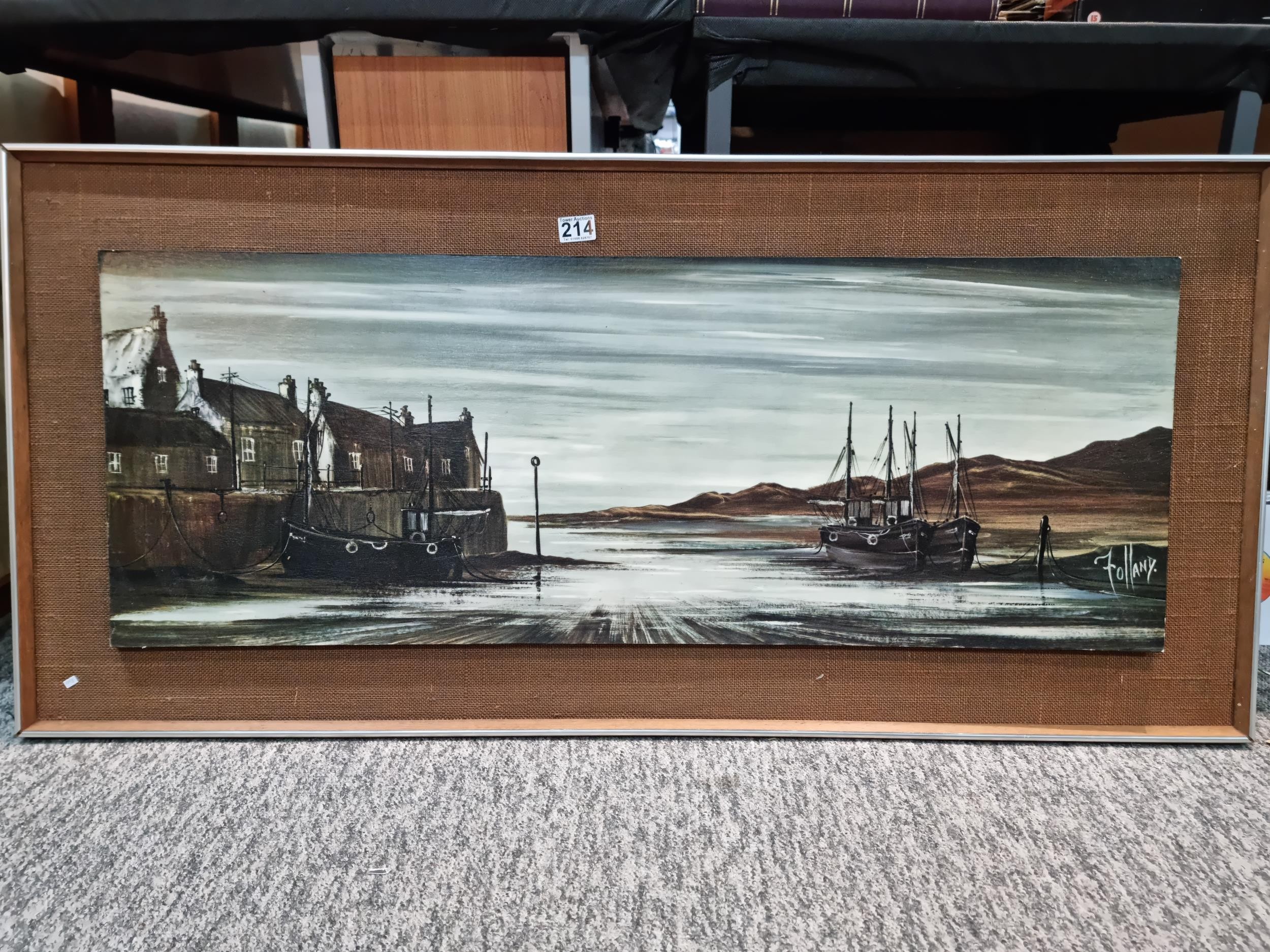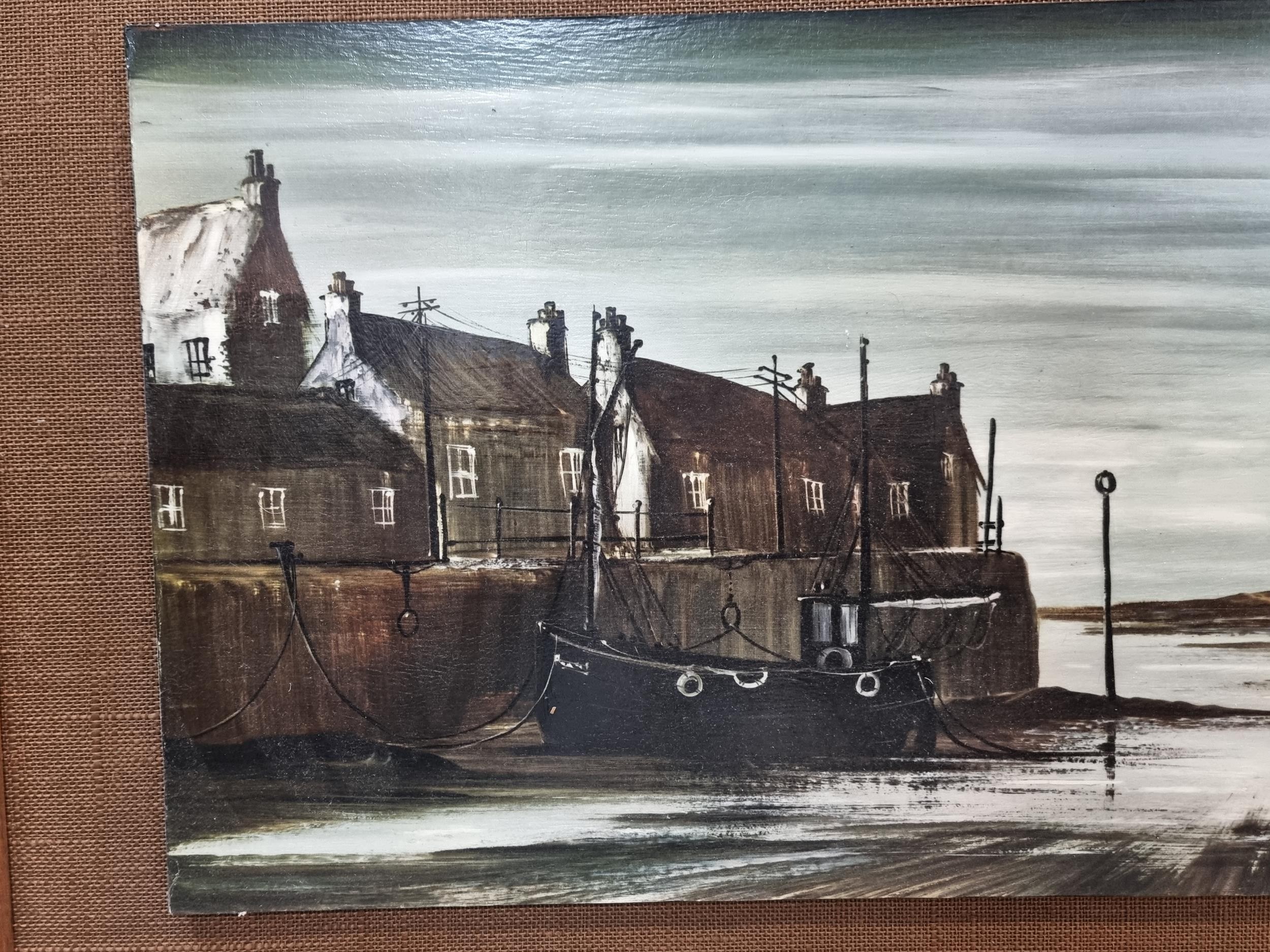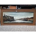 A large framed picture of a harbour scene in good condition. Has a length of 130cm with a width of 61cm.