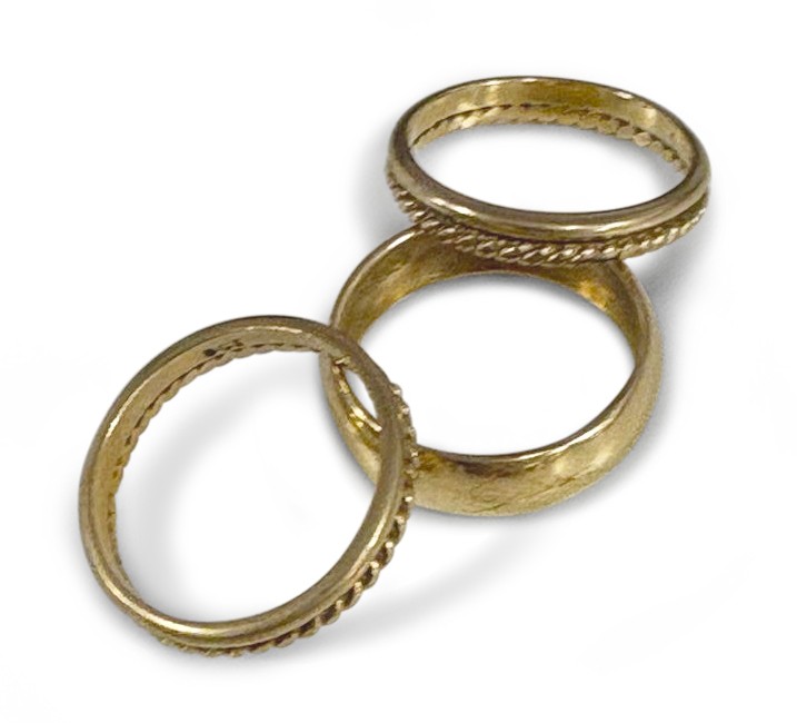 Bombe style, 5mm round to the centre accented by a pair of twisted rope rings, 9ct gold, size J, 3,5g all in
