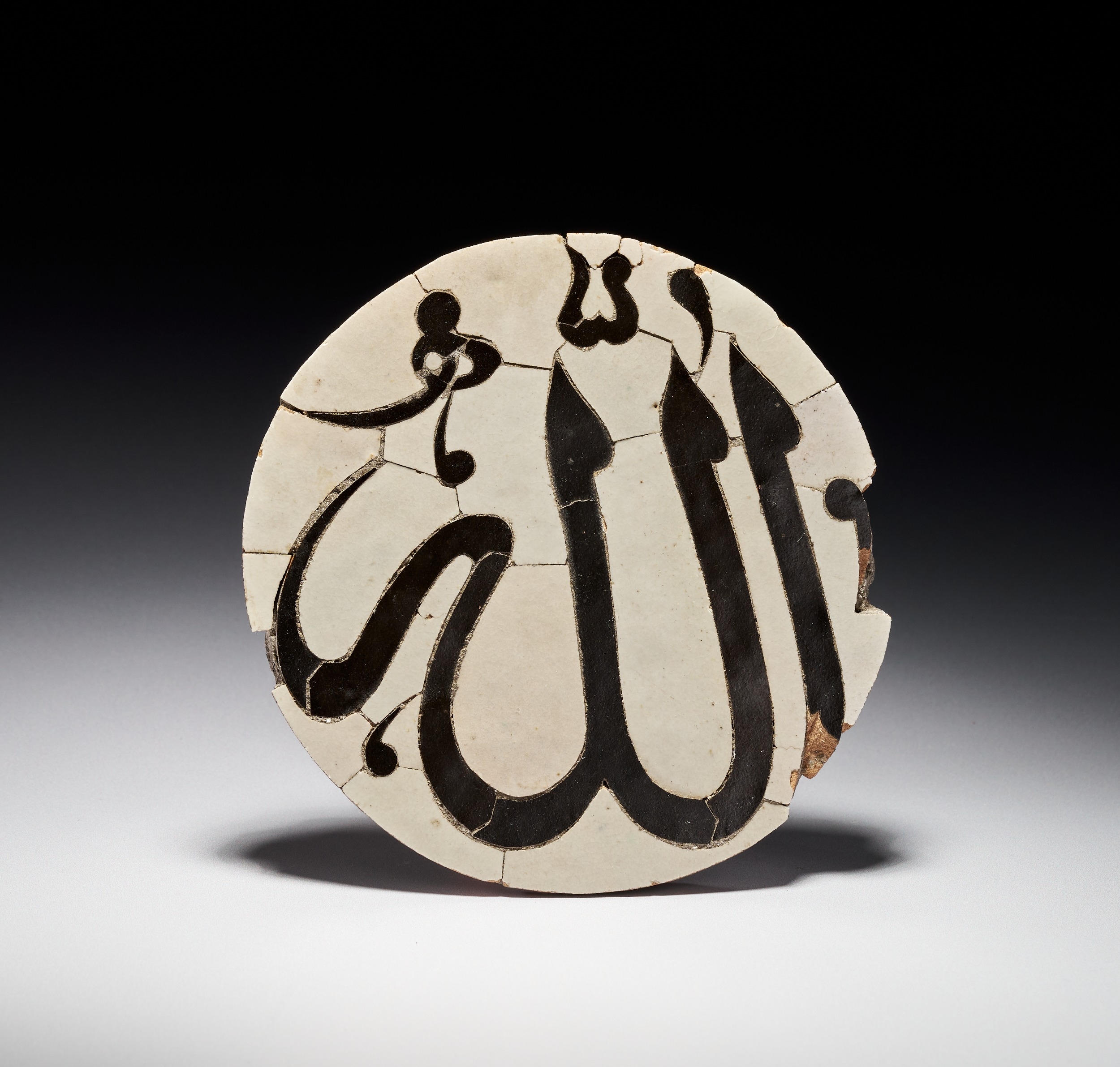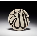 A ROUND ZAND ISLAMIC CALLIGRAPHIC GLAZED CERAMIC TILE, PERSIA, 18TH - 19TH CENTURY