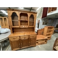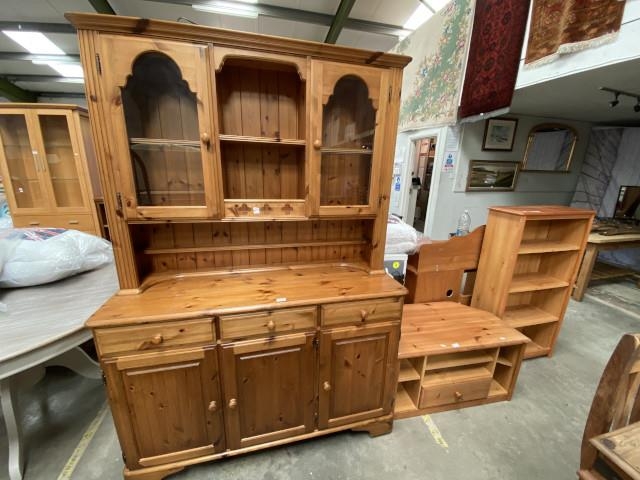 Pine Ducal dresser (194H 125W 44D cm), pine effect media stand (47H 88W 49D cm) & matching bookcase (119H 66W 27D cm)