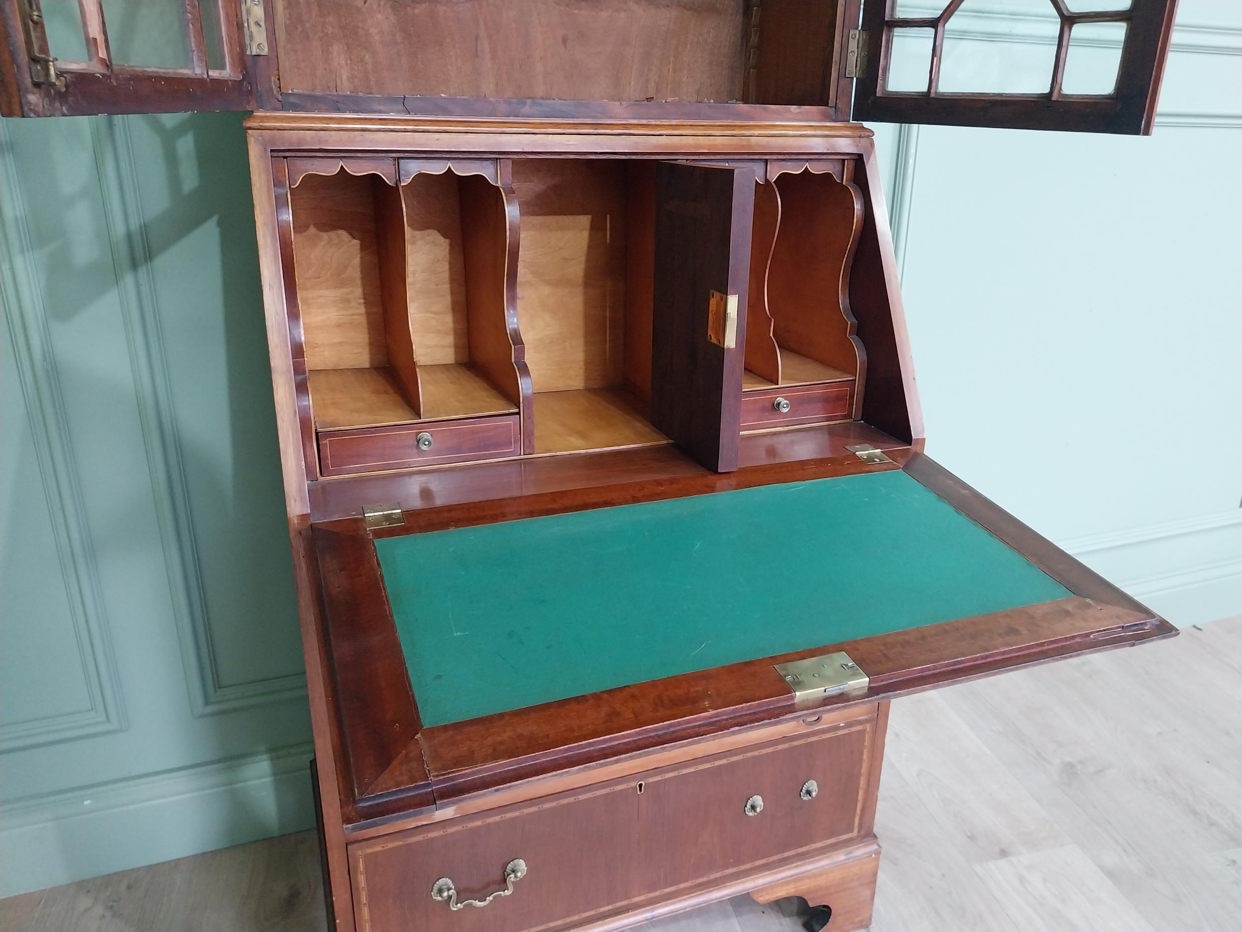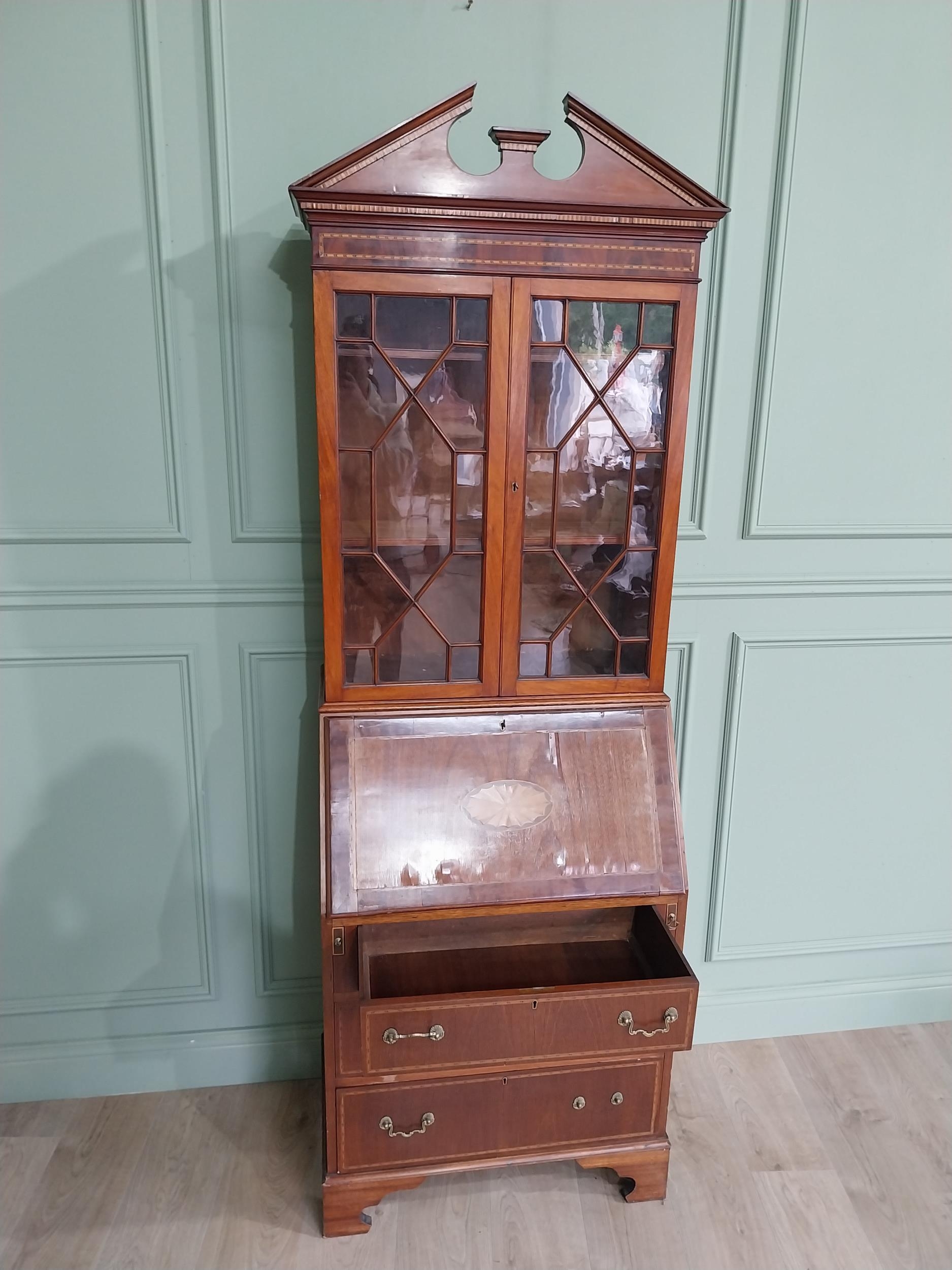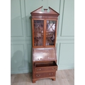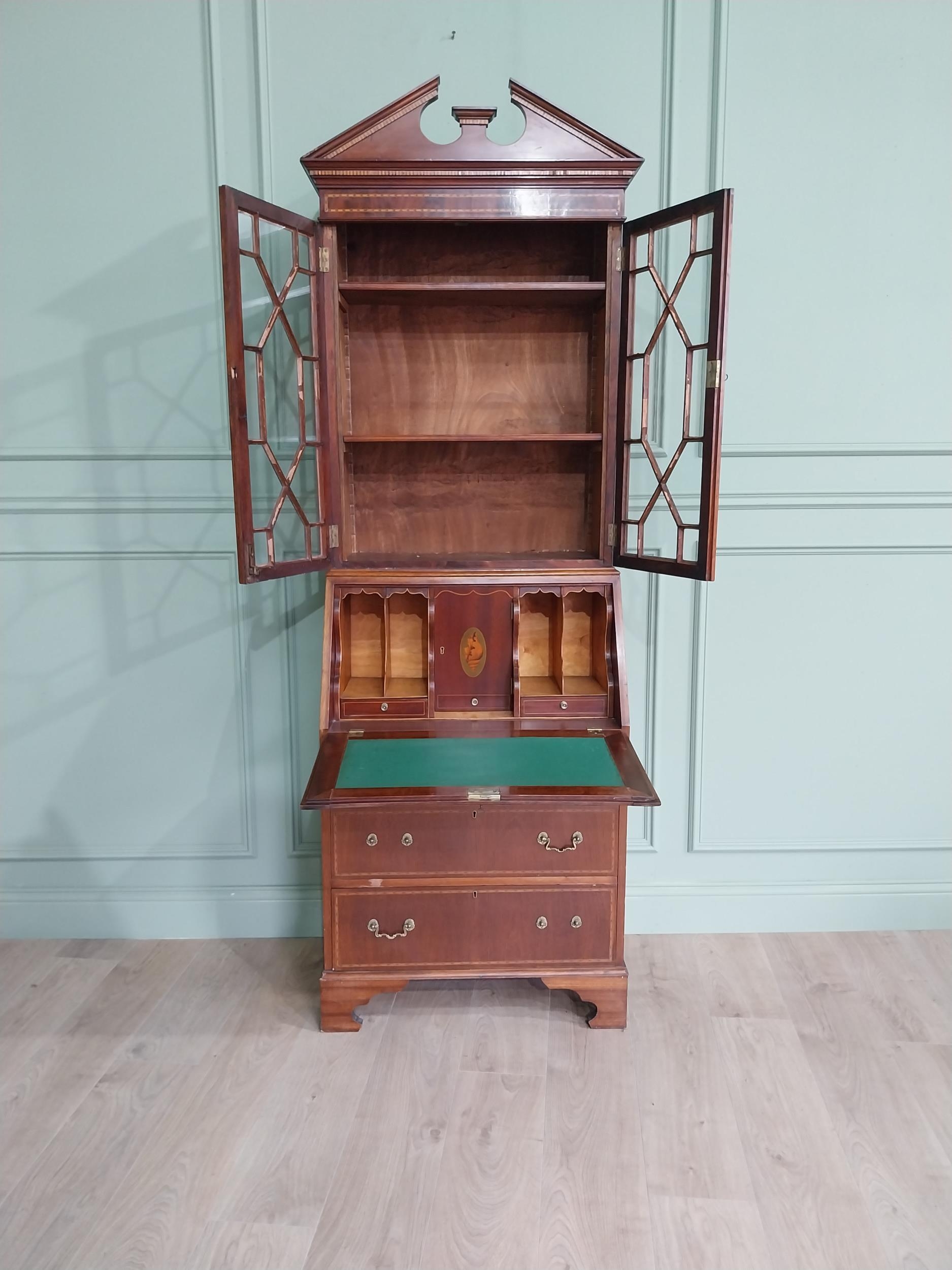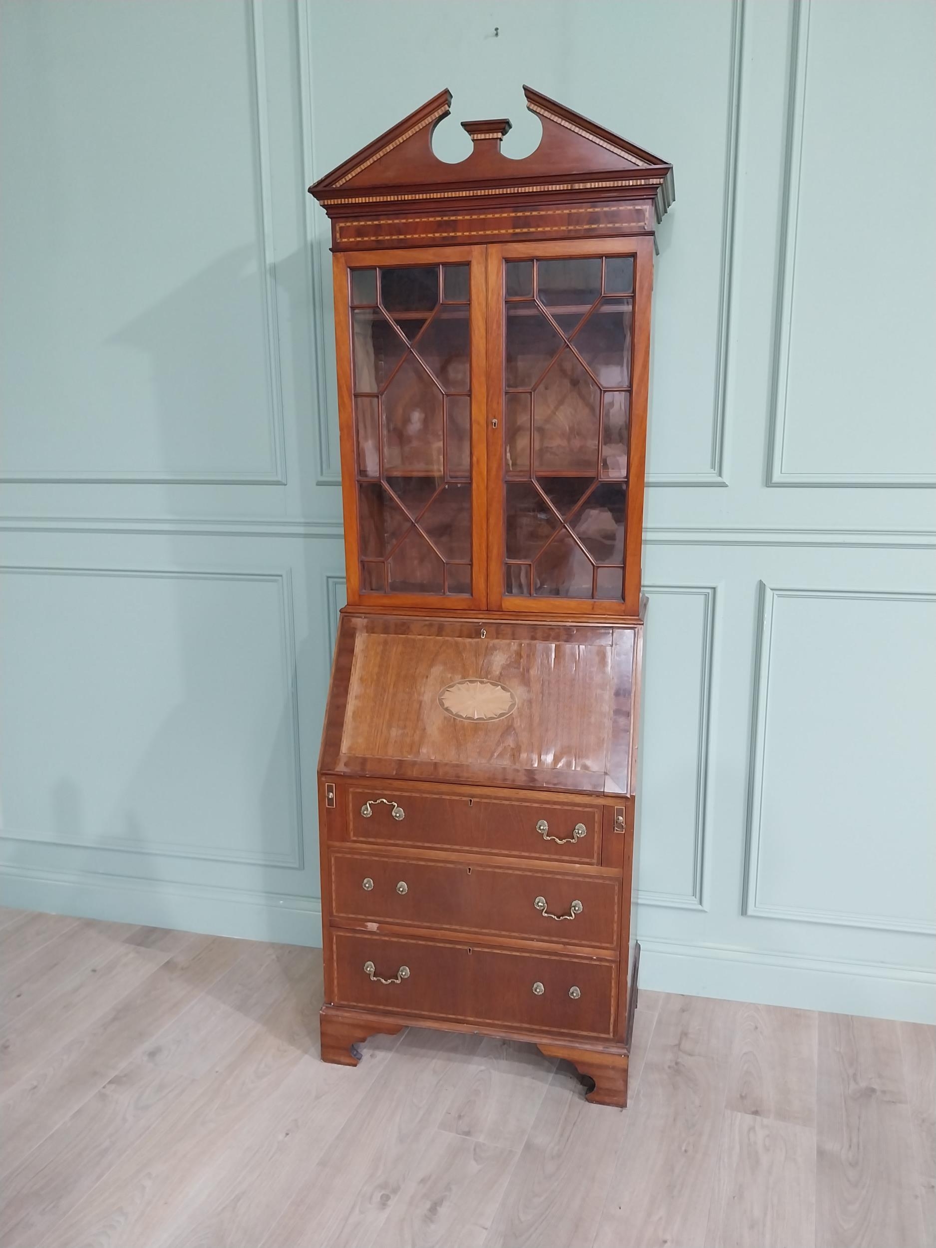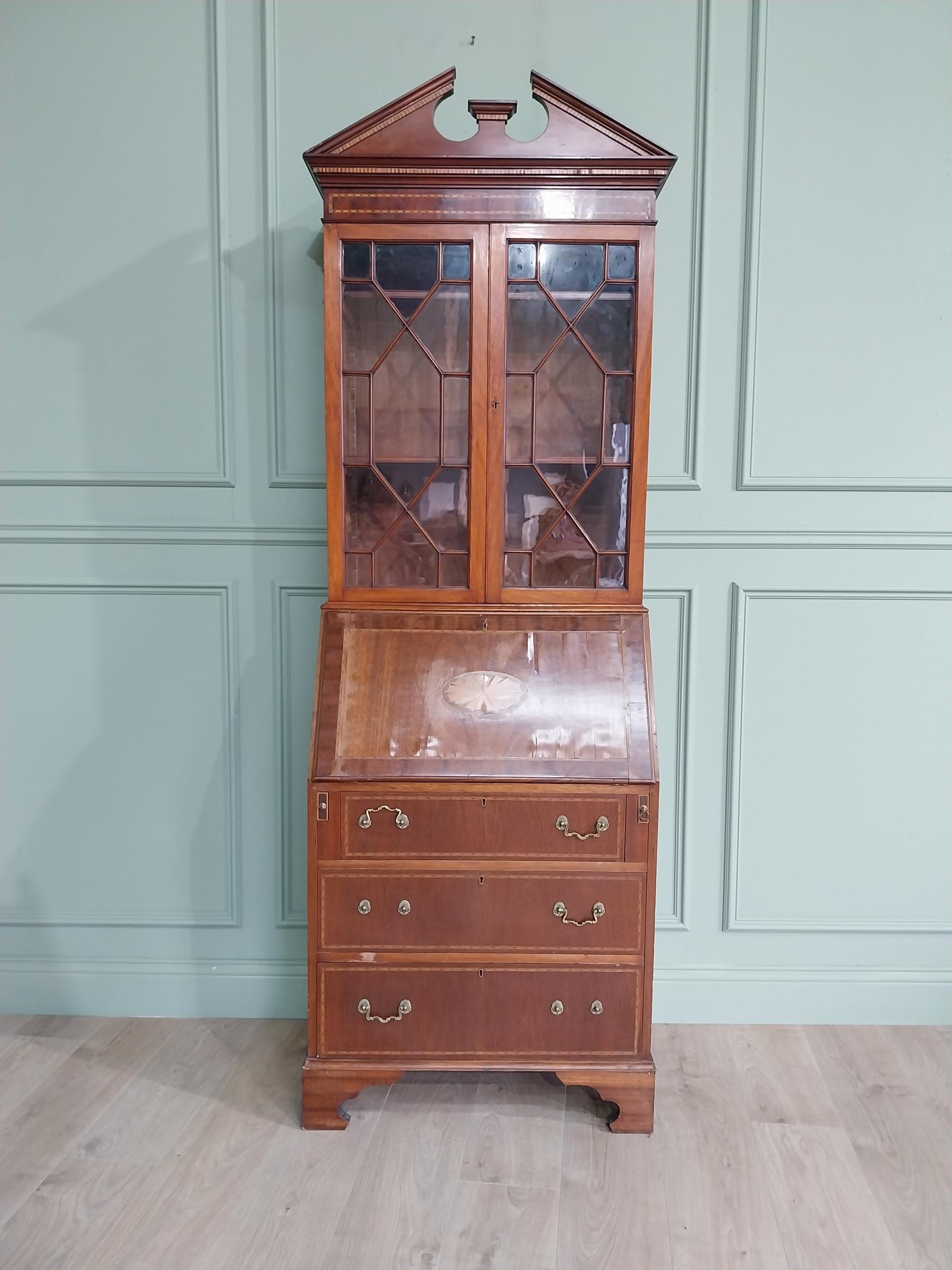 Edwardian mahogany bureau bookcase with two astral glazed doors, over fitted interior and three long graduated drawers raised on bracket feet {208 cm H x 68 cm W x 48 cm D}.
