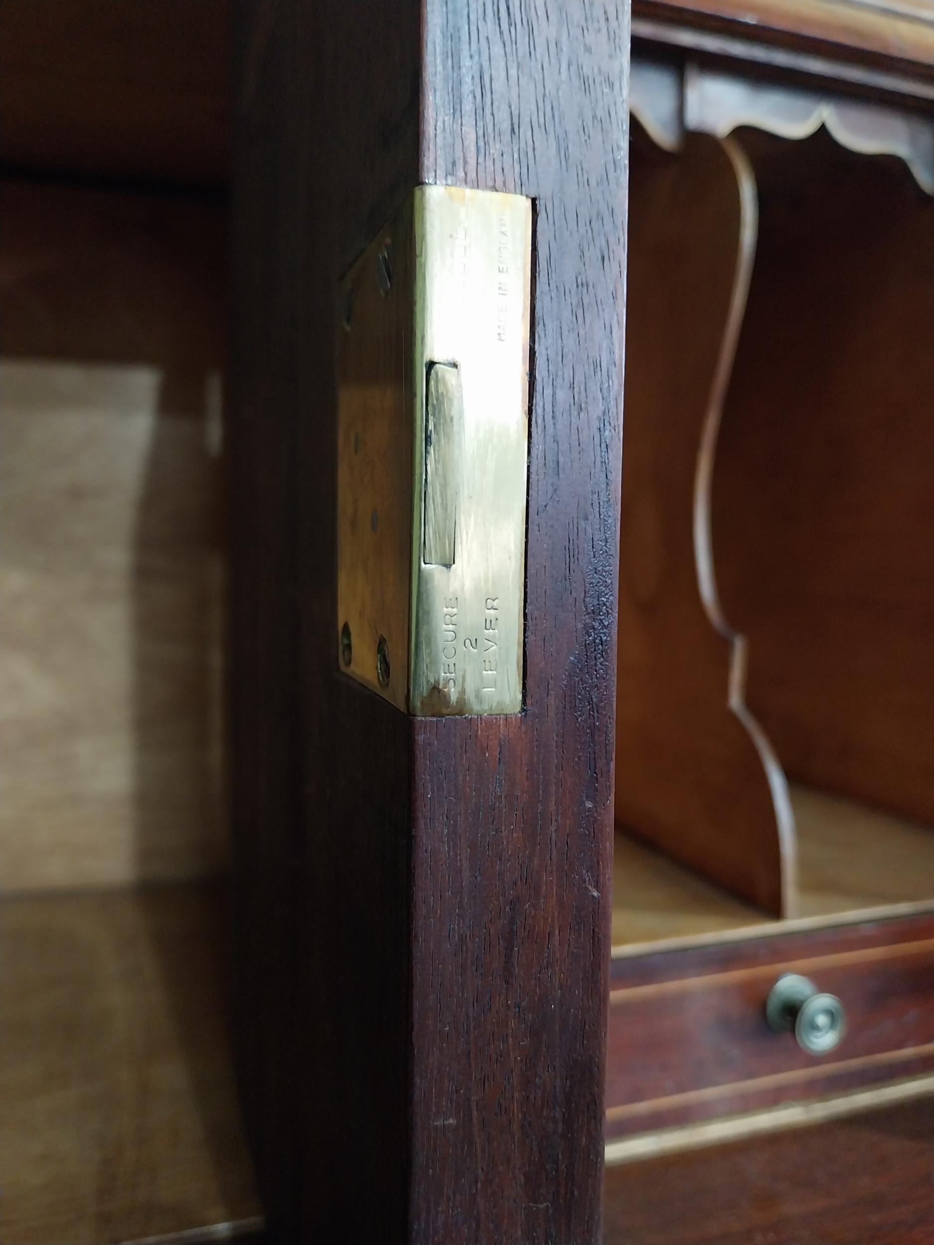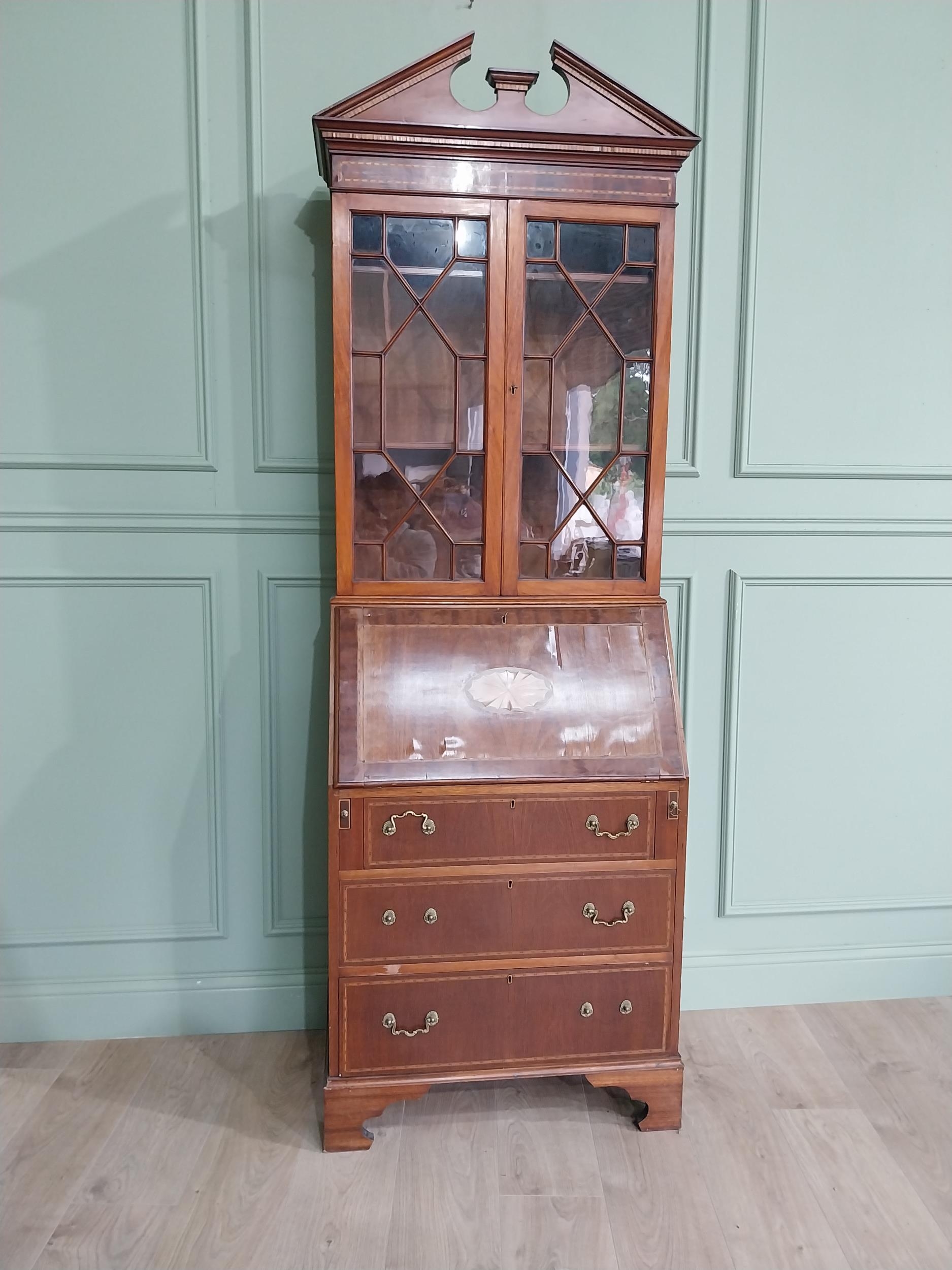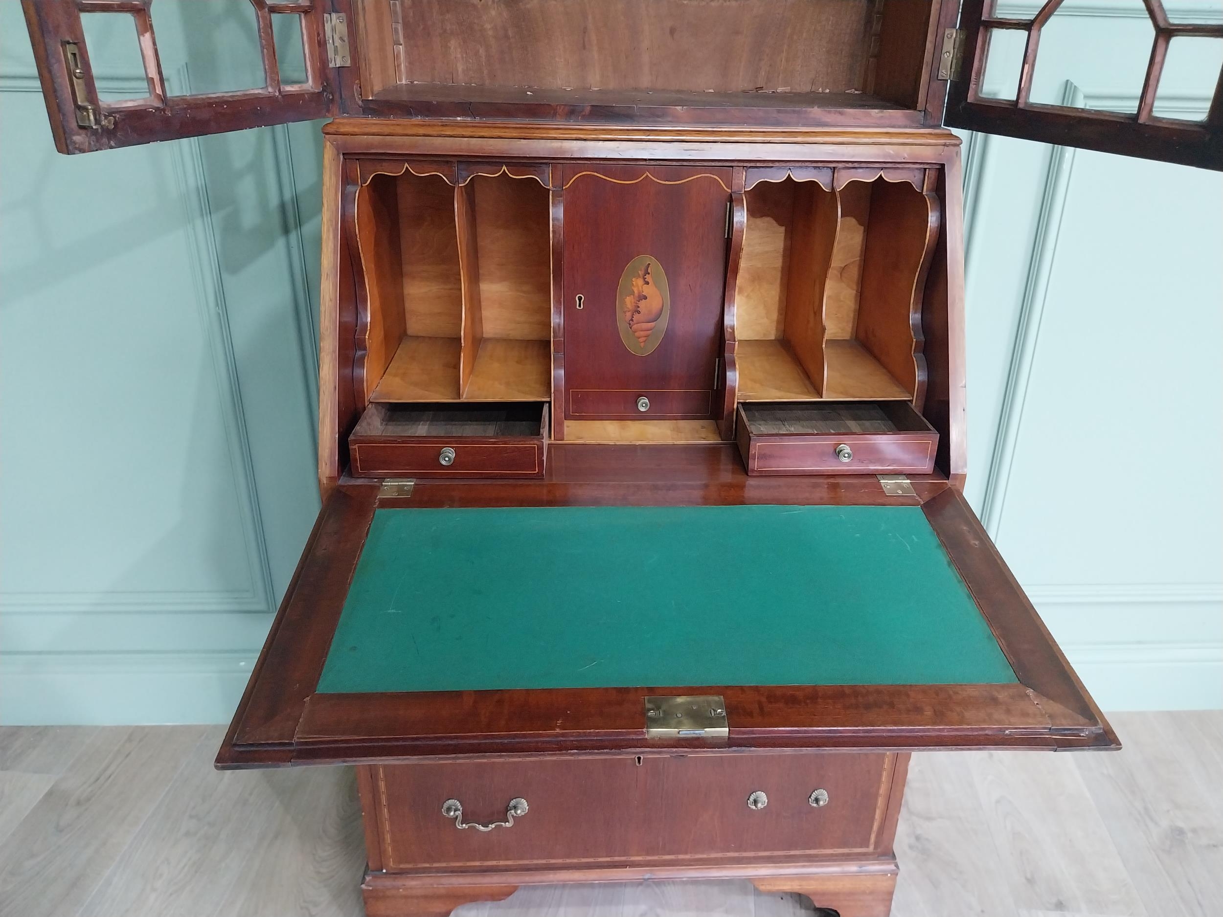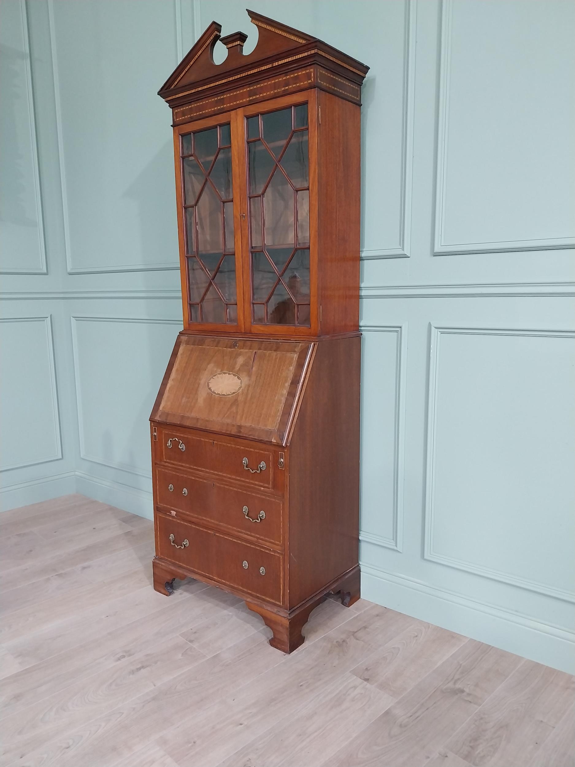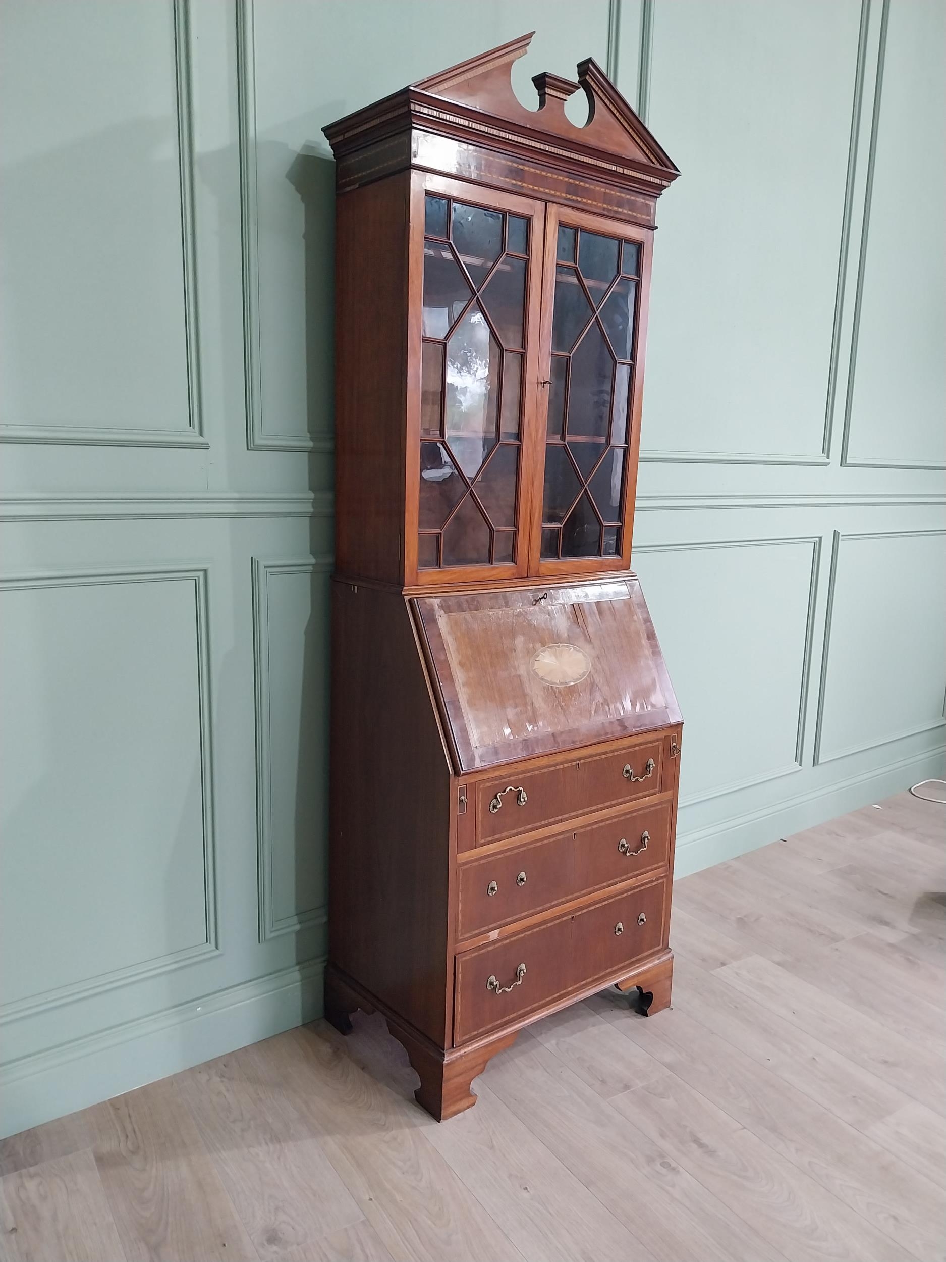 Edwardian mahogany bureau bookcase with two astral glazed doors, over fitted interior and three long graduated drawers raised on bracket feet {208 cm H x 68 cm W x 48 cm D}.