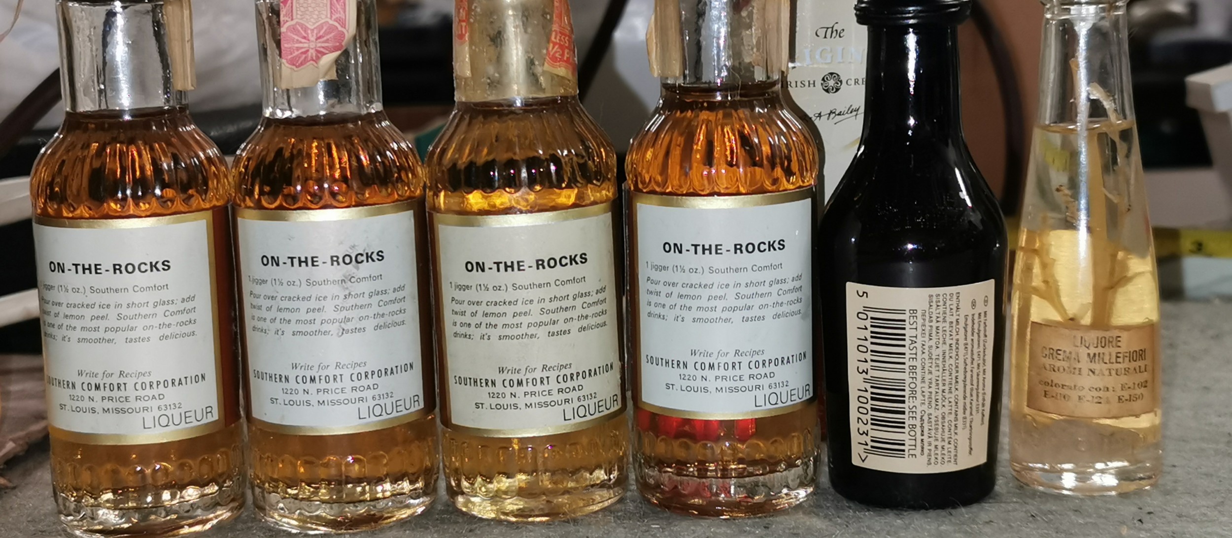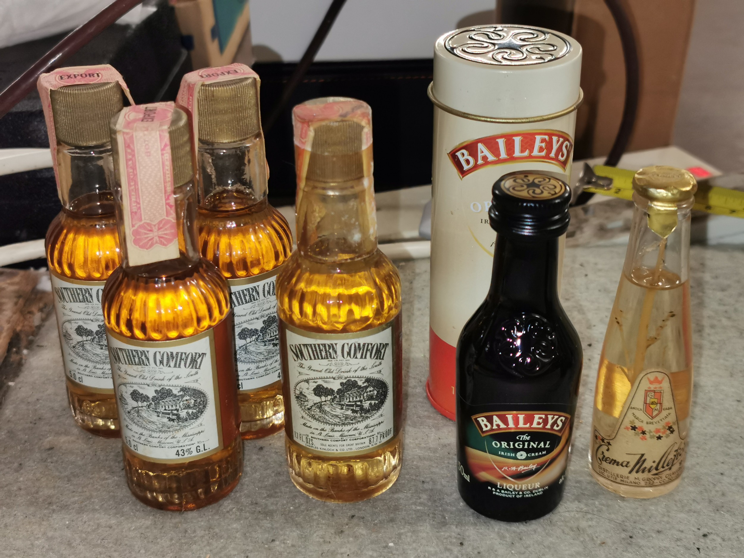 4 x unopened Southern Comfort, 1 x crema Millefiori & 1 x Baileys cabinet miniatures
