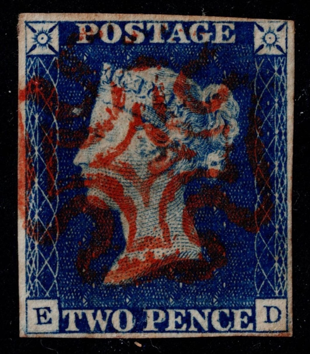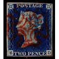 GB 1840 2d blue plate 1 ED Re-ENTRY showing marks in PENCE vfu with 4m fine red cross sg5 Spec.DS5b Cat. £1250